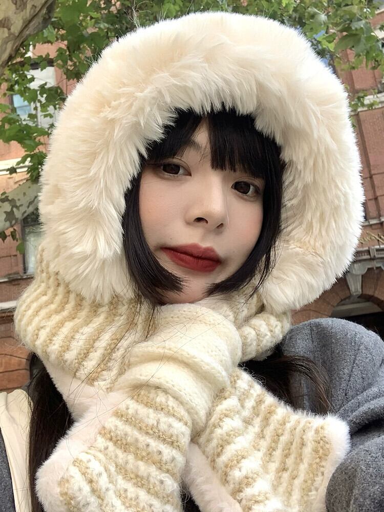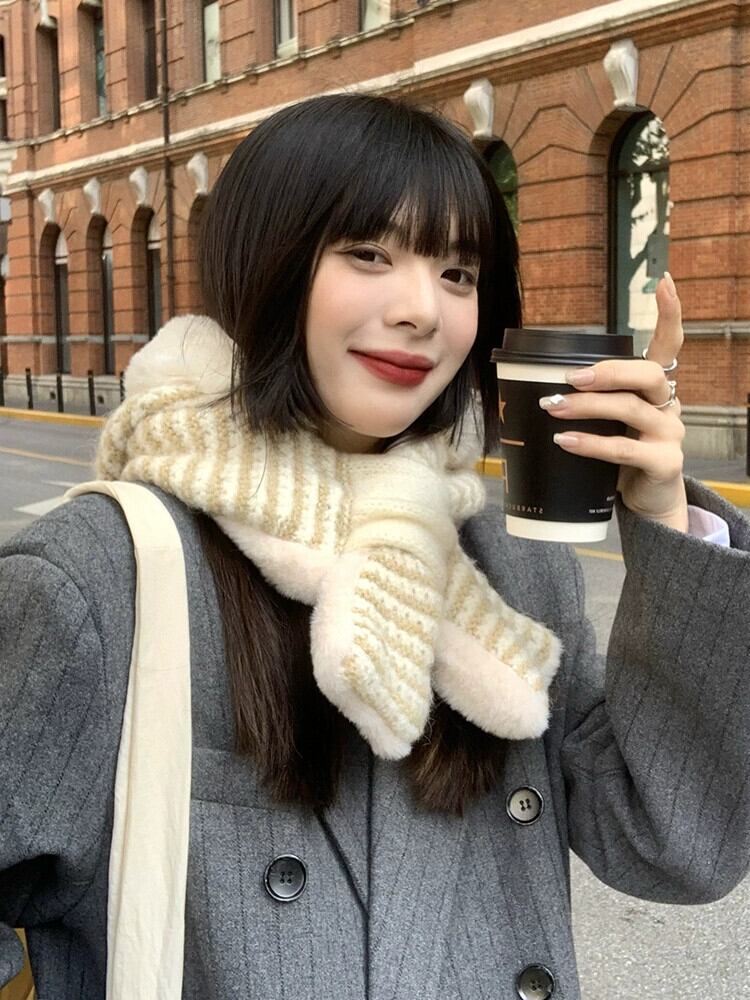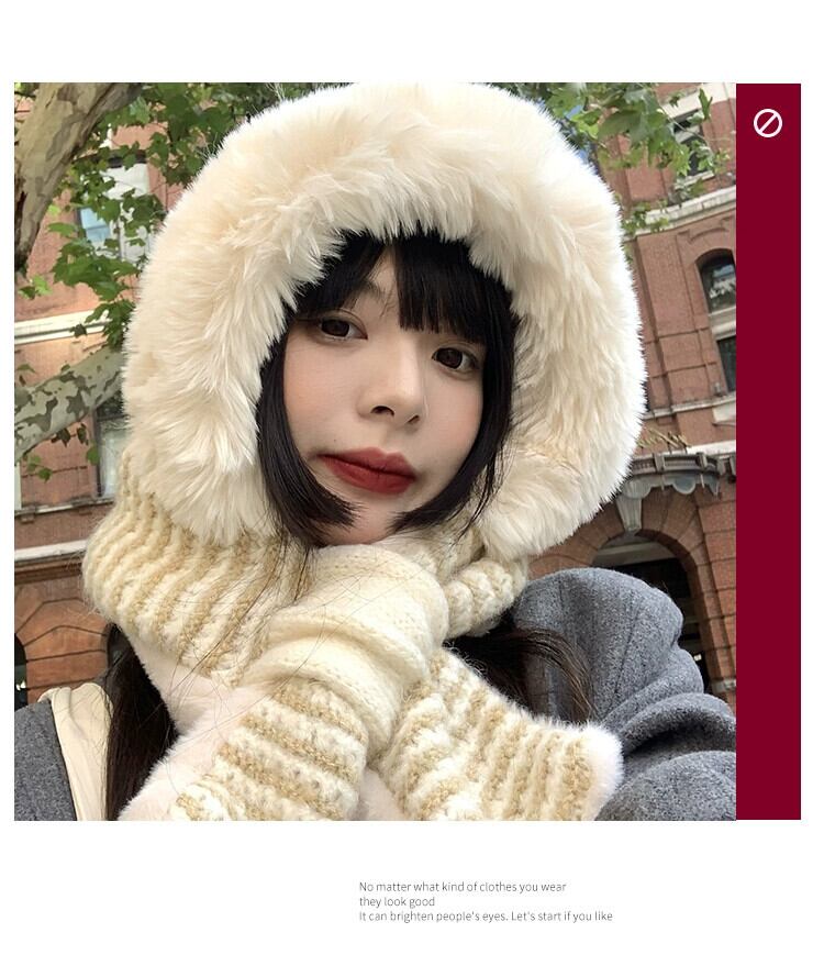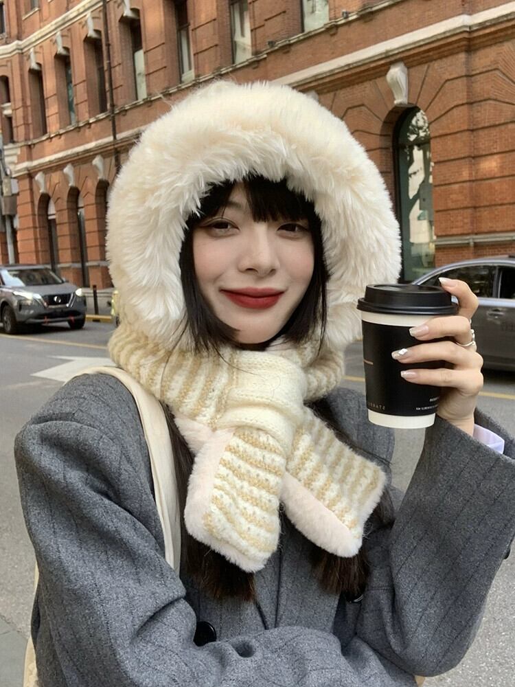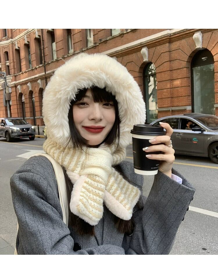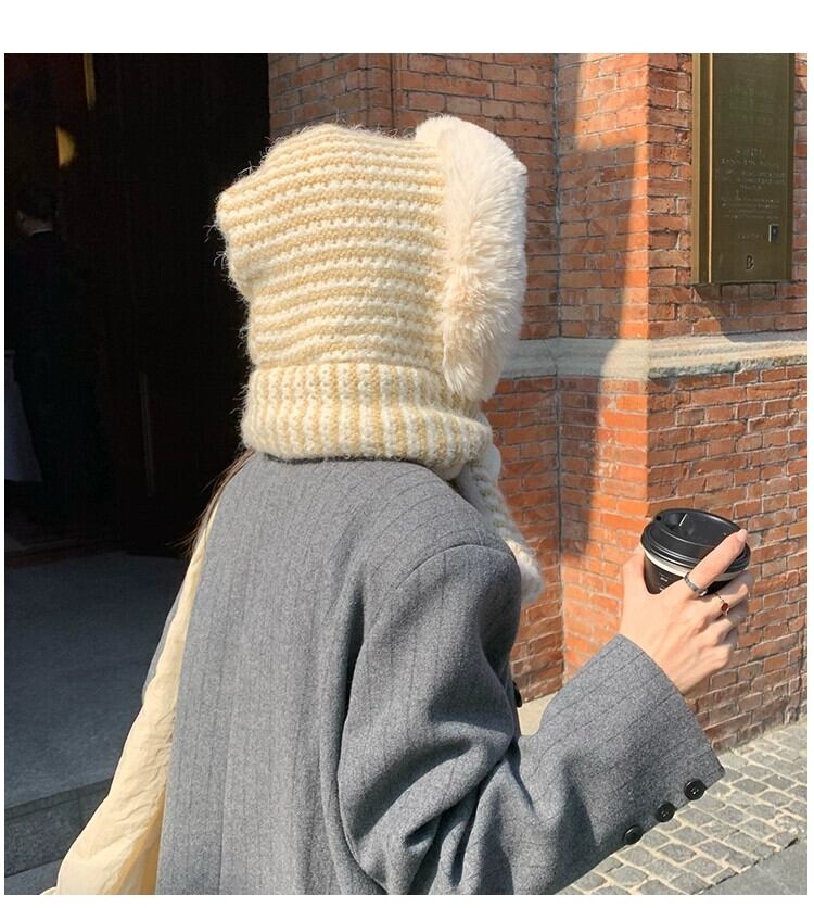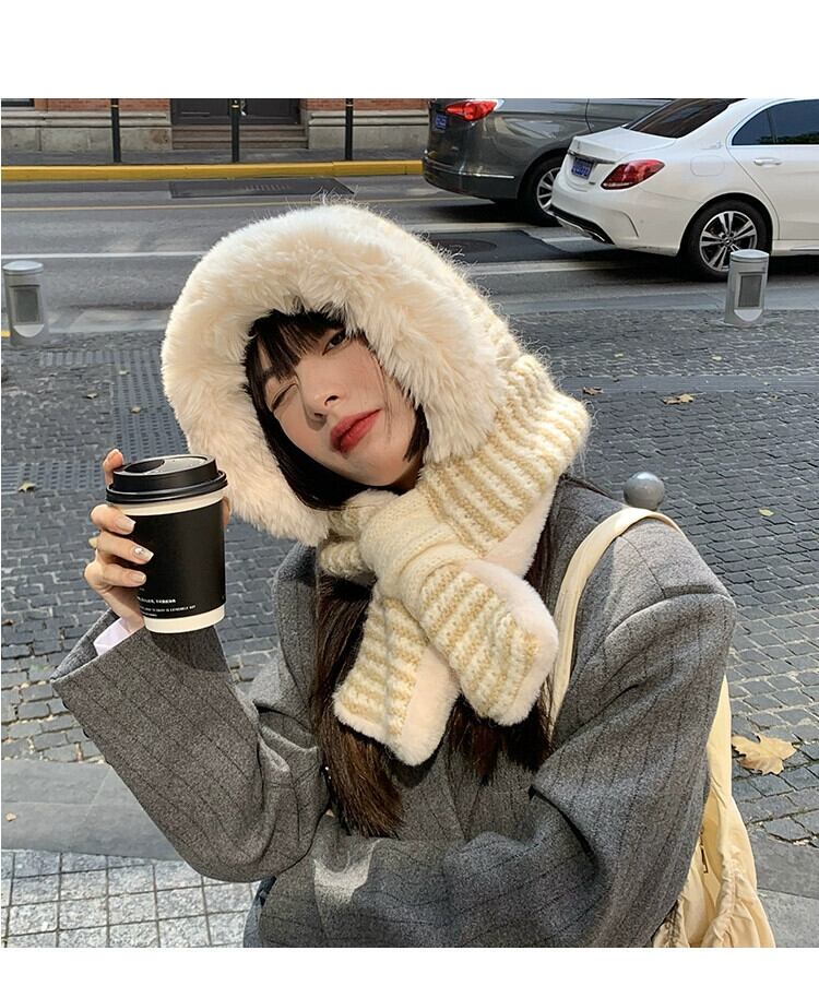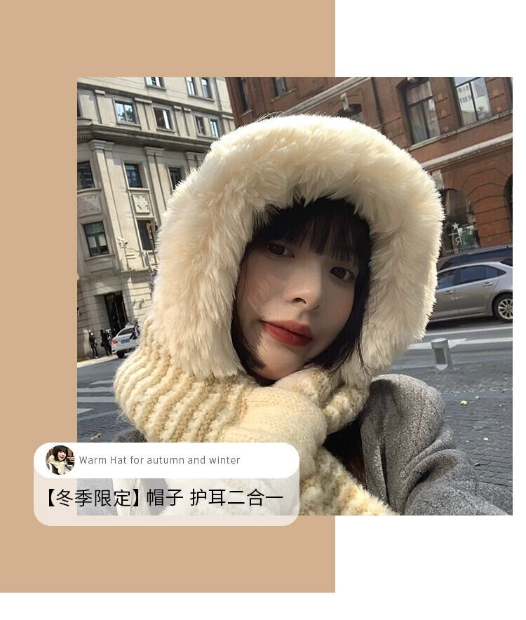 秋と冬のぬいぐるみ耳保護雷峰帽子スカーフ 1 女性冬ラムウールサイクリング防風肥厚暖かいスカーフ オータム 秋物 ウィンター 冬物 15dd79299300367