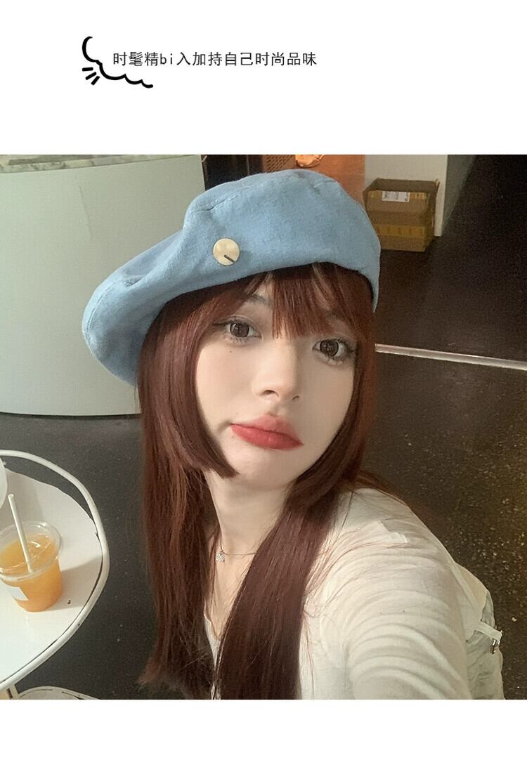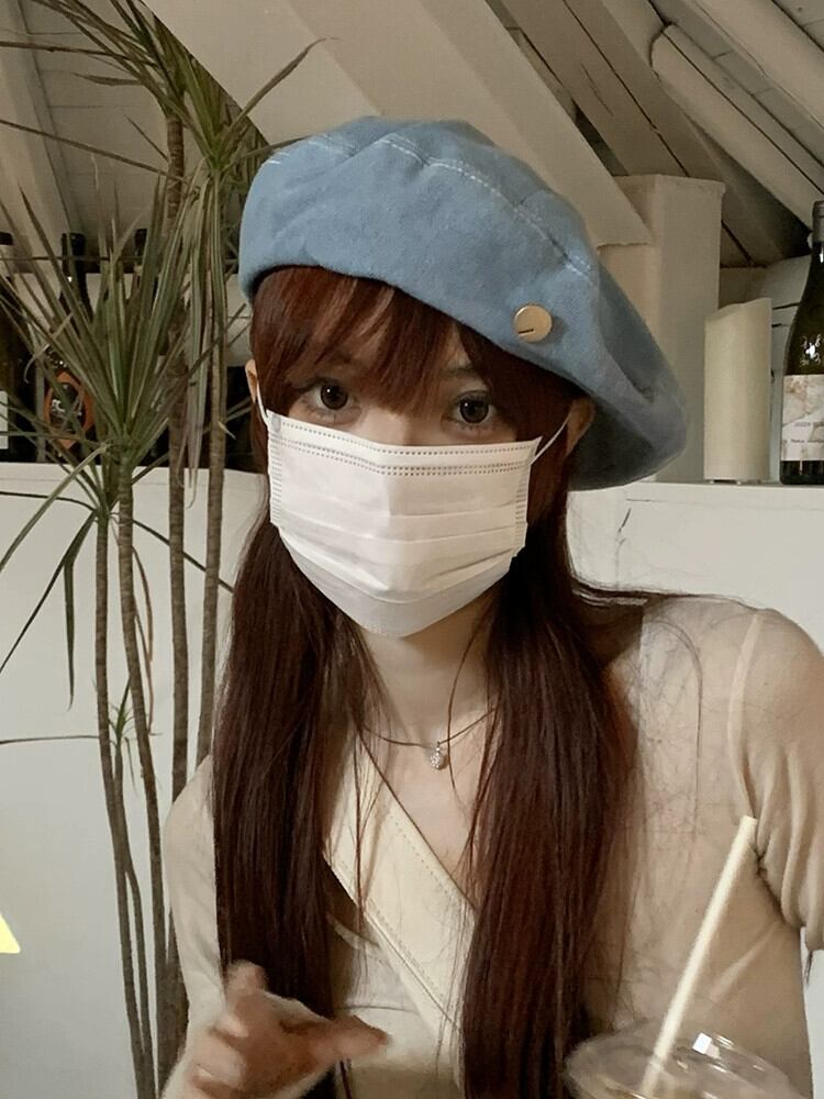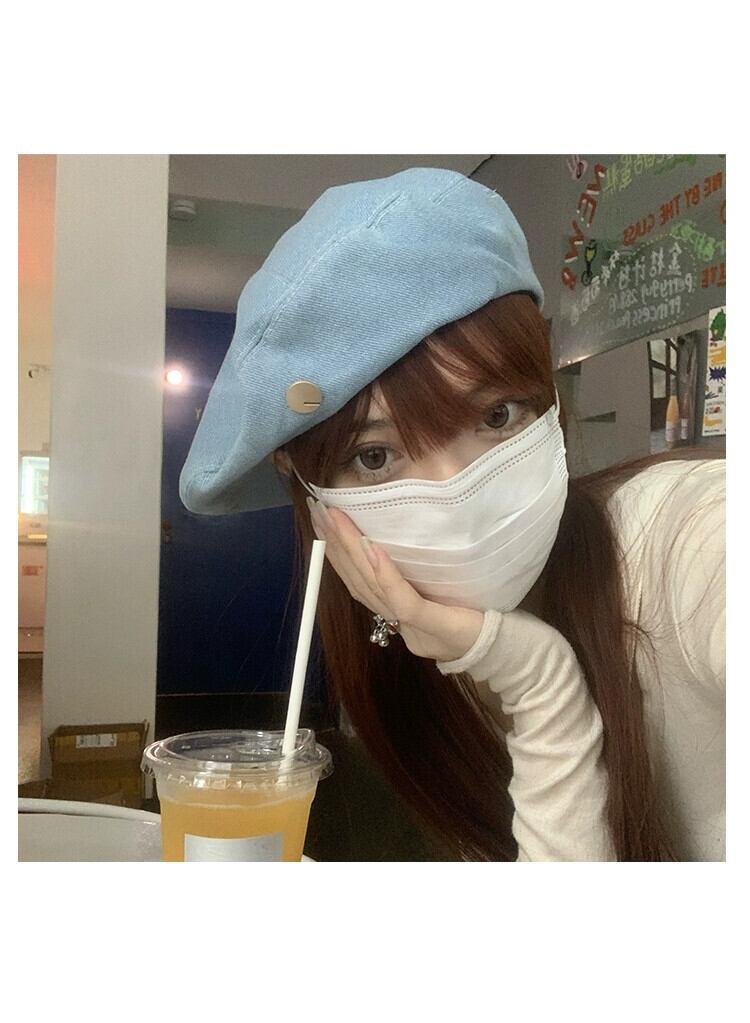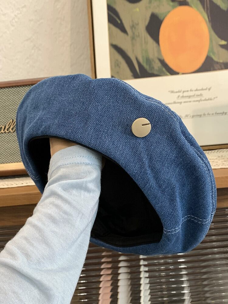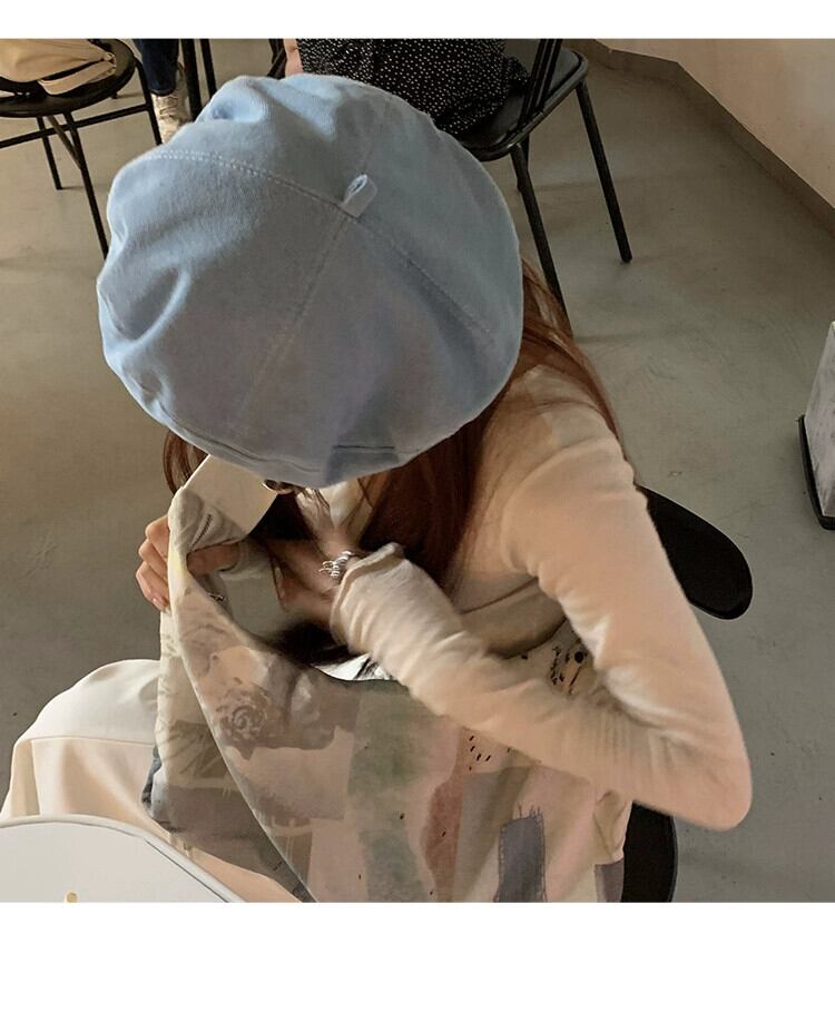 インターネット有名人の新しいデニムベレー帽の女性の春と秋のバージョンの顔の周りの大きな頭の小さなアーティスト帽子のオールマッチベレー帽 スプリング 春物 オータム 秋物 ベレット ヘアアクセサリー 15dd28534746830