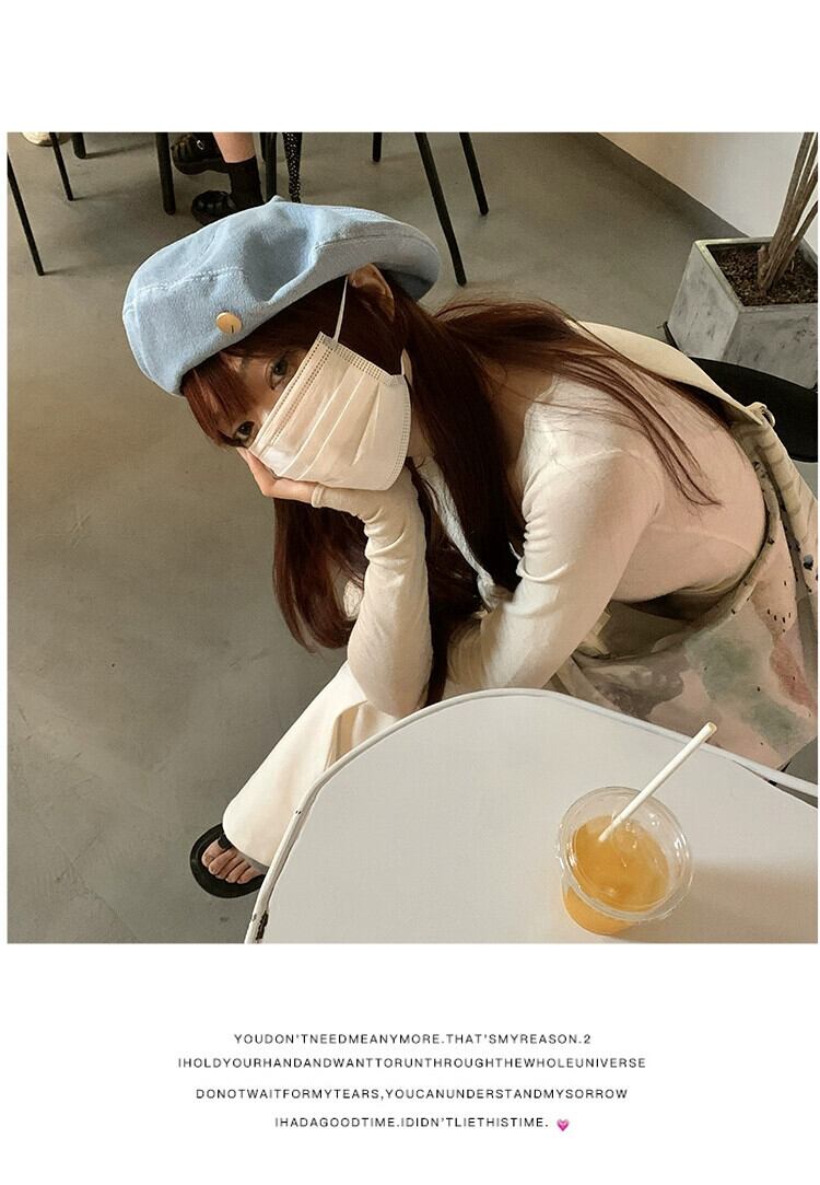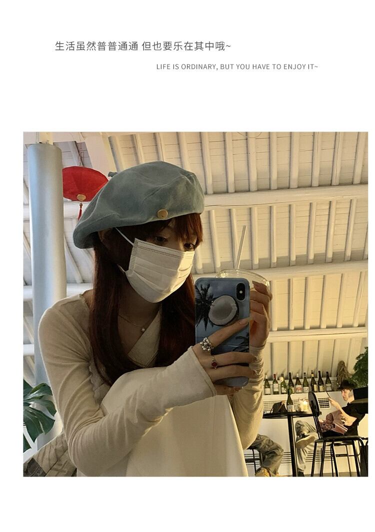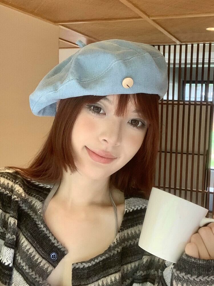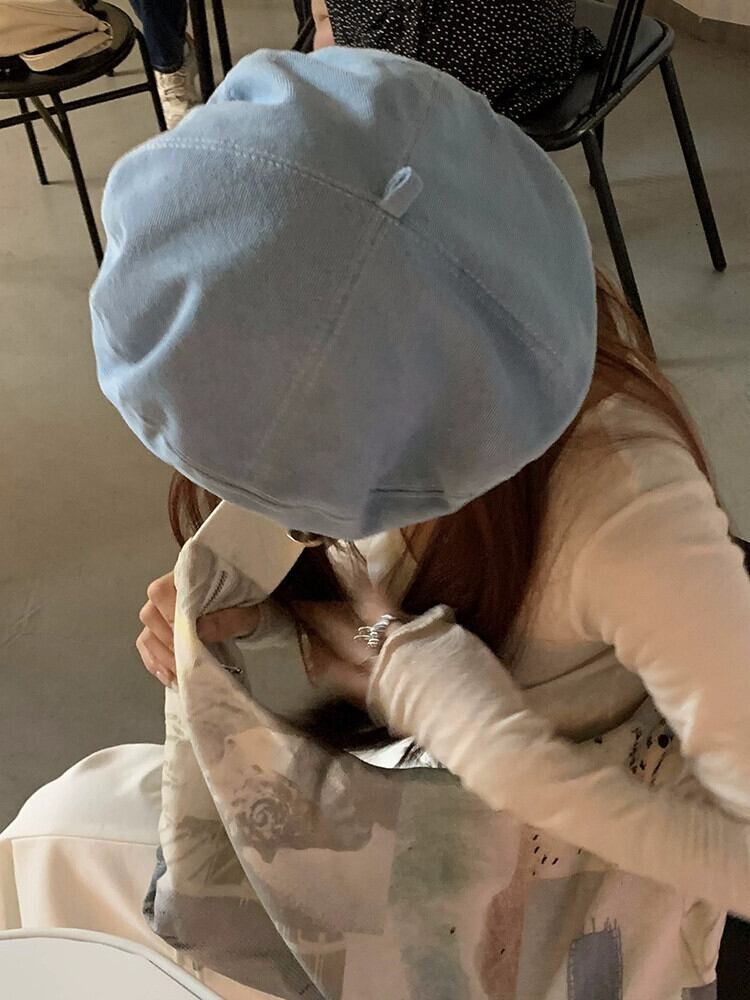 インターネット有名人の新しいデニムベレー帽の女性の春と秋のバージョンの顔の周りの大きな頭の小さなアーティスト帽子のオールマッチベレー帽 スプリング 春物 オータム 秋物 ベレット ヘアアクセサリー 15dd28534746830