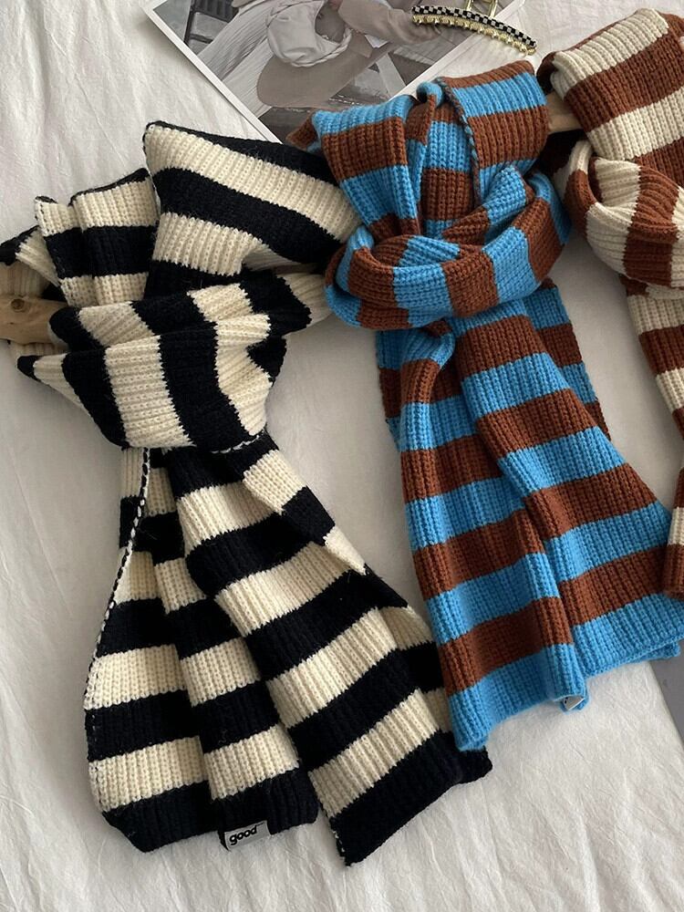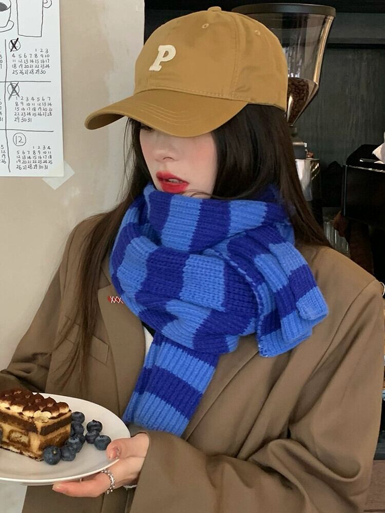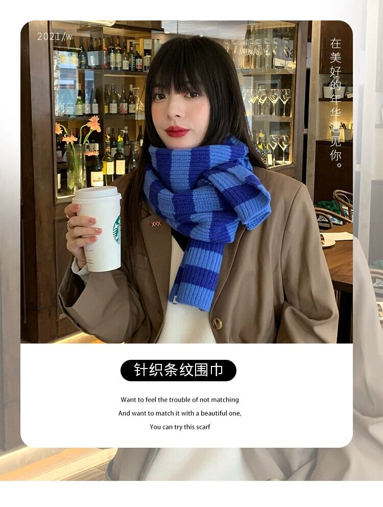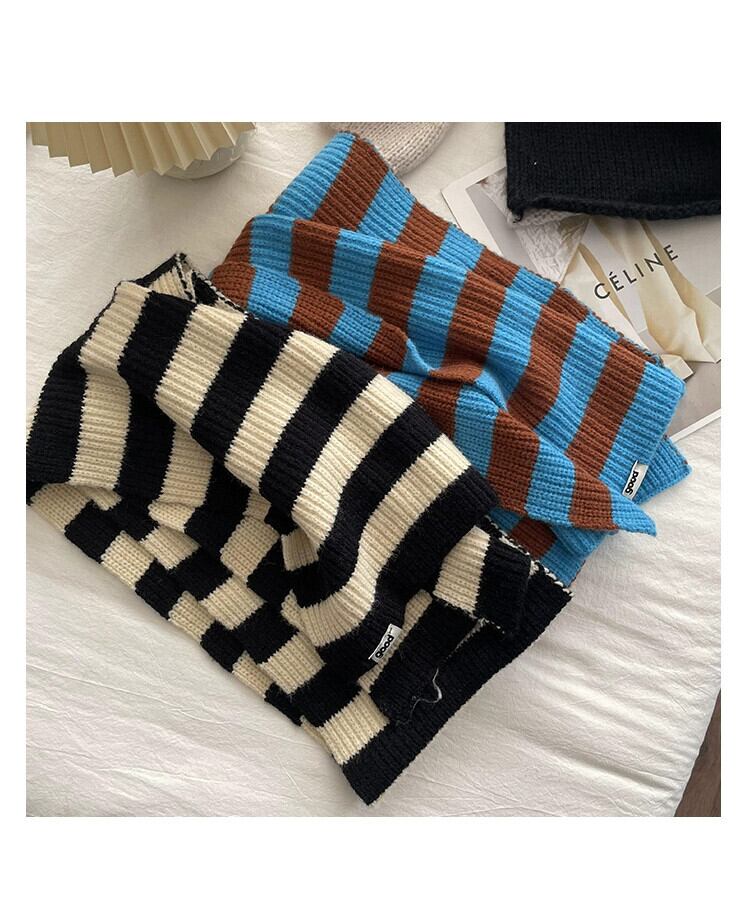 インブルースカーフ女性の冬 2022 新しいニットストライプショールカップル学生オールマッチ暖かいスカーフ潮 ウィンター 冬物 15dd87410120923
