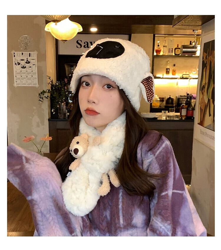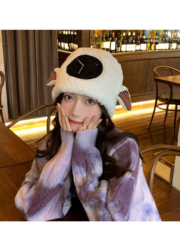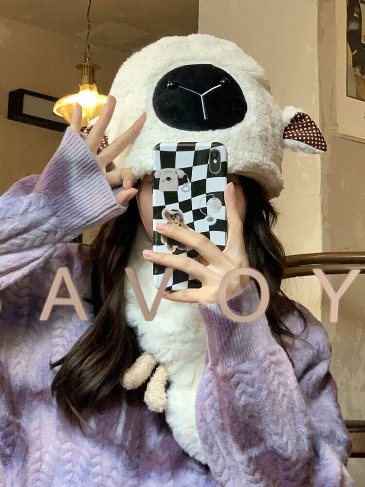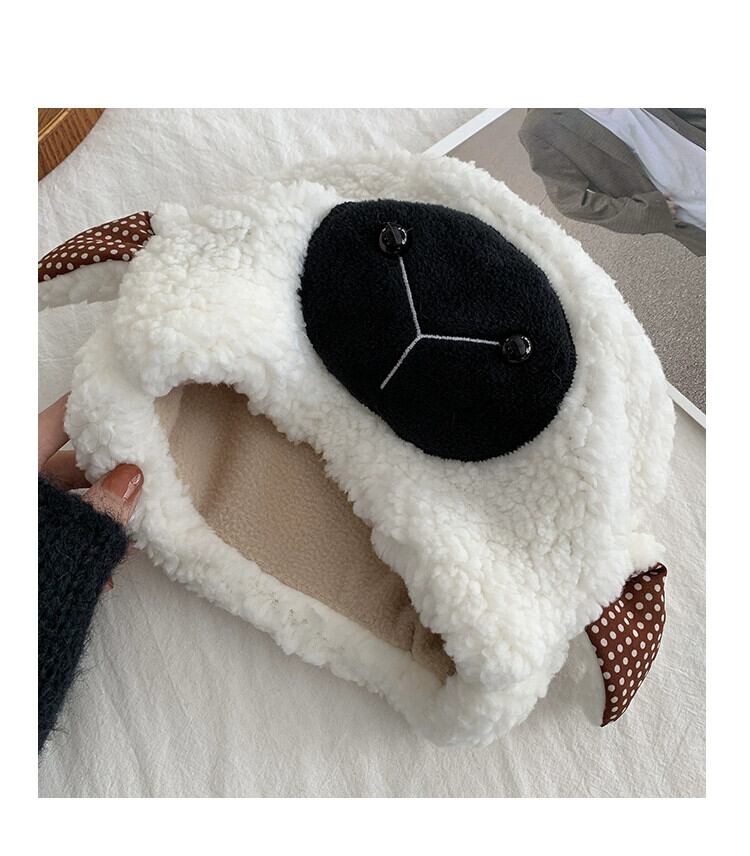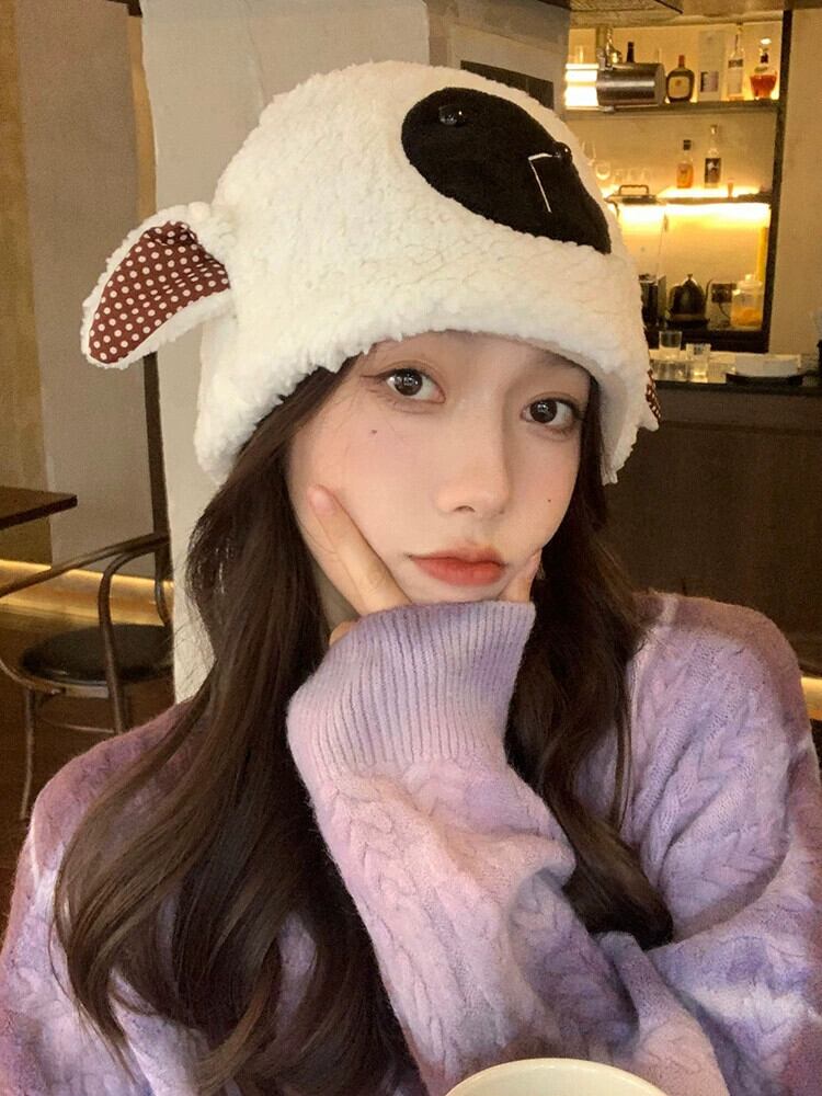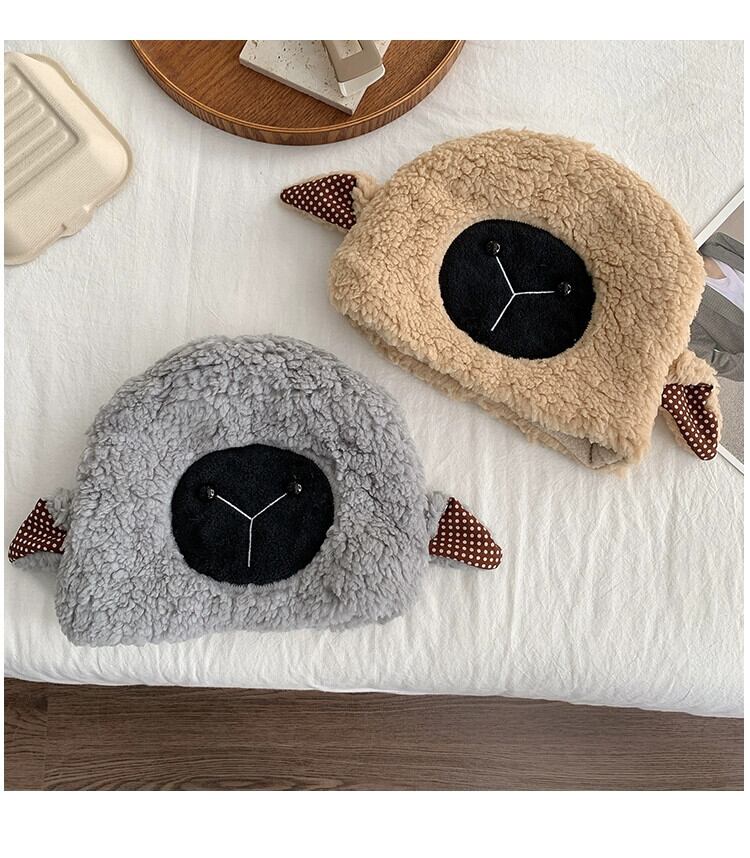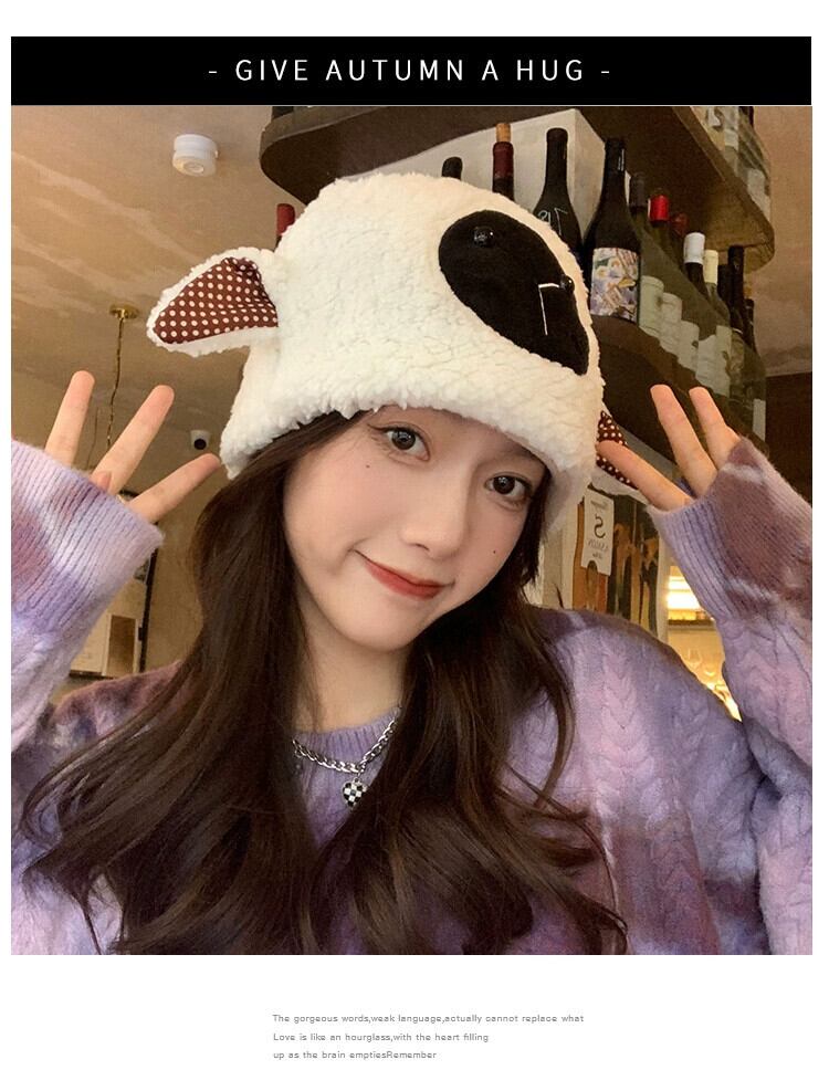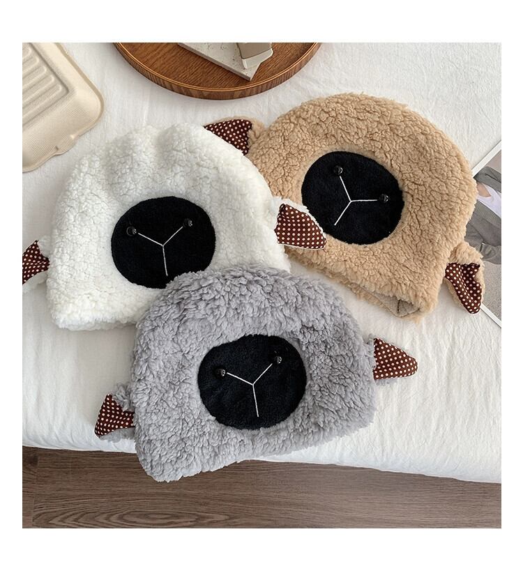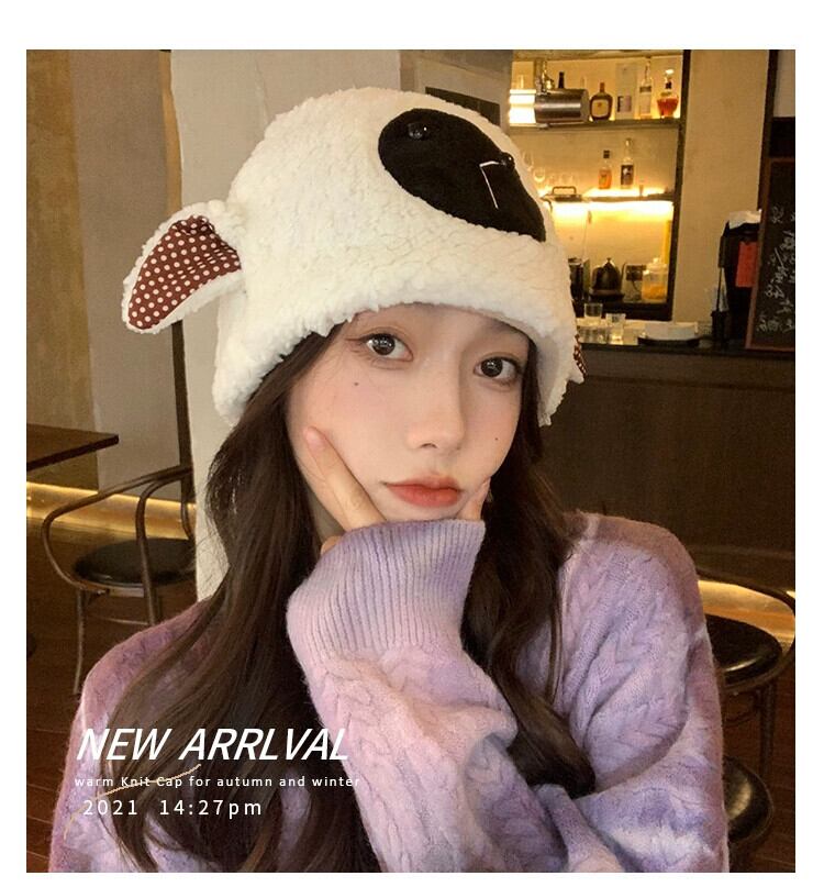 かわいい漫画子羊帽子女性の秋と冬の羊と羊のプルオーバー帽子豪華な子羊の毛肥厚女性の暖かい耳保護帽子 大人ガーリー スウィート キュート カジュアル オータム 秋物 ウィンター 冬物 15dd15438576337