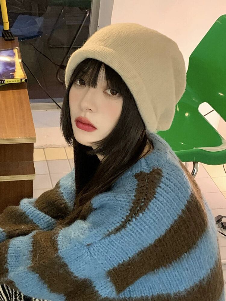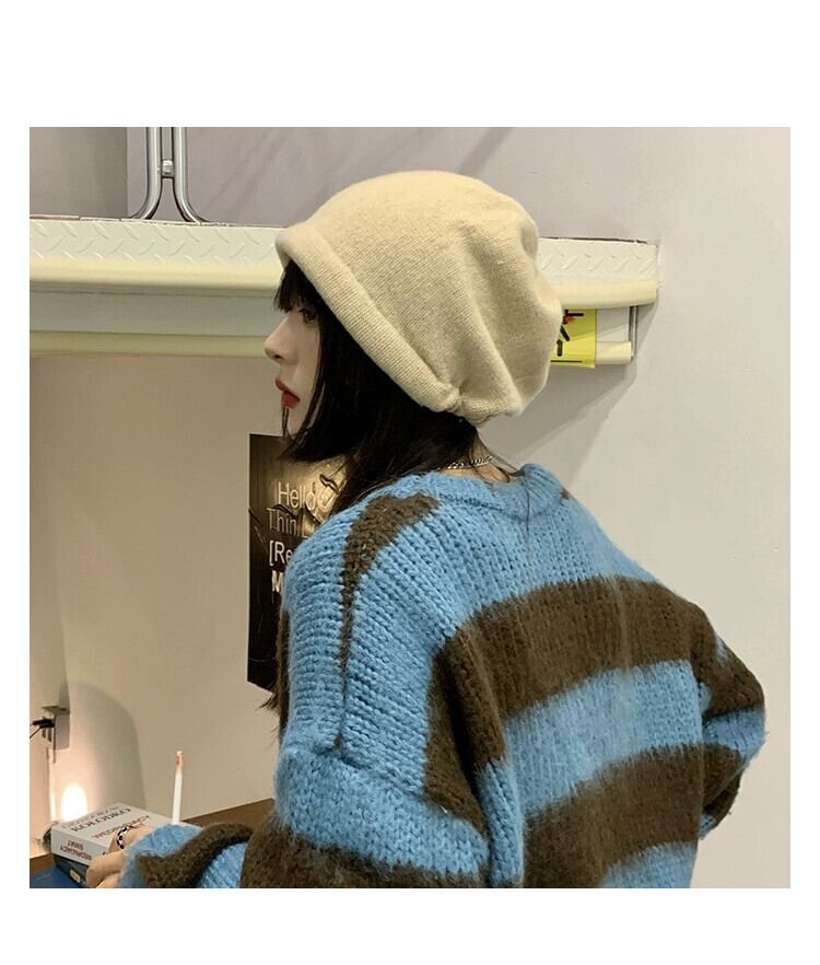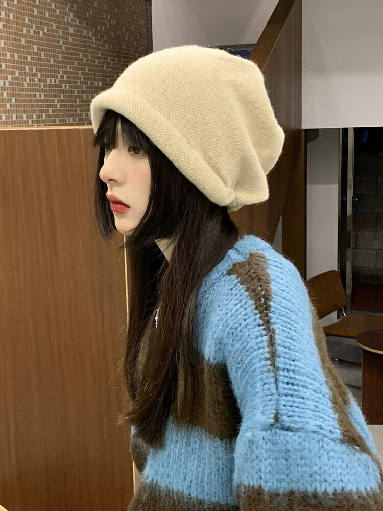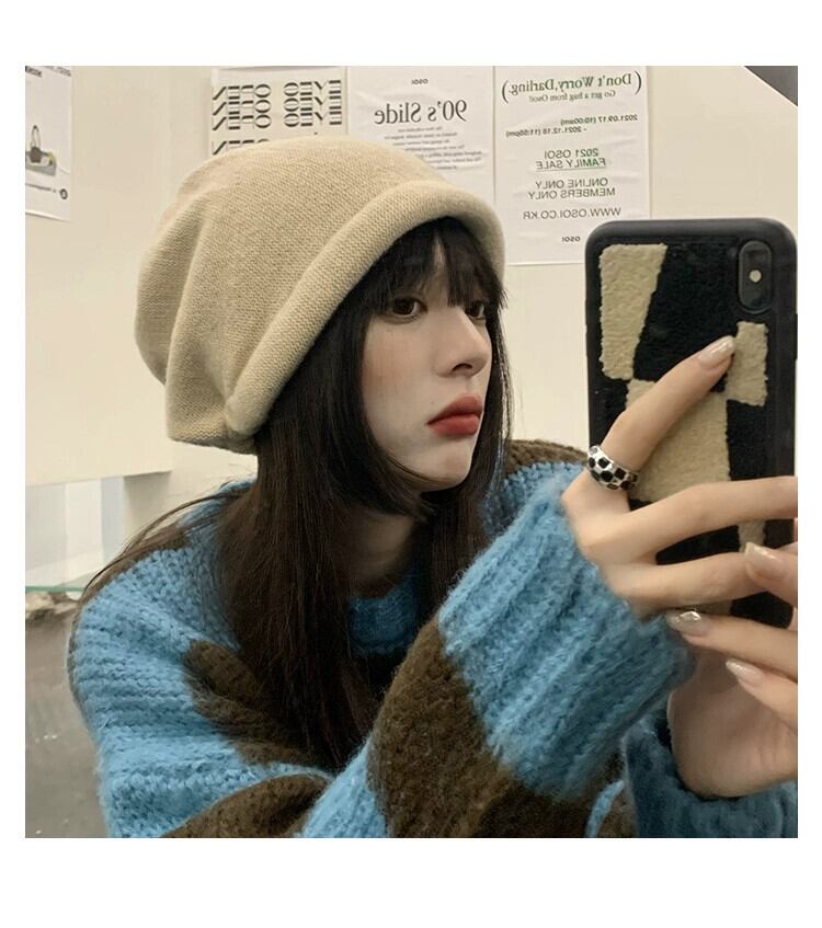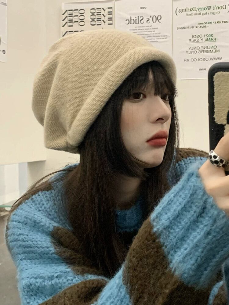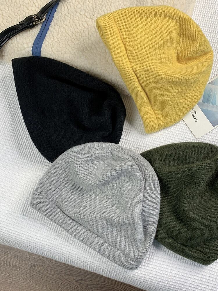 大きな頭囲 ese 無地暖かいウール帽子女性の秋と冬オールマッチ耳保護ニット帽子顔見せ小さなパイルコールド帽子 オータム 秋物 ウィンター 冬物 ソリッドカラー 15dd67379535891