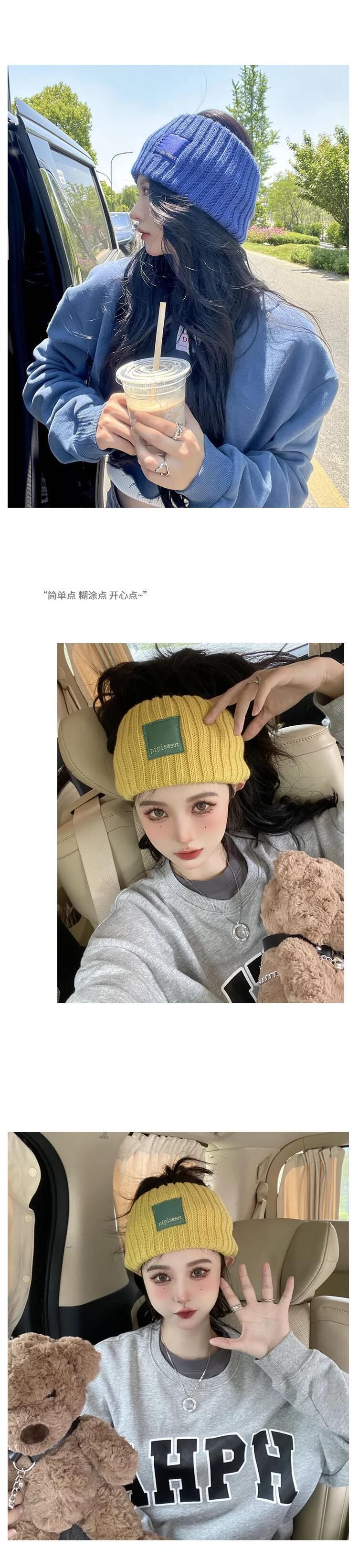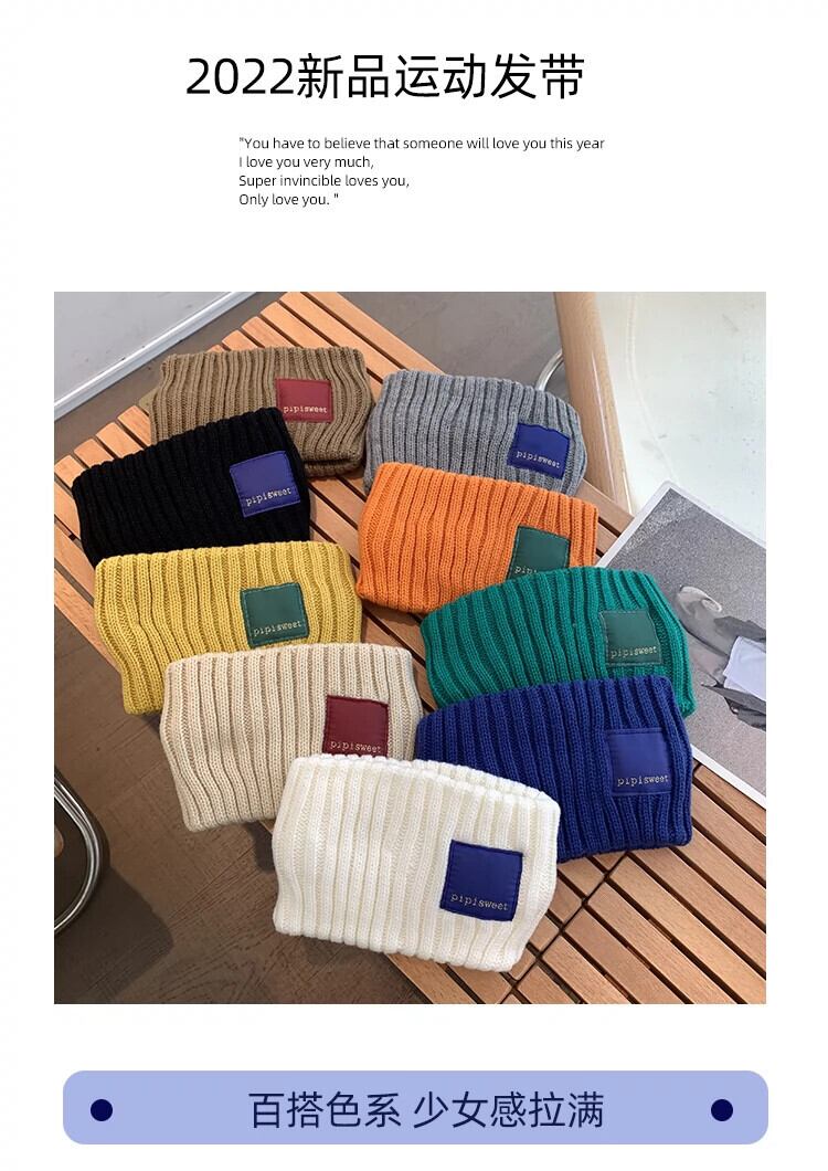 パッチカラーラベル弾性弾性ウールニットつば広ヘッドバンド女性の秋と冬の肥厚イヤープロテクターヘッドバンドヘッドギアヘアアクセサリー エラスティック 伸縮 オータム 秋物 ウィンター 冬物 ヘアバンド 15dd13484523735