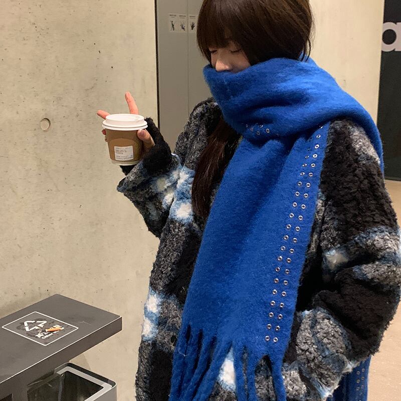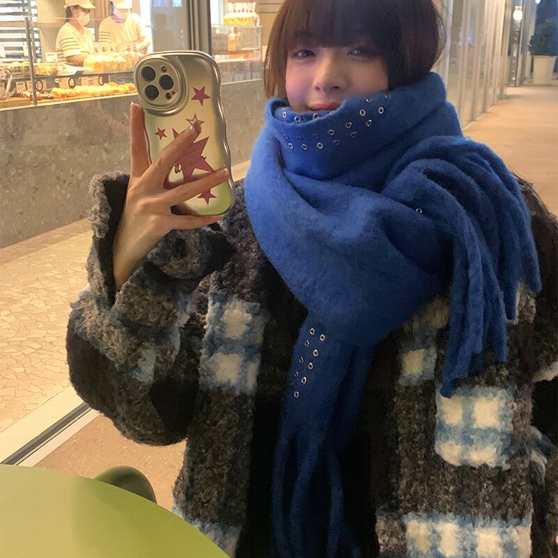 高度な感覚〜バージョンのinsスカーフ女性の冬2022新しいソリッドカラーモヘアショール厚く暖かいスカーフ潮 ウィンター 冬物 15dd48682854958