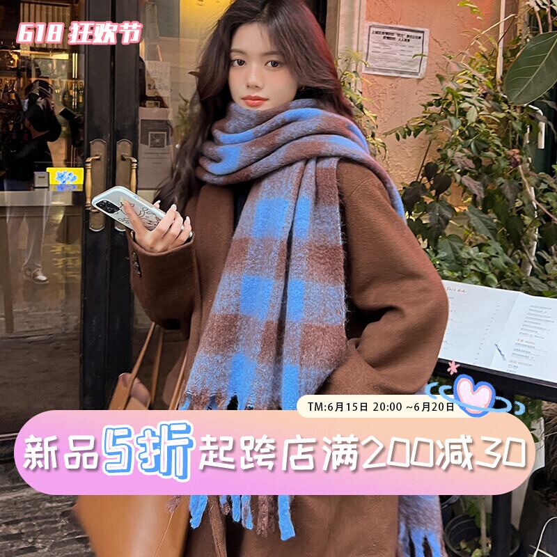 ゆう Shuxin 同じスタイル 2022 新しい冬のスカーフ女性ブルーオールマッチファッション肥厚ショールモヘアスカーフ ウィンター 冬物 15dd37166156587