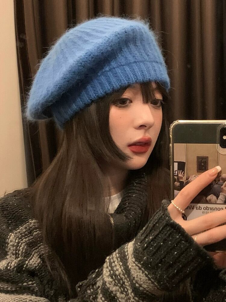 ラビットファーハットレディース秋と冬バージョン白い大きな頭囲ニットベレー帽冬ショー顔小さなつぼみアーティスト帽子潮 ホワイト オータム 秋物 ウィンター 冬物 ベレット ヘアアクセサリー 15dd37517995439