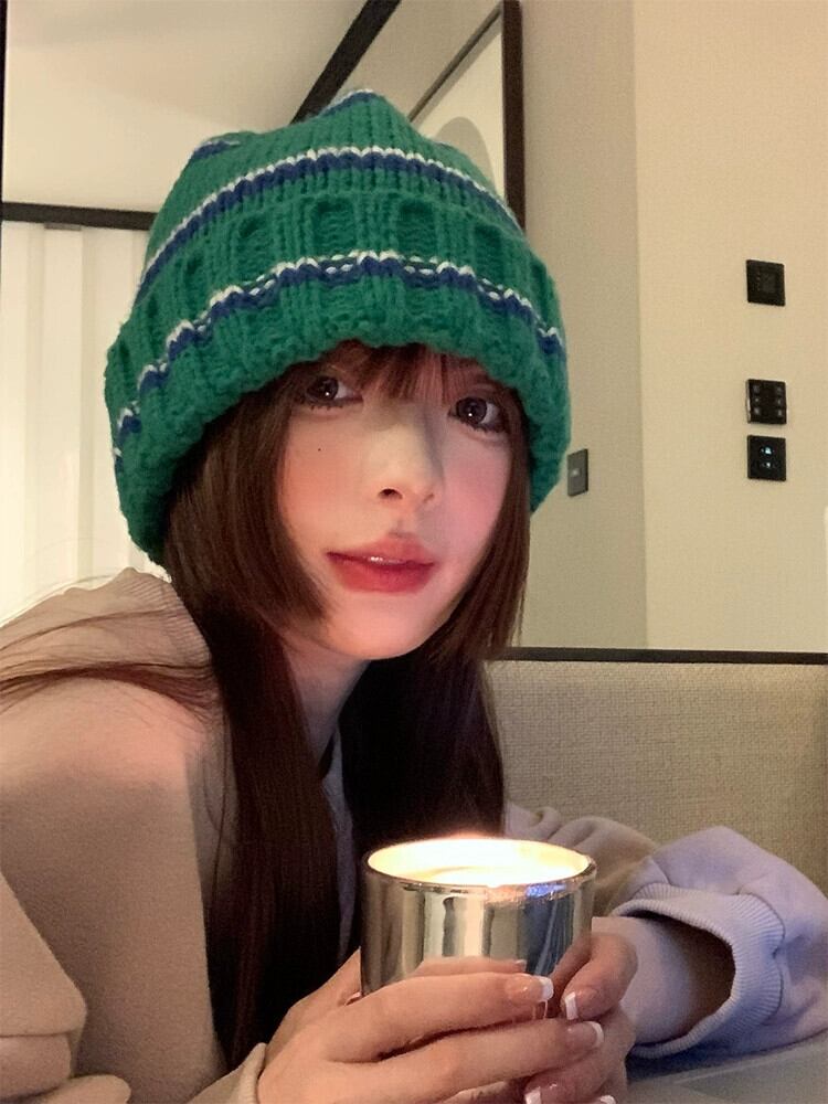 レトロな大きな頭囲ウール帽子女性の秋冬スタイルトレンディな暖かい耳保護コールド帽子オールマッチ顔小さなニット帽子 オータム 秋物 ウィンター 冬物 15dd68562059203