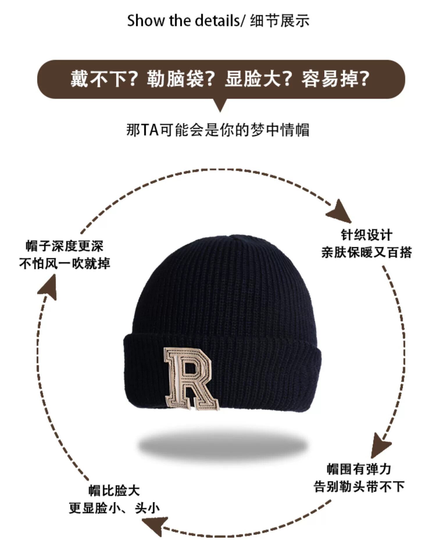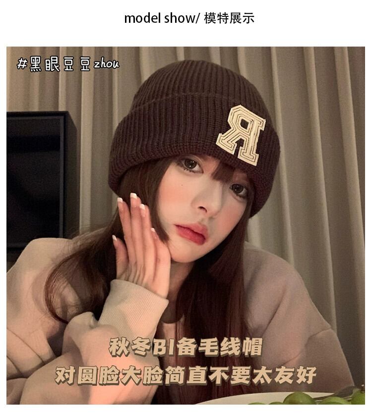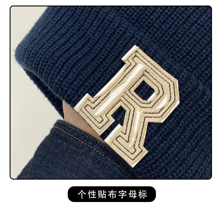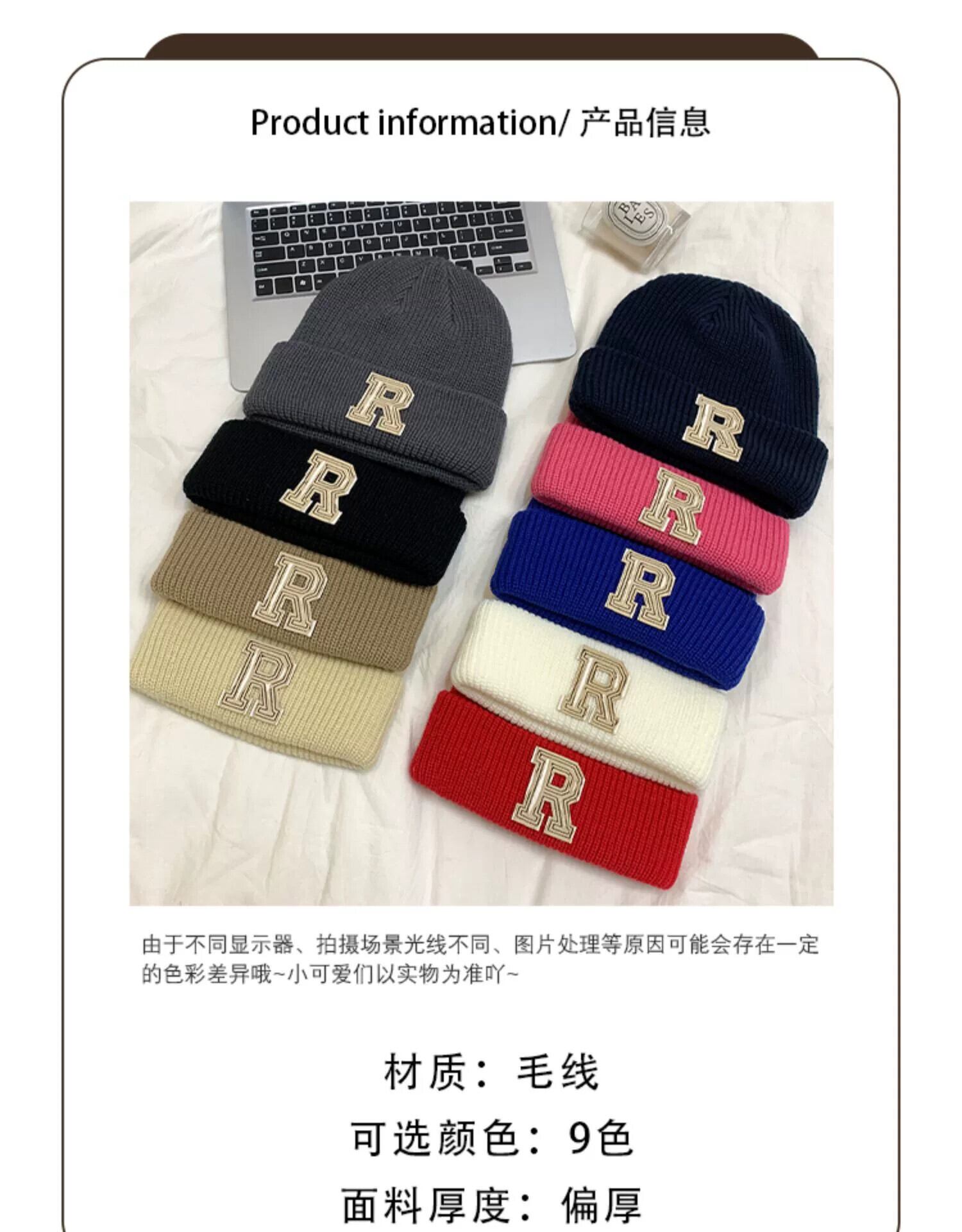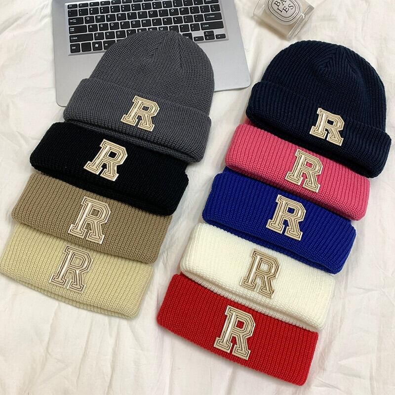 文字 R のバージョン標準ウール帽子女性の秋と冬イン暖かいニット帽子 2022 新しいビッグヘッドアラウンド耳保護帽子 オータム 秋物 ウィンター 冬物 15dd30725886035