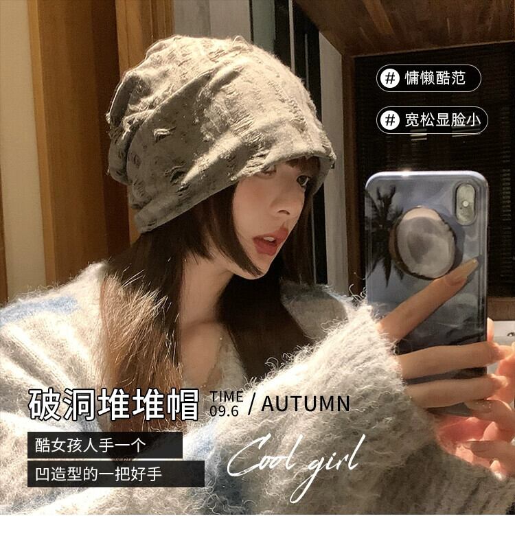 インホールヒープハットレディース秋冬オールマッチ暖かい耳保護閉じ込めハットバージョンのトレンディなビッグヘッドラップヘッドキャップコールドハット 帽子 オータム 秋物 ウィンター 冬物 15dd3606803463