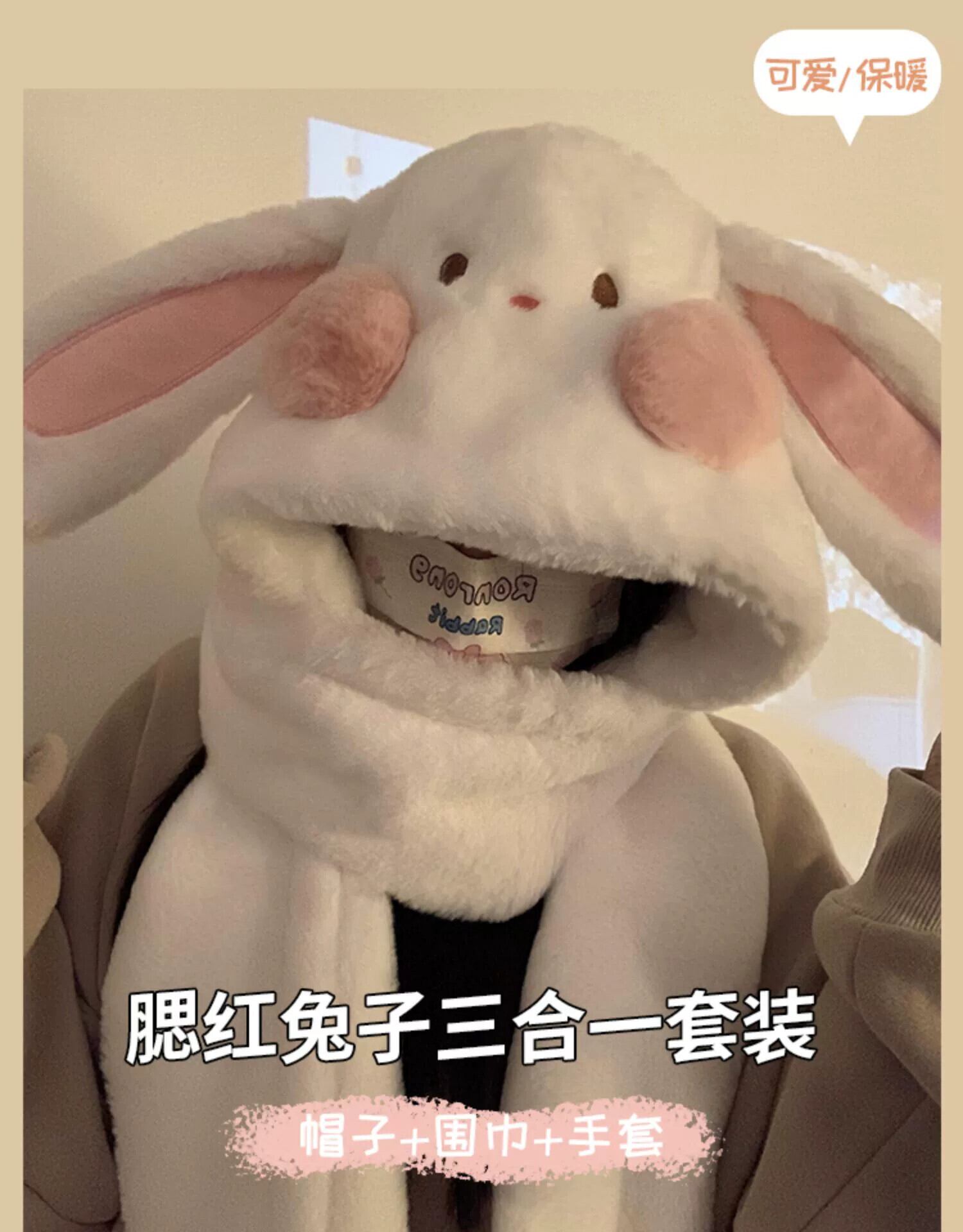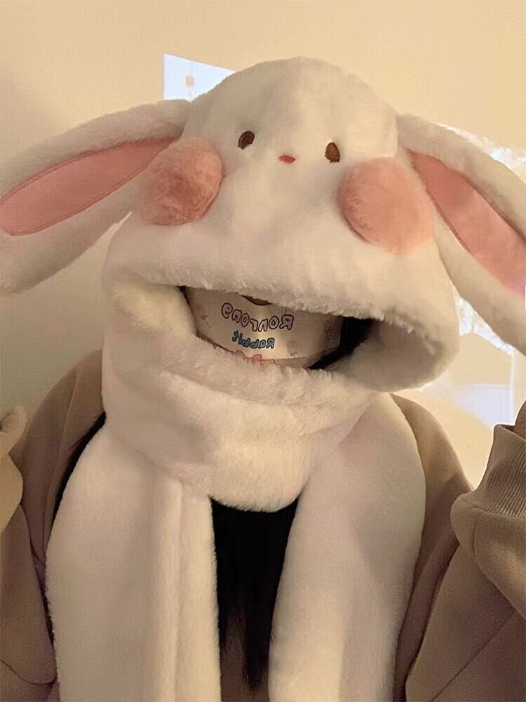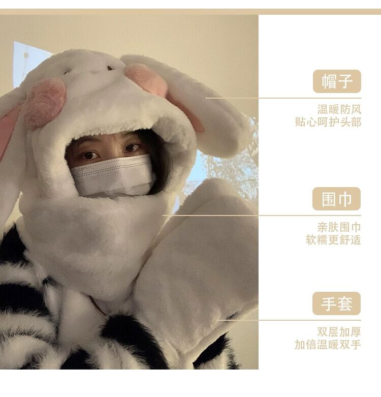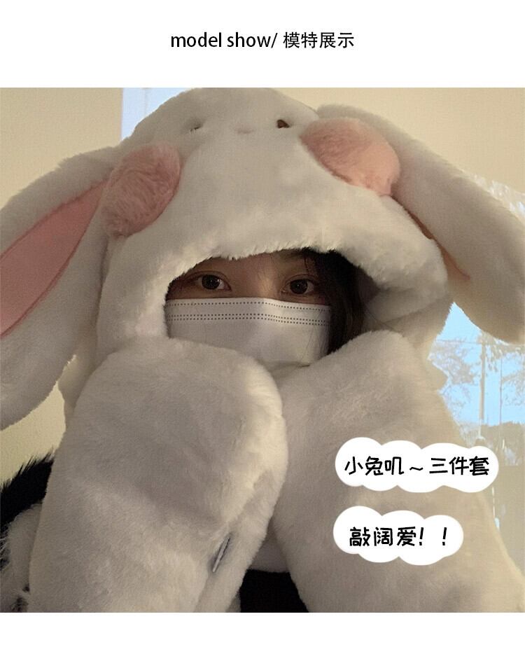 帽子 レディース 冬 暖かい かわいい ウサギの耳 ぬいぐるみ 帽子 スカーフ 手袋 1 つの厚みのあるネック 3 点セット 大人ガーリー スウィート キュート カジュアル ウィンター 冬物 15dd83966628043