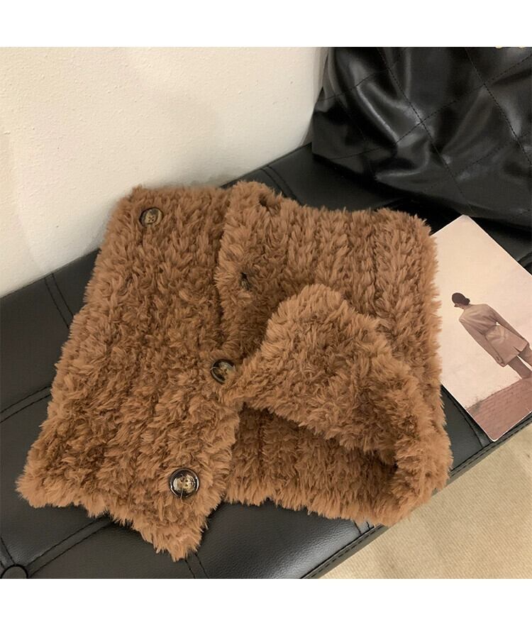ファッションボタンぬいぐるみ肥厚スカーフ女性の冬肥厚暖かい学生オールマッチeignスタイル学生スカーフ潮 ウィンター 冬物 15dd95161052081