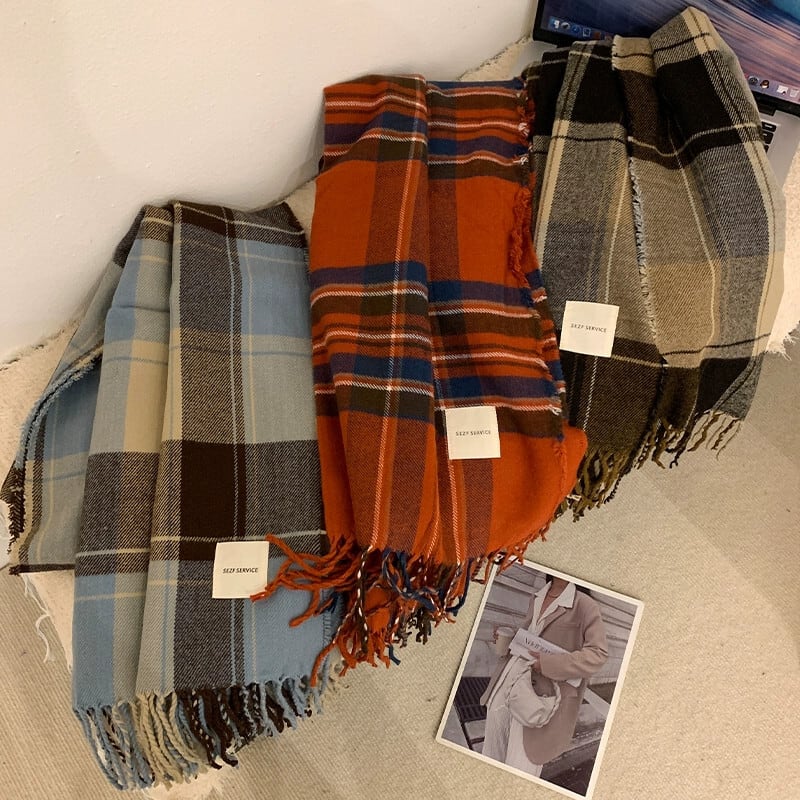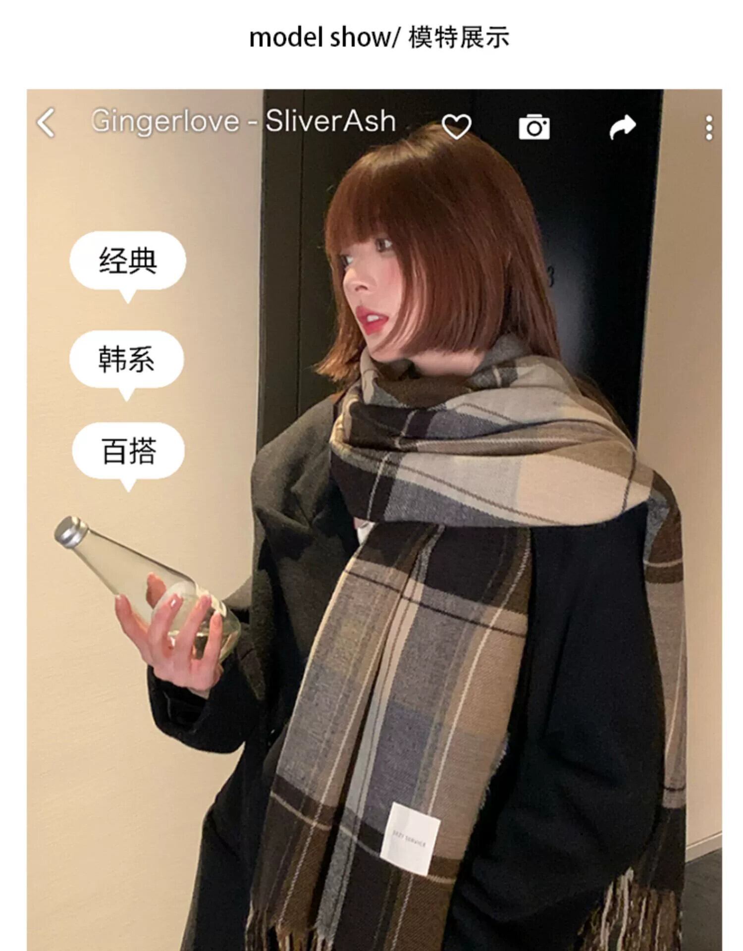 Ins 模造カシミヤチェック柄スカーフ女性の冬 2022 新しいオールマッチ暖かい高レベルニット学生スカーフトレンディな ウィンター 冬物 15dd42967340477