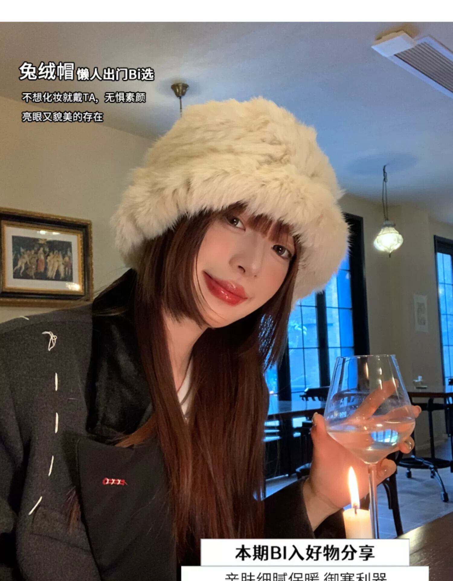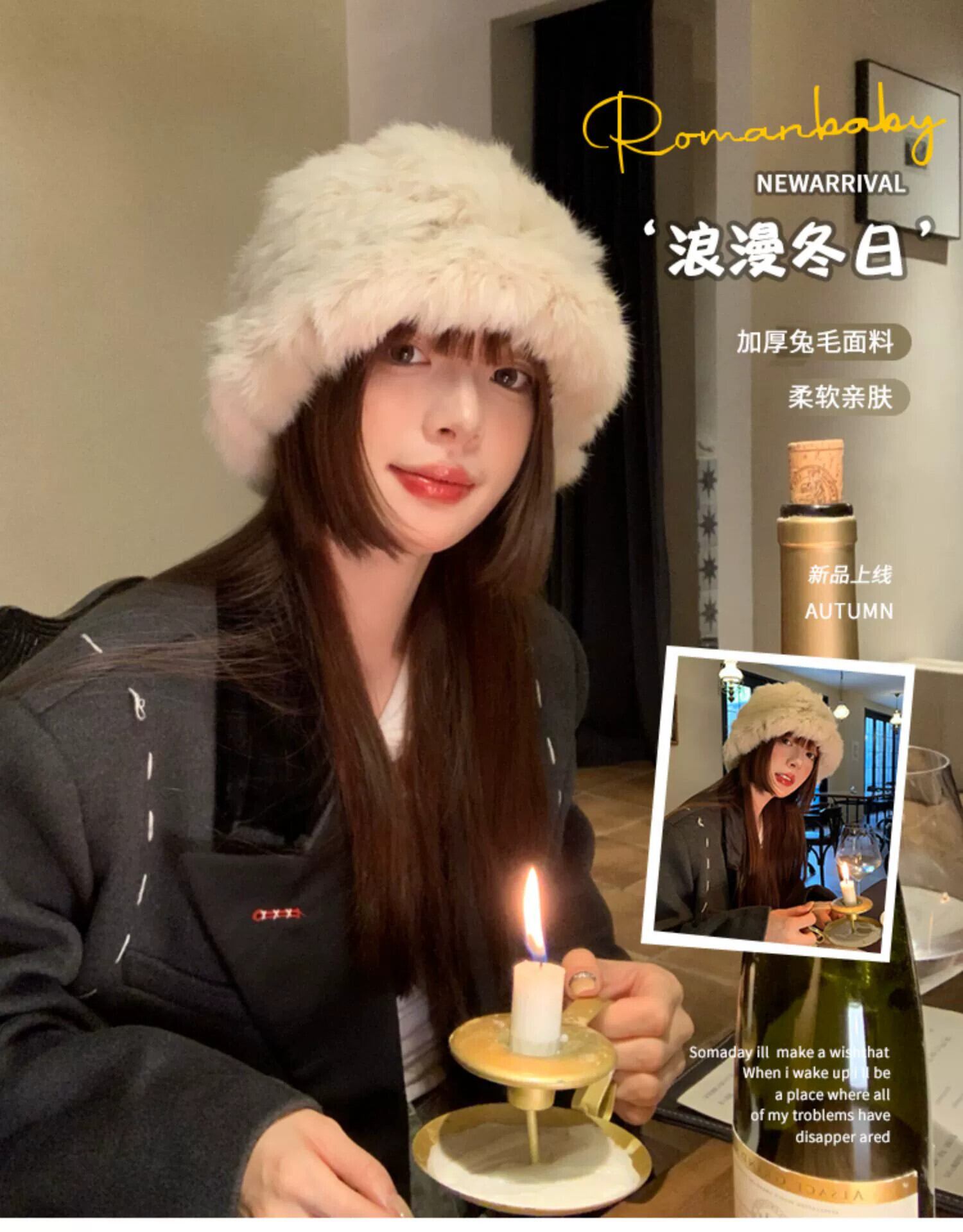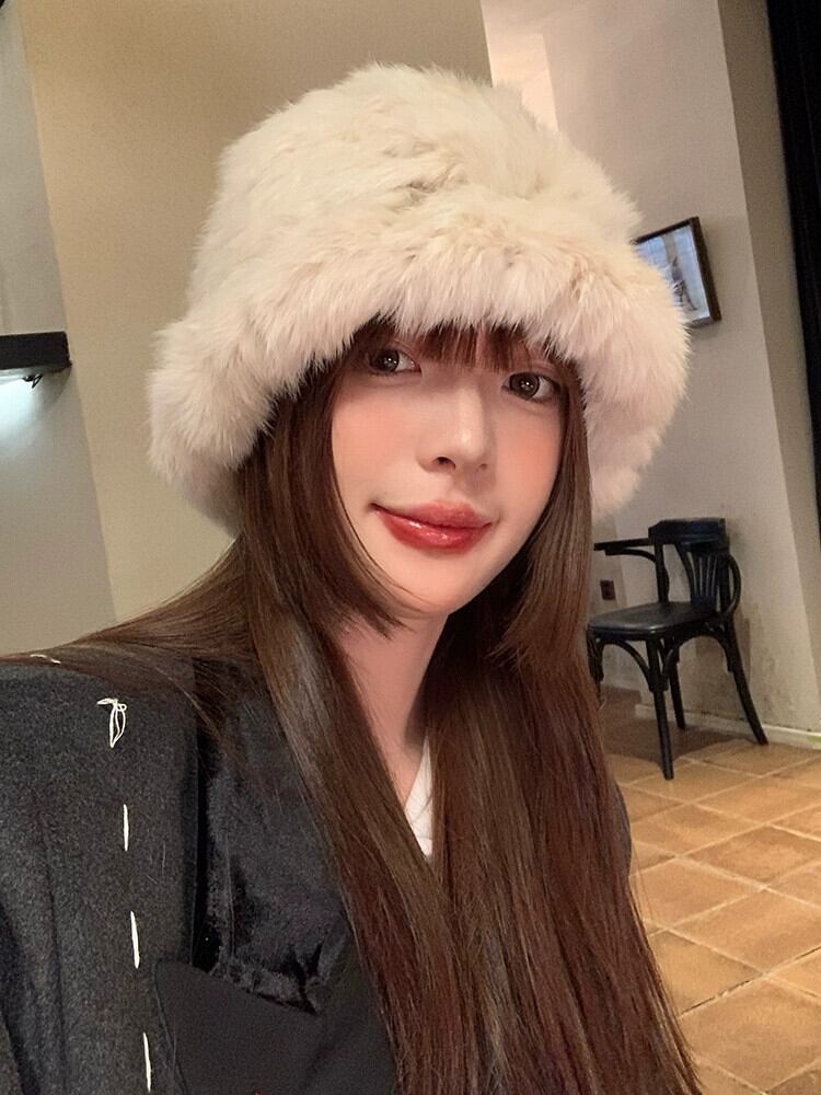 ウサギの毛皮の帽子女性の秋と冬のショーフェイス小さな毛皮のぬいぐるみ帽子潮暖かい耳の保護毛皮の漁師の帽子大きな頭囲 オータム 秋物 ウィンター 冬物 15dd62820308600