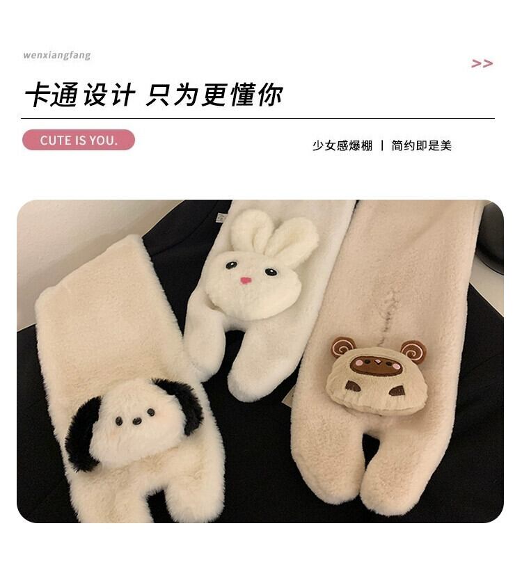 かわいい子犬ぬいぐるみスカーフ冬の女性 2022 新しいインオールマッチ漫画毛皮のような暖かい学生スカーフ 大人ガーリー スウィート キュート カジュアル ウィンター 冬物 15dd77055348245