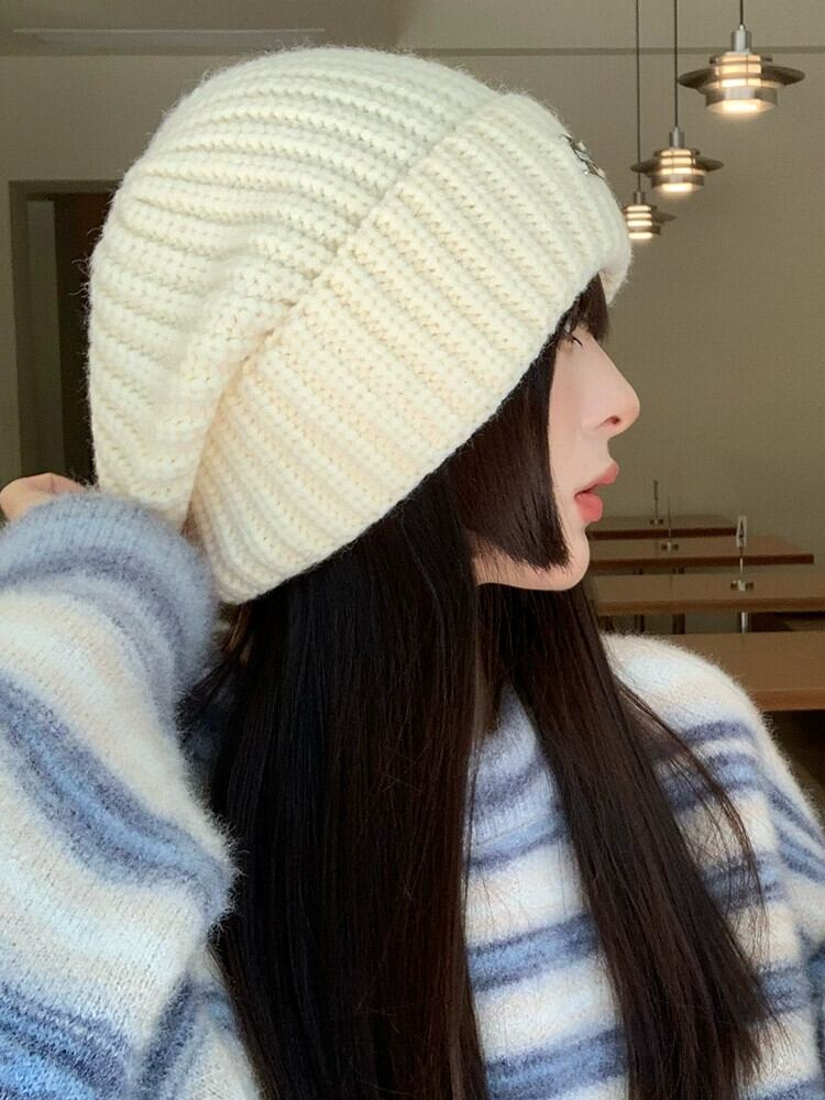 大きな頭囲肥厚太い糸ニット帽子女性の秋と冬バージョンオールマッチファッション防寒帽子冬暖かい耳保護ウール帽子 オータム 秋物 ウィンター 冬物 15dd77311512958