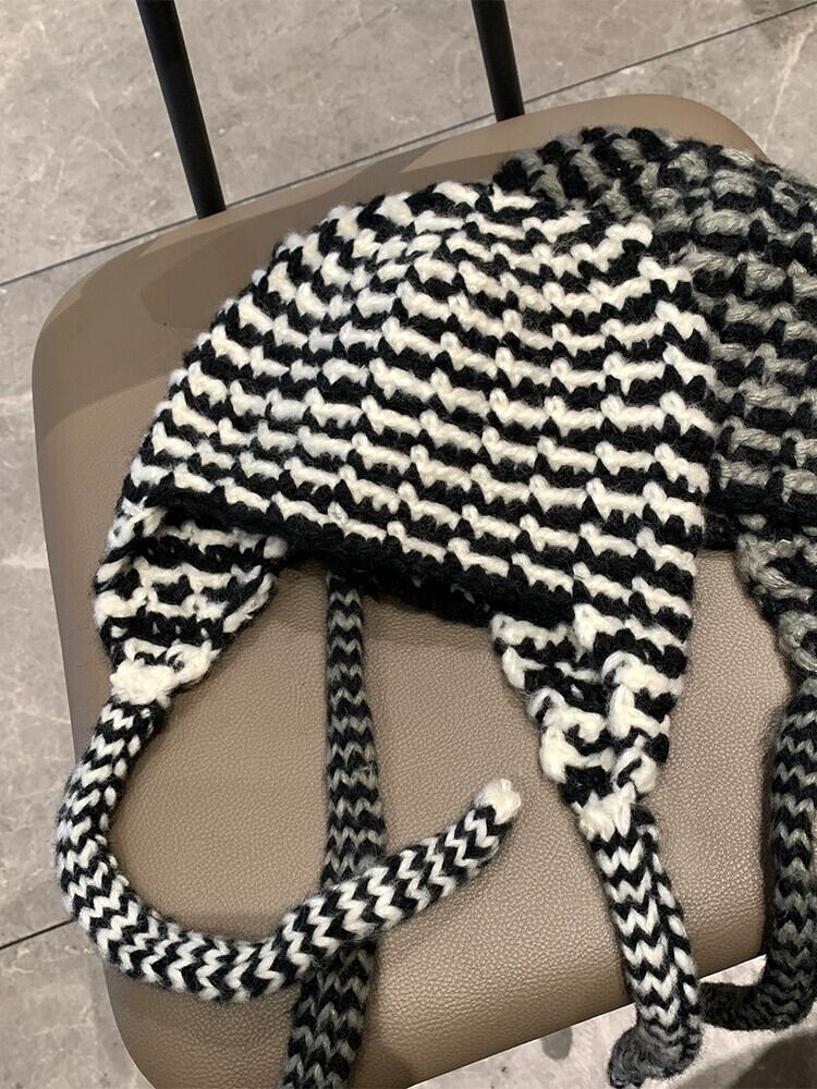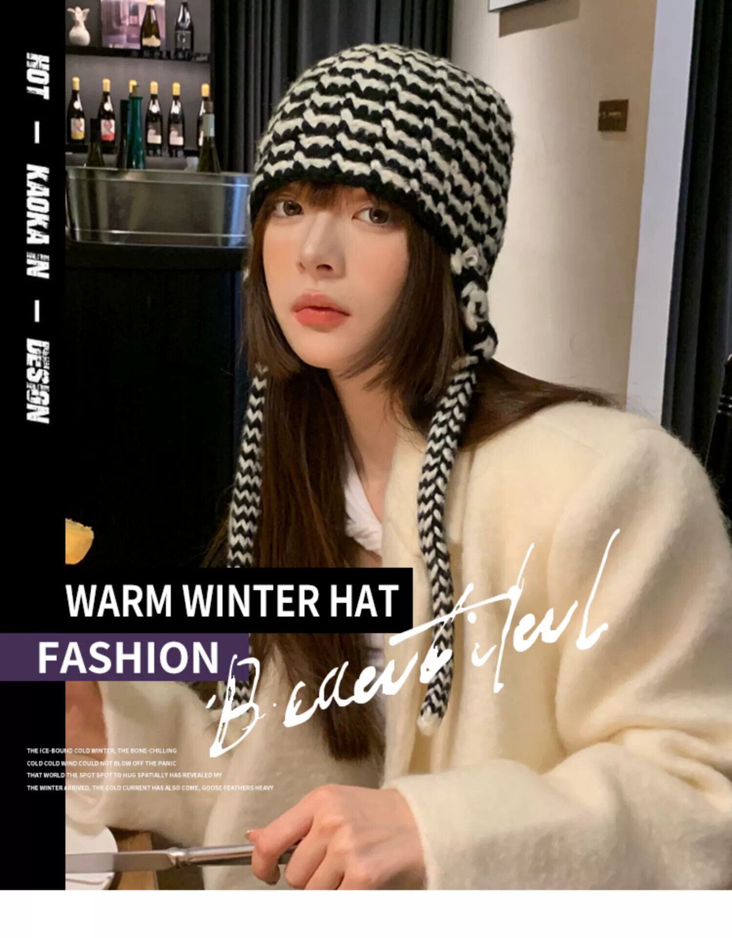 これらの手編みの厚いウールの帽子、女性の秋と冬のニッチトレンディなクールなオールマッチニットヘッドギア暖かい耳保護帽子 オータム 秋物 ウィンター 冬物 15dd43174025090