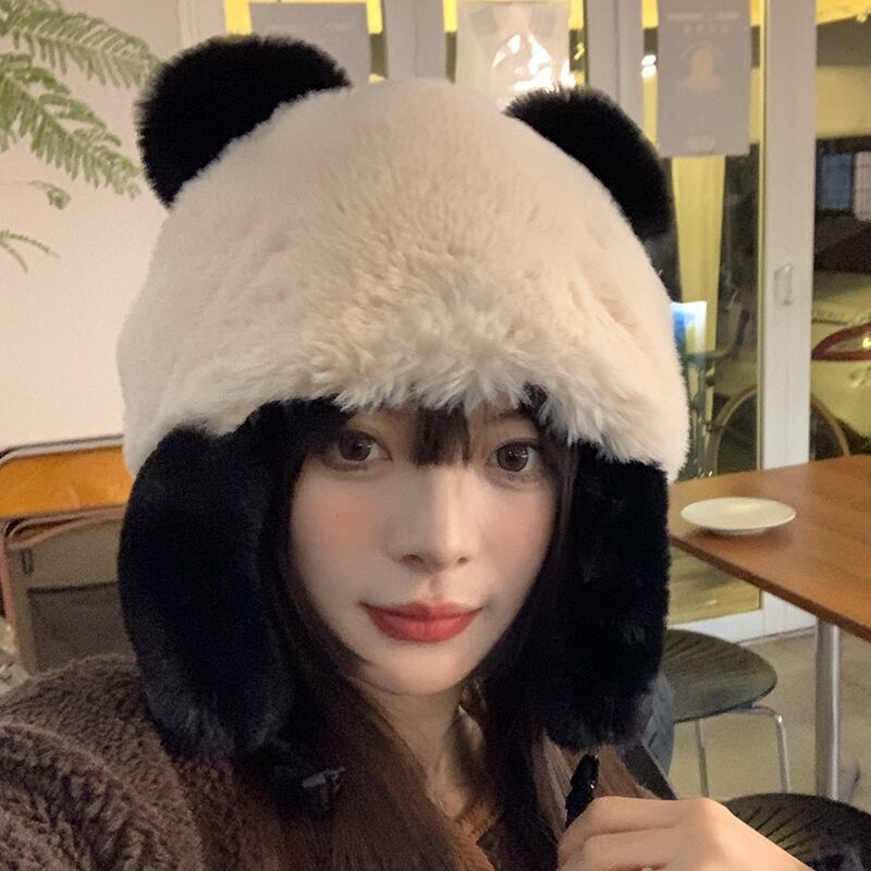 かわいいパンダの厚みのあるぬいぐるみ雷峰帽子冬は寒さと暖かさを保護するバッグとして使用できます耳保護スキー帽子 大人ガーリー スウィート キュート カジュアル ウィンター 冬物 15dd42173909304