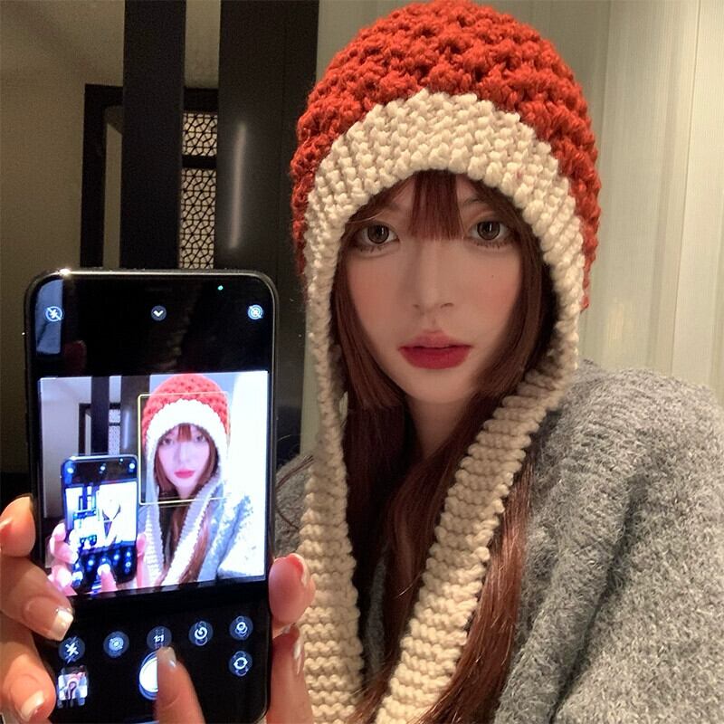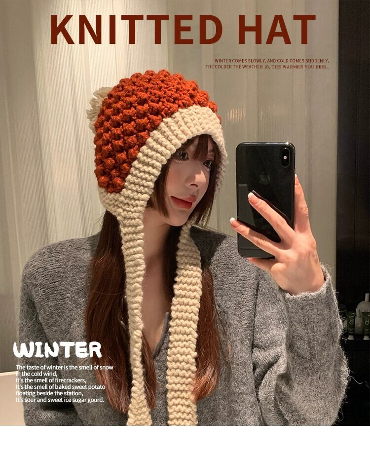 手作り包頭帽子のバージョンの女性の秋と冬暖かいニット帽子ウール帽子ファッションショー顔小さな耳保護雷峰帽子潮 オータム 秋物 ウィンター 冬物 15dd69009617563