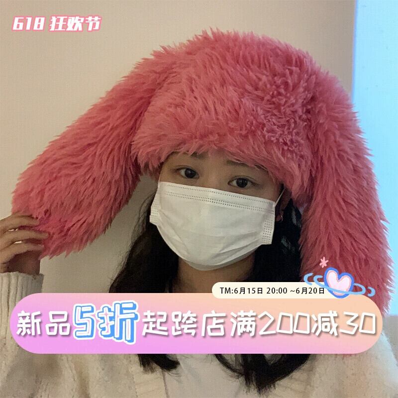 かわいいウサギの耳包頭帽子秋と冬ぬいぐるみ暖かい防寒帽子女性ネット赤耳保護雷峰帽子潮 レッド 大人ガーリー スウィート キュート カジュアル オータム 秋物 ウィンター 冬物 15dd11346770106