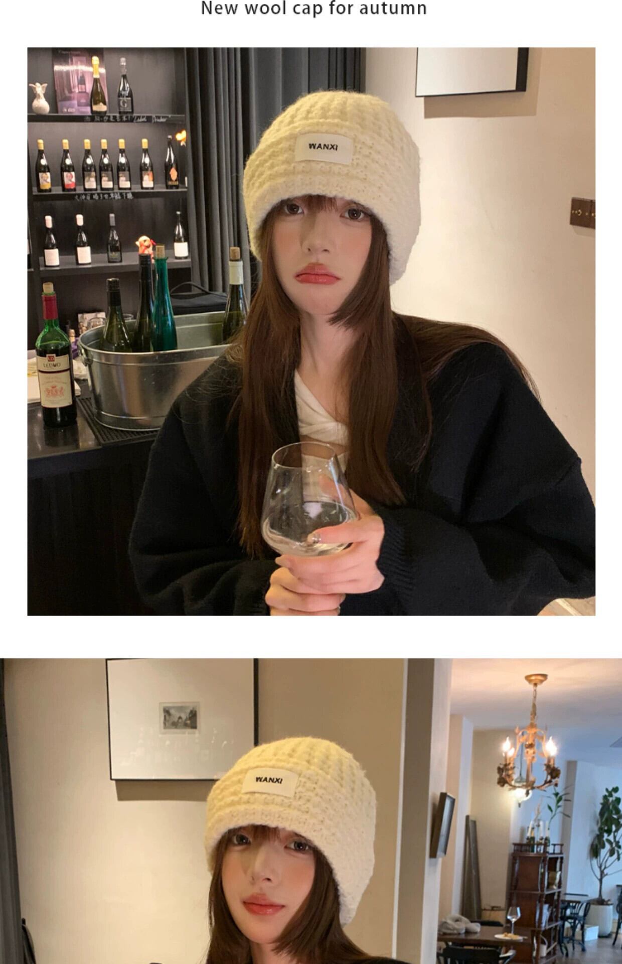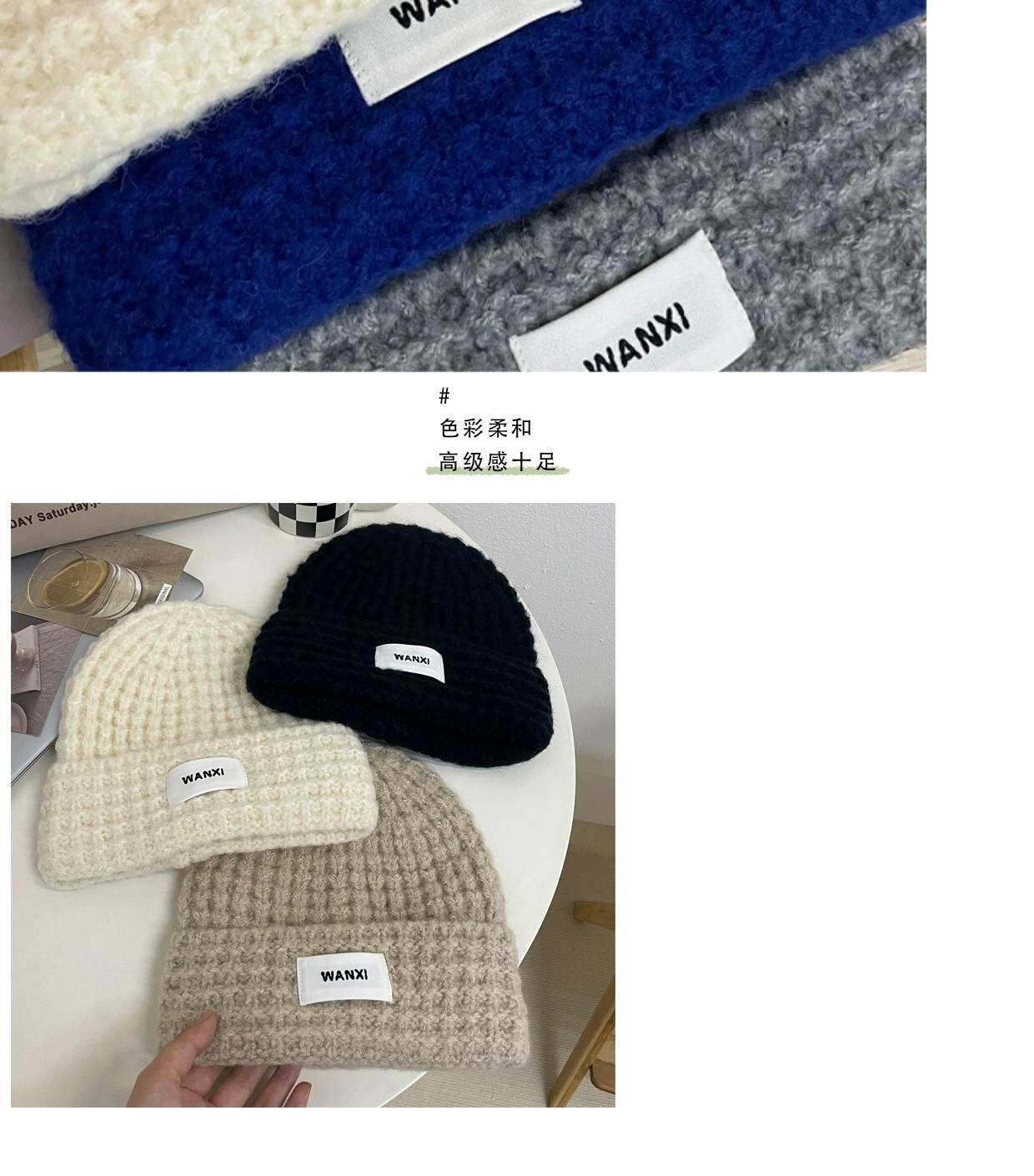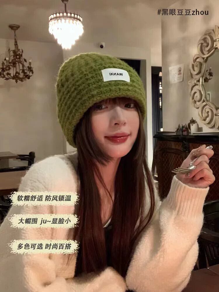 トレンディなブランドのバージョンオールマッチショーフェイス小さなグリーンニットウール帽子女性の秋と冬のファッション厚く暖かい耳保護コールドハット オータム 秋物 ウィンター 冬物 15dd99082270669