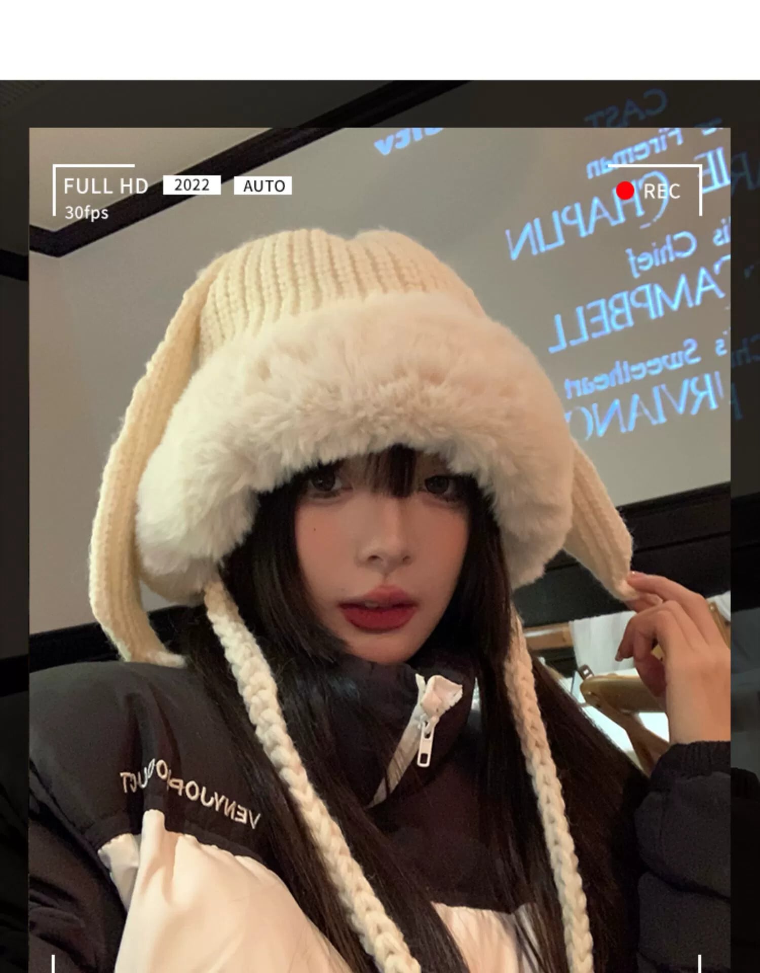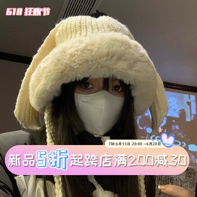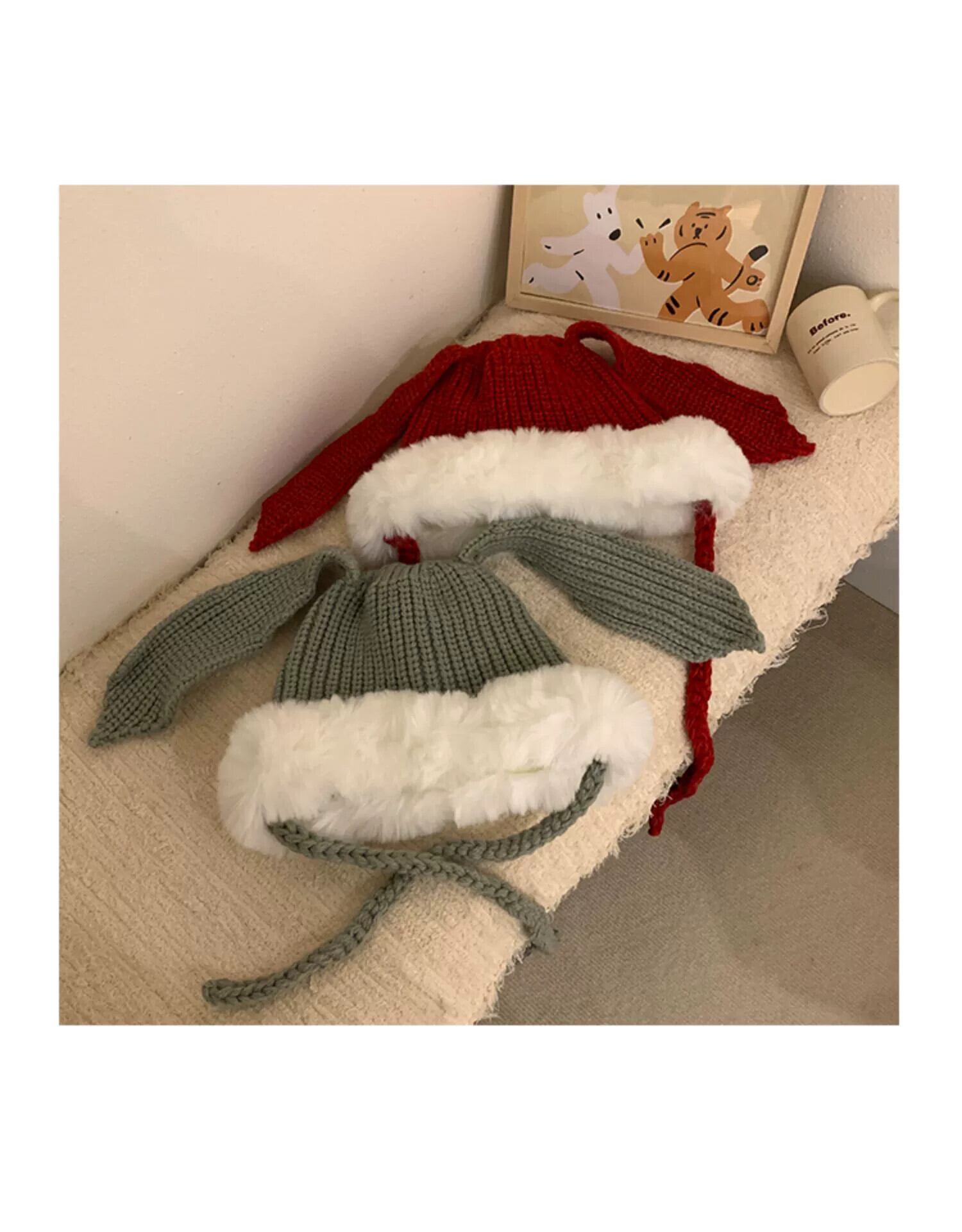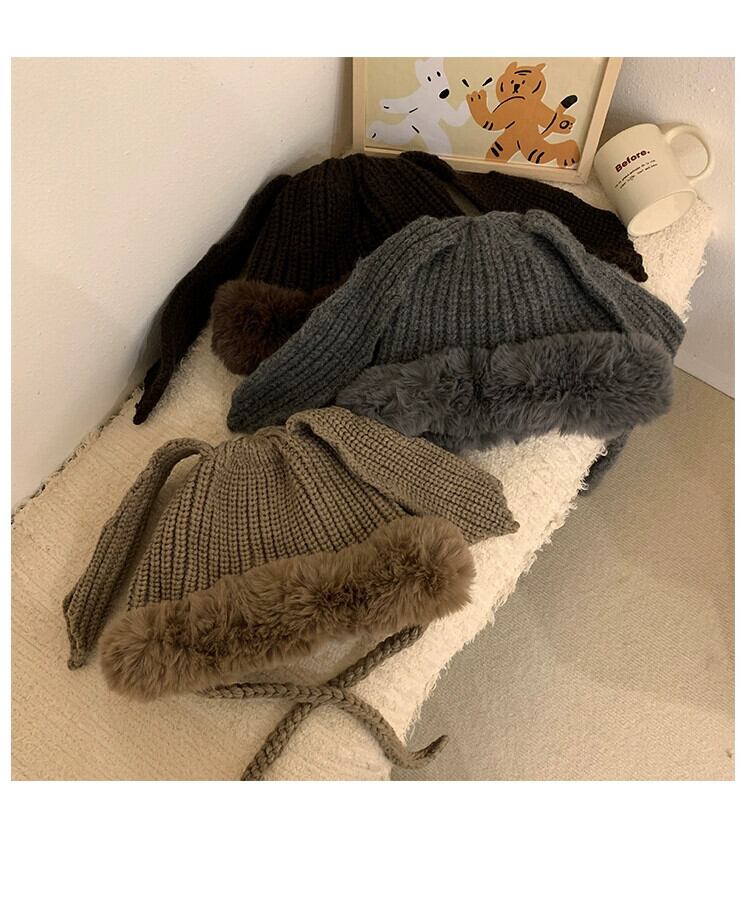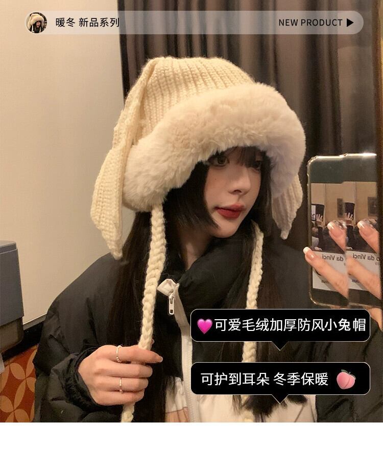豪華な雷峰帽子女性の秋と冬インネット赤かわいいウサギの耳ニット暖かい肥厚耳保護ウール帽子 レッド 大人ガーリー スウィート キュート カジュアル オータム 秋物 ウィンター 冬物 15dd11221133234
