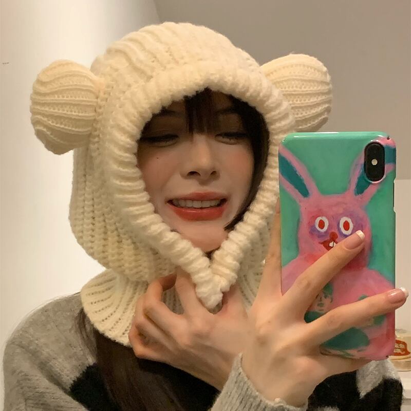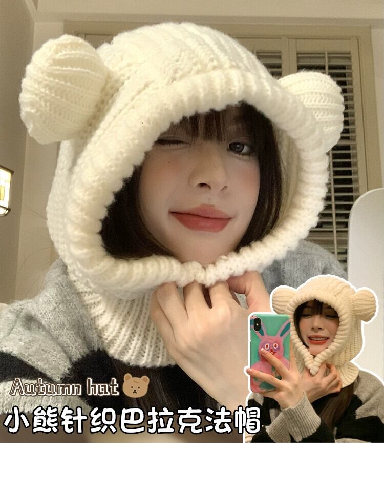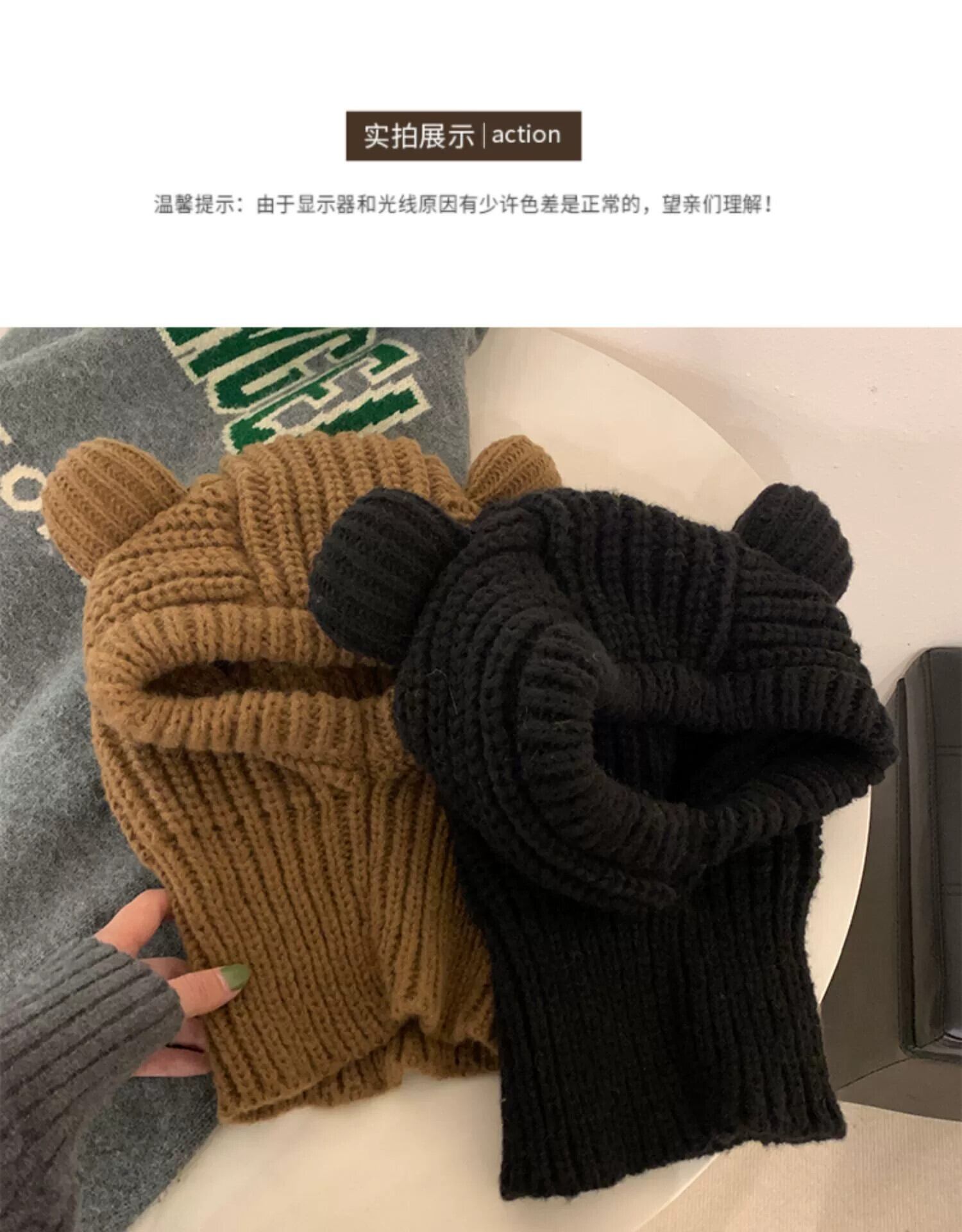 クマ耳帽子 レディース 冬プラス ベルベット 厚みのある 防寒 ネックガード ワンピースハット かわいい ウール帽子 大人ガーリー スウィート キュート カジュアル ウィンター 冬物 15dd74787905214