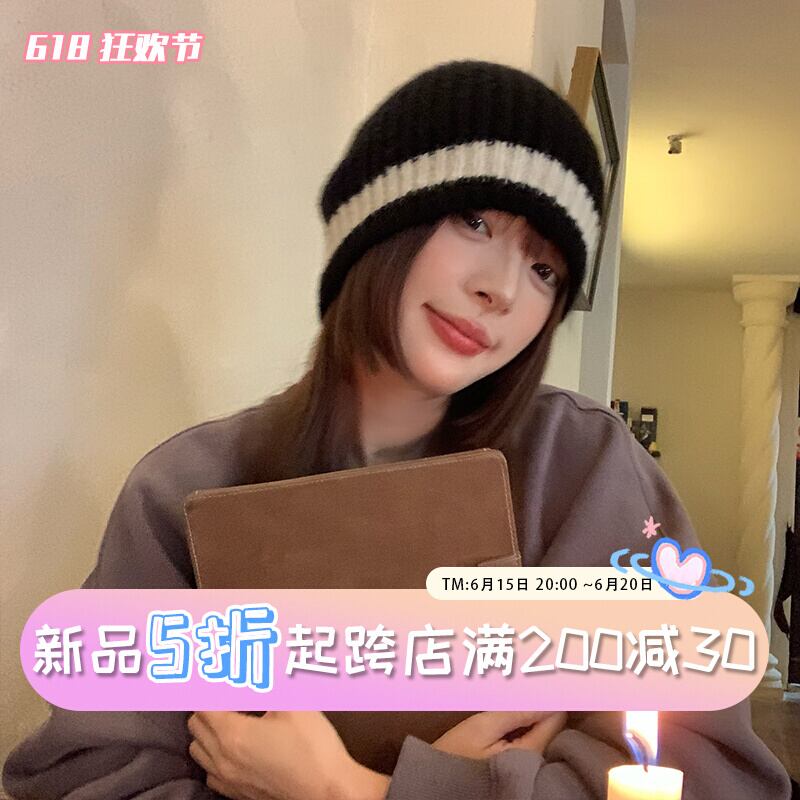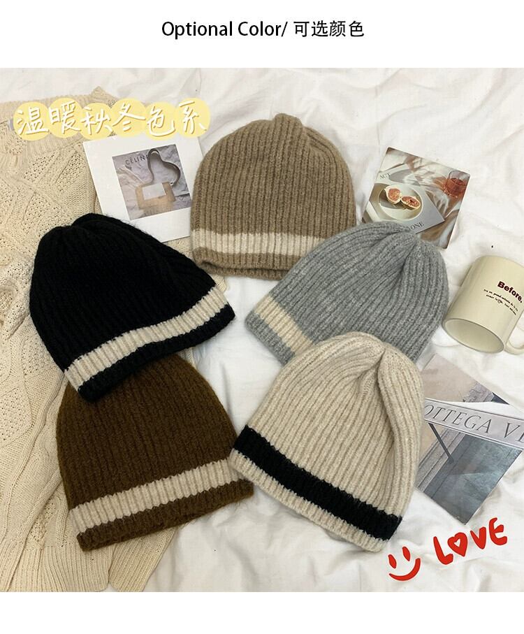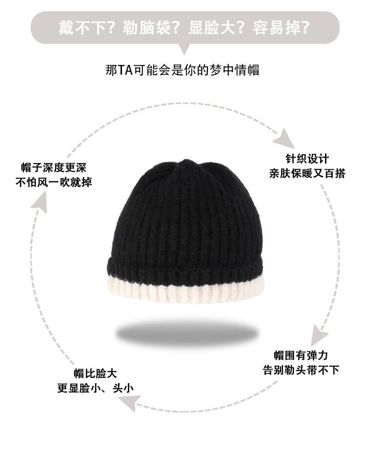 ウール混配色ウール帽子レディース秋冬オールマッチ暖かい耳保護パイルパイル帽子顔見せ小肌に優しいニット帽 オータム 秋物 ウィンター 冬物 15dd76571824940
