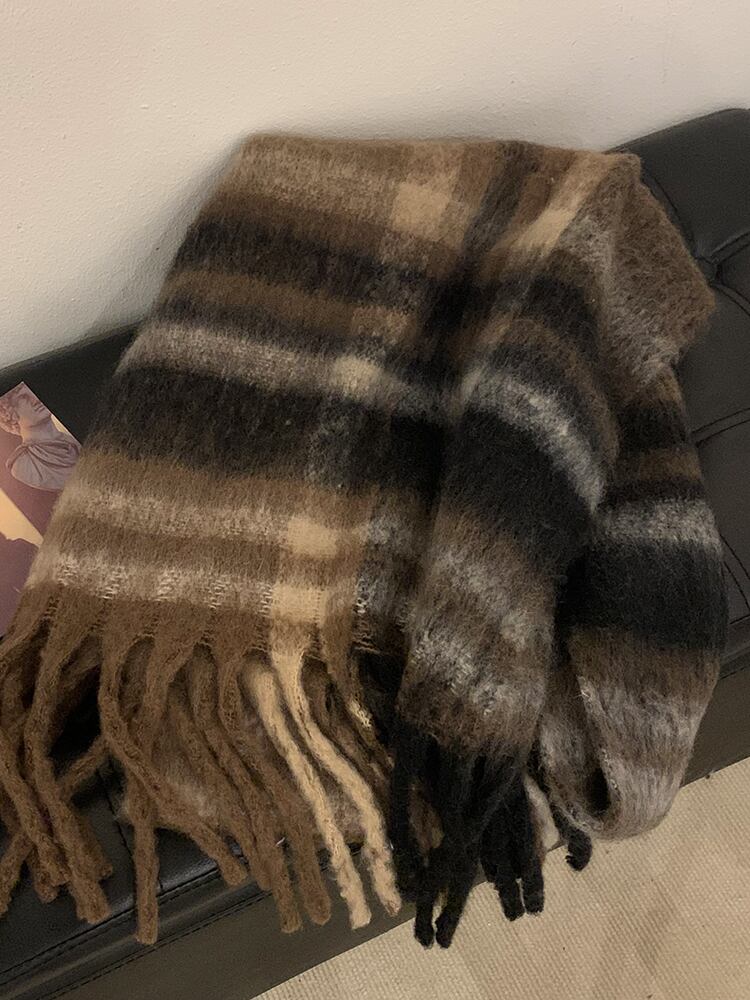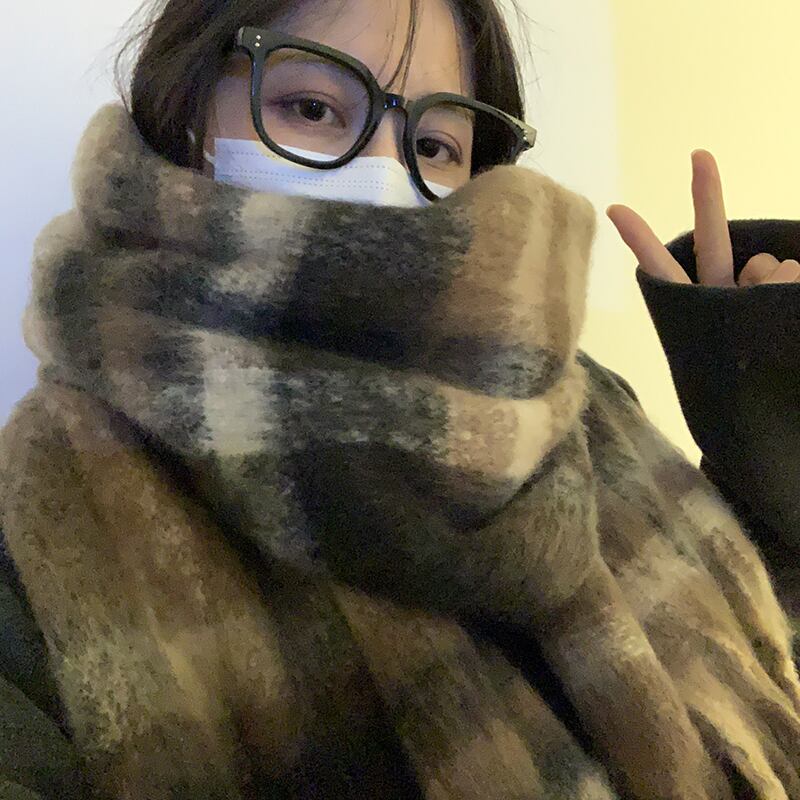 高級感〜モヘアスカーフ冬暖かい厚手のチェック柄ショールバージョンオールマッチ学生スカーフトレンド ウィンター 冬物 15dd88451687401