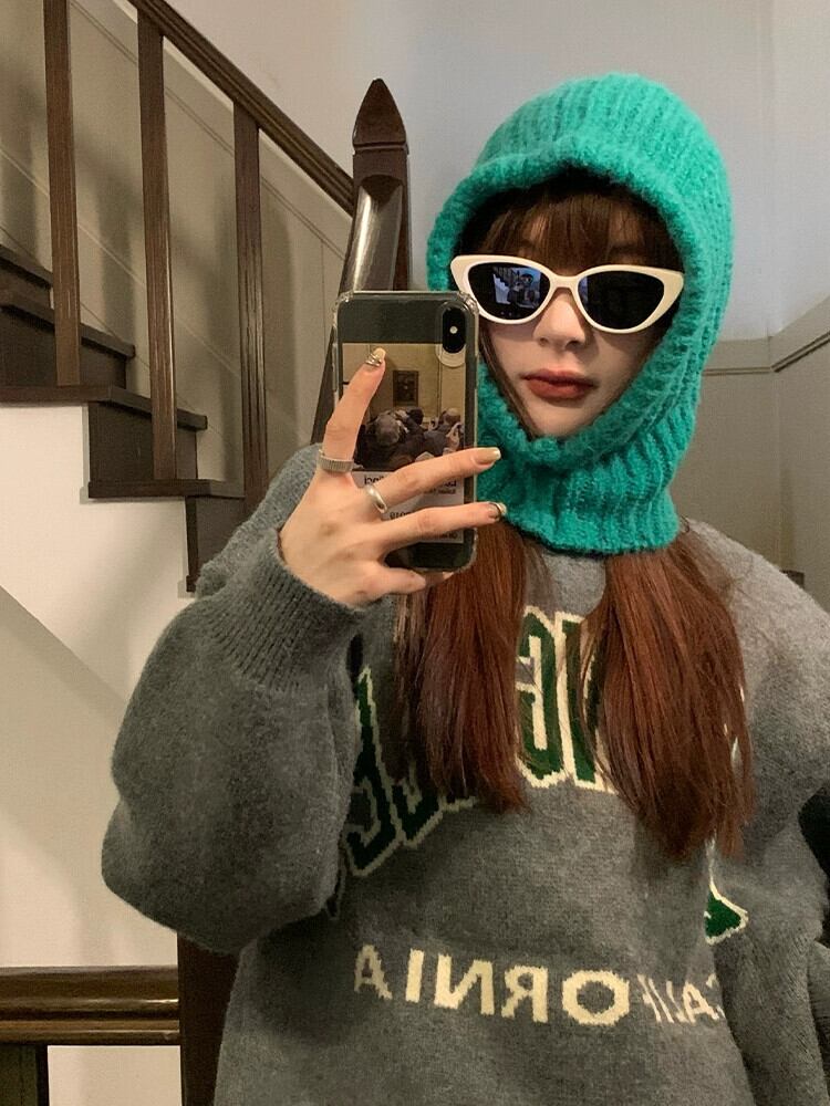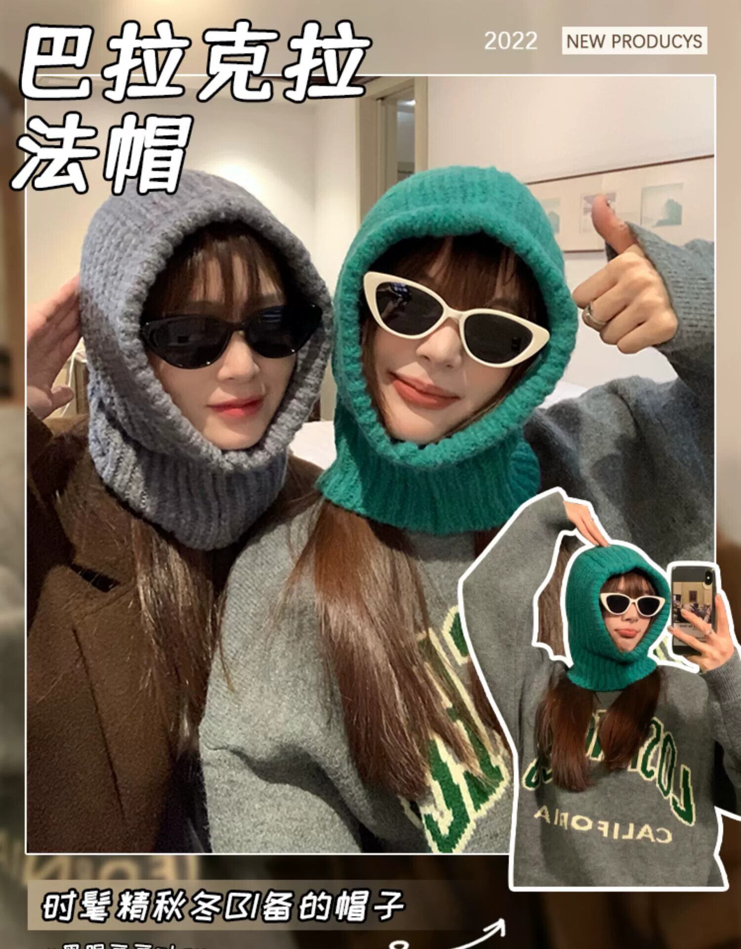 南の秋冬の新しい目出し帽帽子暖かいウールの帽子スカーフ一体型女性の冬の耳保護ニット帽 オータム 秋物 ウィンター 冬物 15dd6730540478