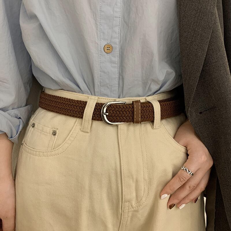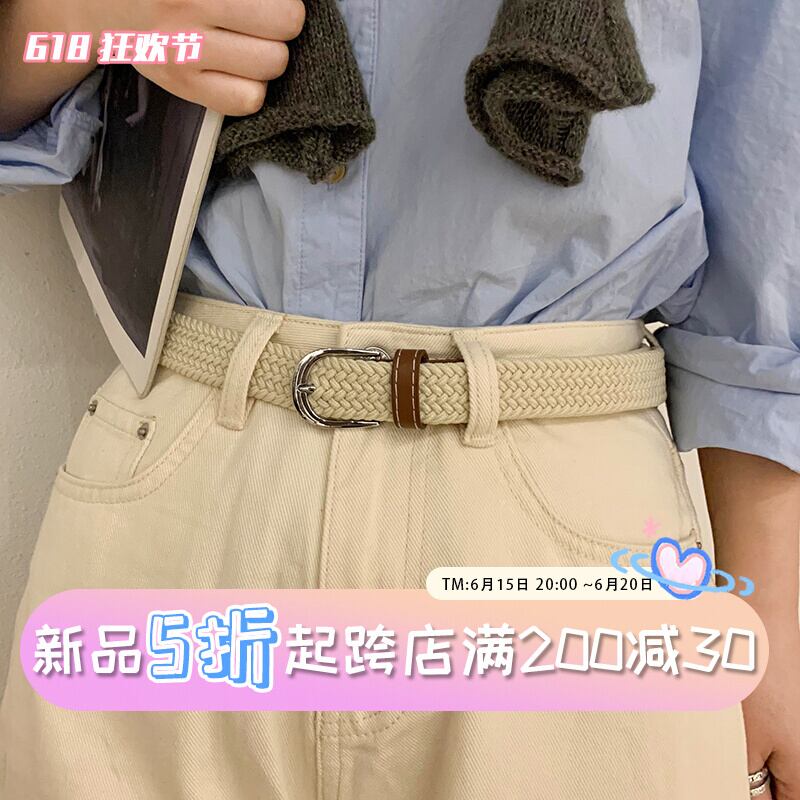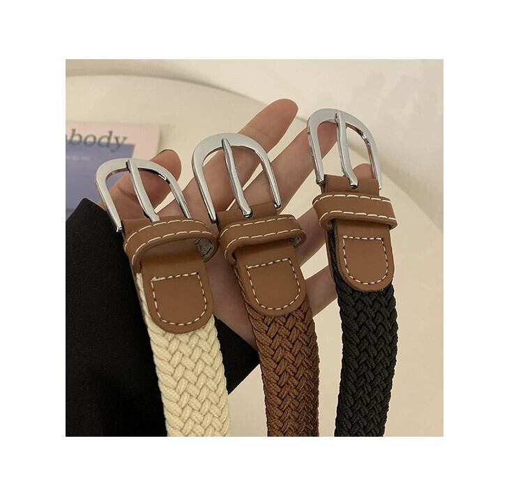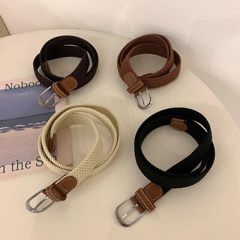 キャンバス弾性織りベルト女性の ins スタイルバージョンレトロオールマッチフリーパンチング学生装飾ジーンズベルト エラスティック 伸縮 ハーネス 15dd88077794313