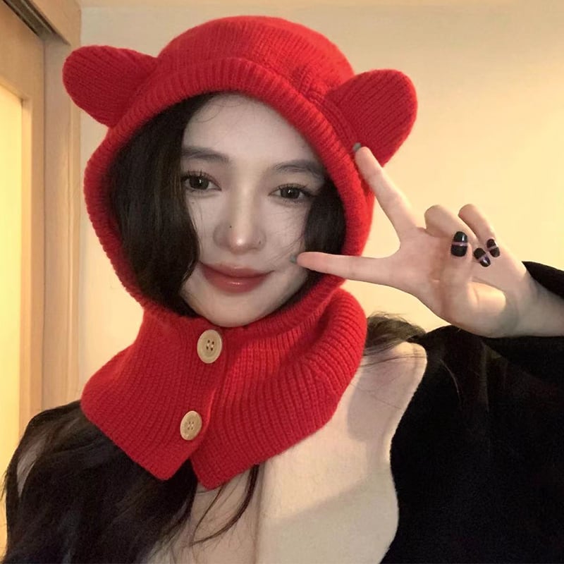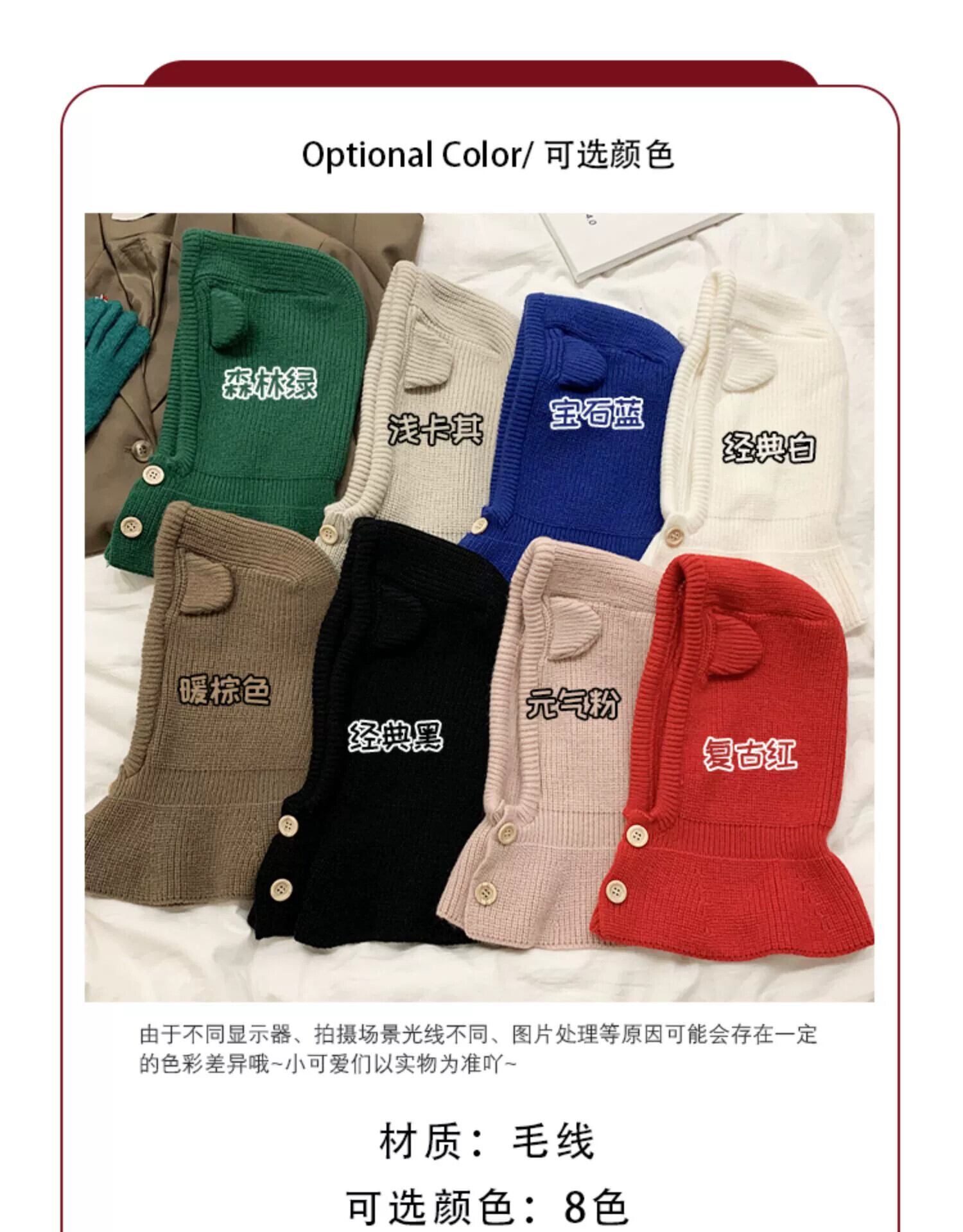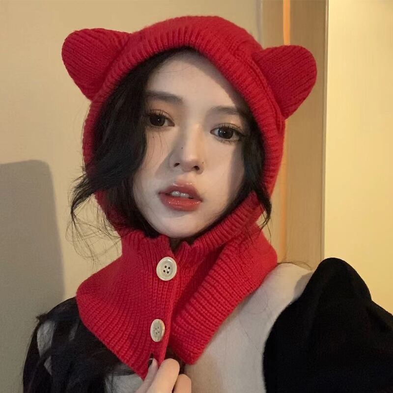 少人数の目出し帽帽子冬ネックスカーフ統合ニットウール帽子女性の暖かいクマプルオーバー帽子 ウィンター 冬物 15dd86281163268