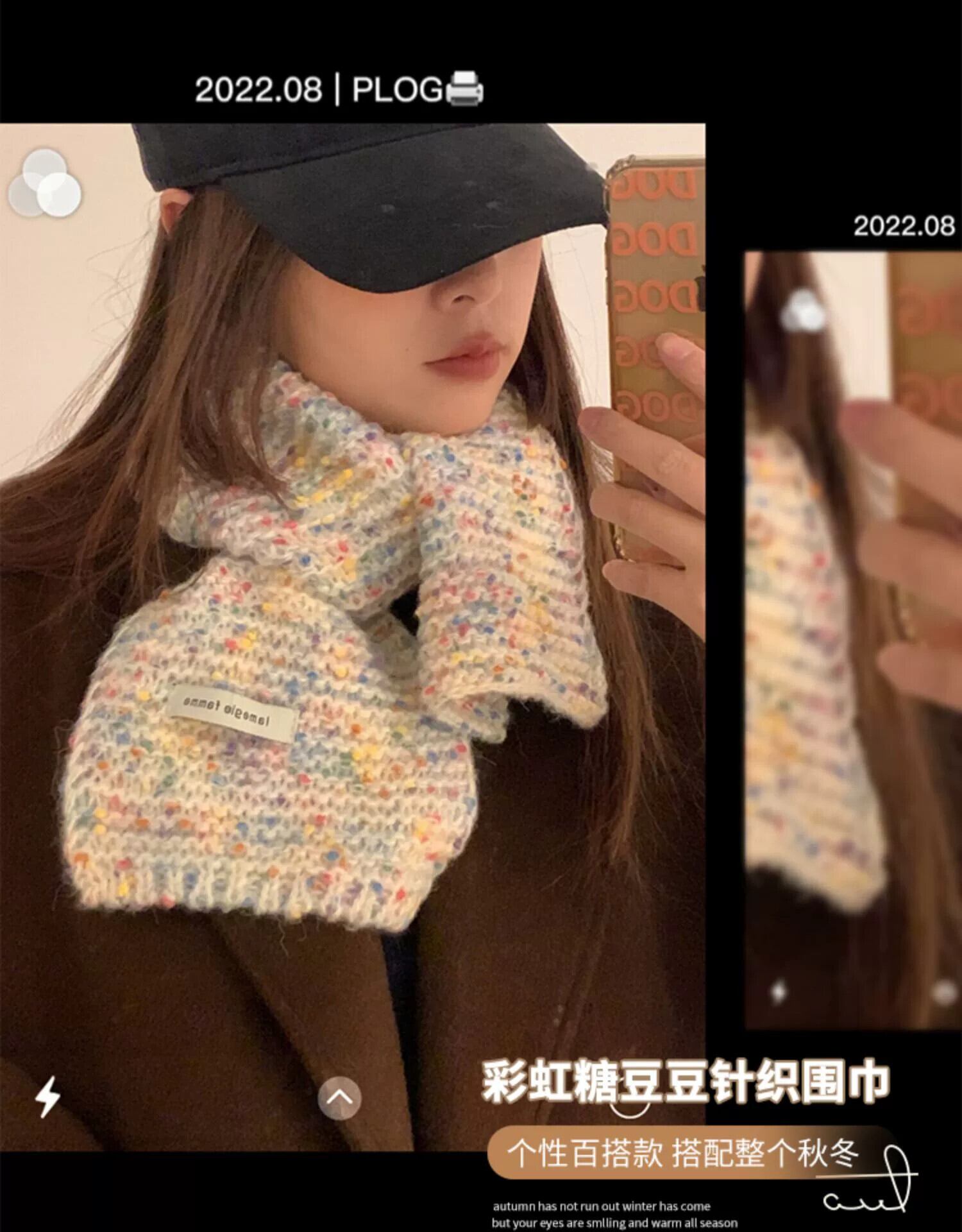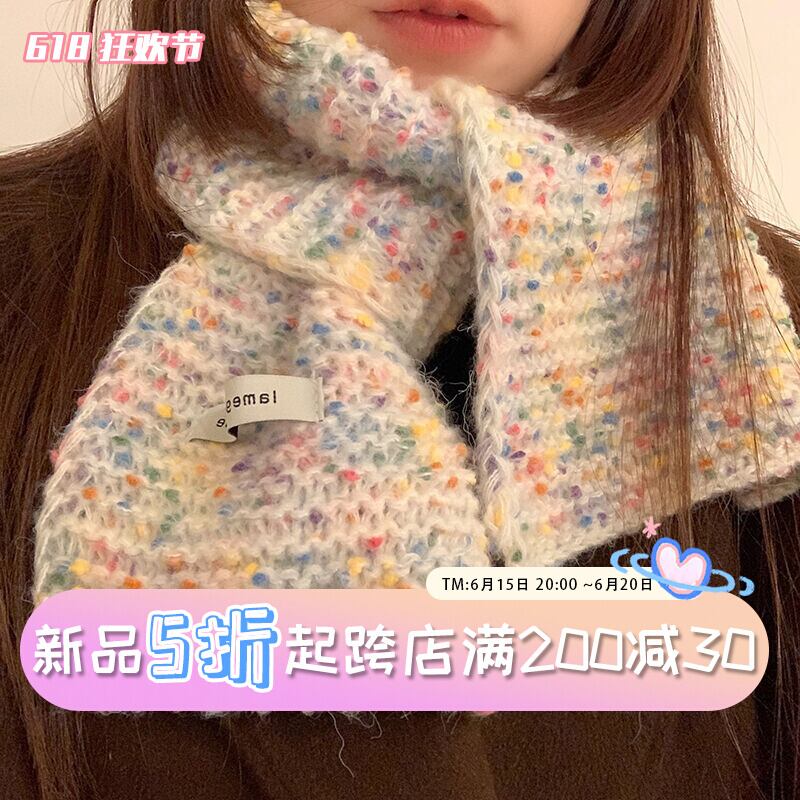レインボージェリービーンウールスカーフ女性冬バージョンの暖かいインショートセクションニッチ学生かわいいスカーフベージュ 大人ガーリー スウィート キュート カジュアル ウィンター 冬物 15dd29375702386