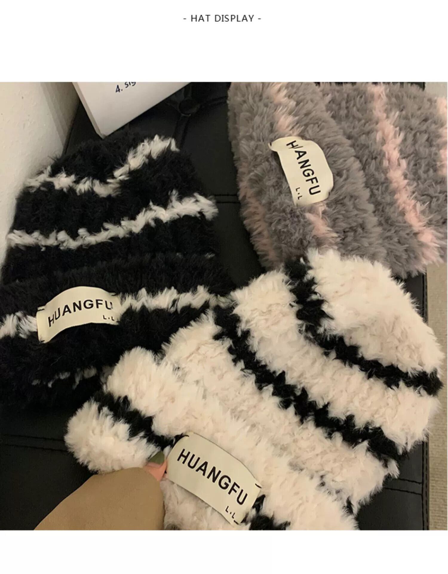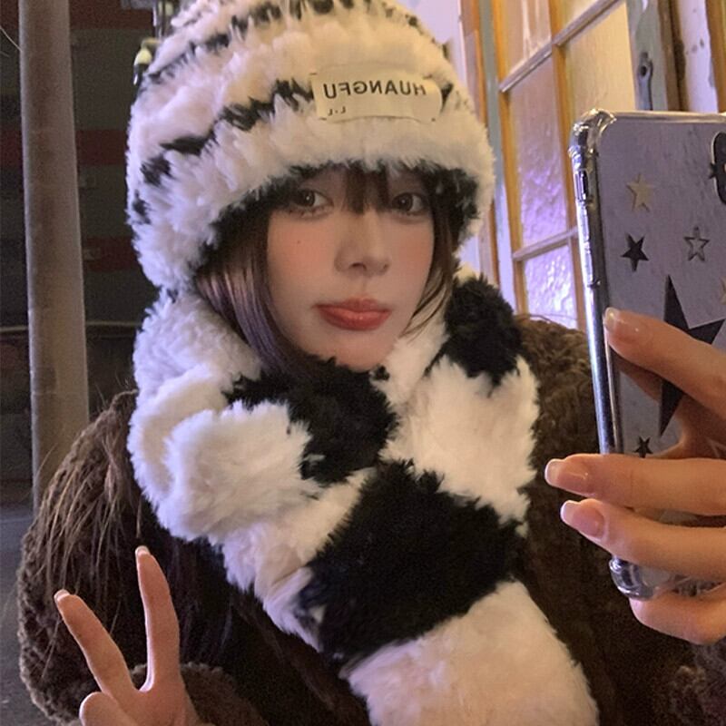 かわいい豪華な帽子の女性の冬の 2022 年新バージョンの多目的ハイエンドスカーフ黒と白のストライプ暖かい耳保護帽子 ホワイト ブラック 大人ガーリー スウィート キュート カジュアル ウィンター 冬物 15dd46787509052