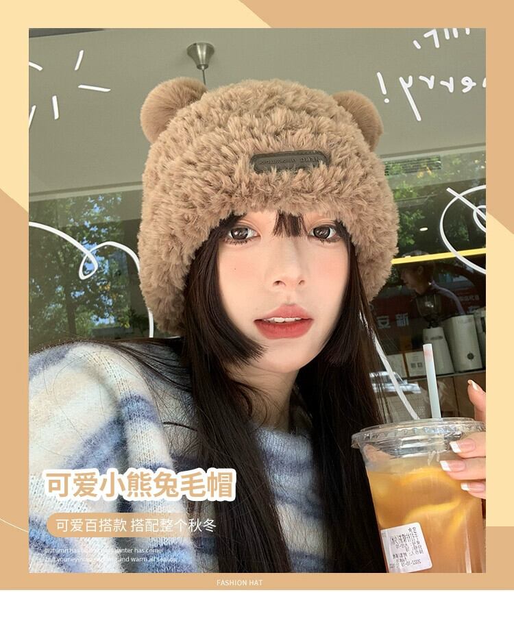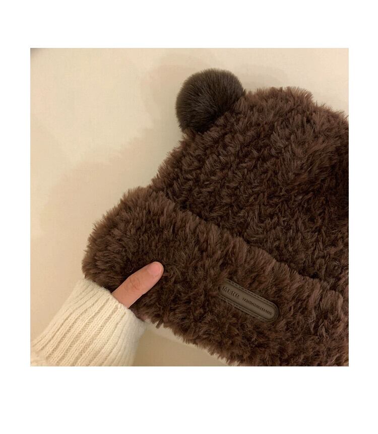 かわいいクマのウールの帽子の女性の冬 2022 スタイル豪華な暖かい毛皮の秋と冬の大きな頭囲ニット帽子 大人ガーリー スウィート キュート カジュアル オータム 秋物 ウィンター 冬物 15dd57400274376