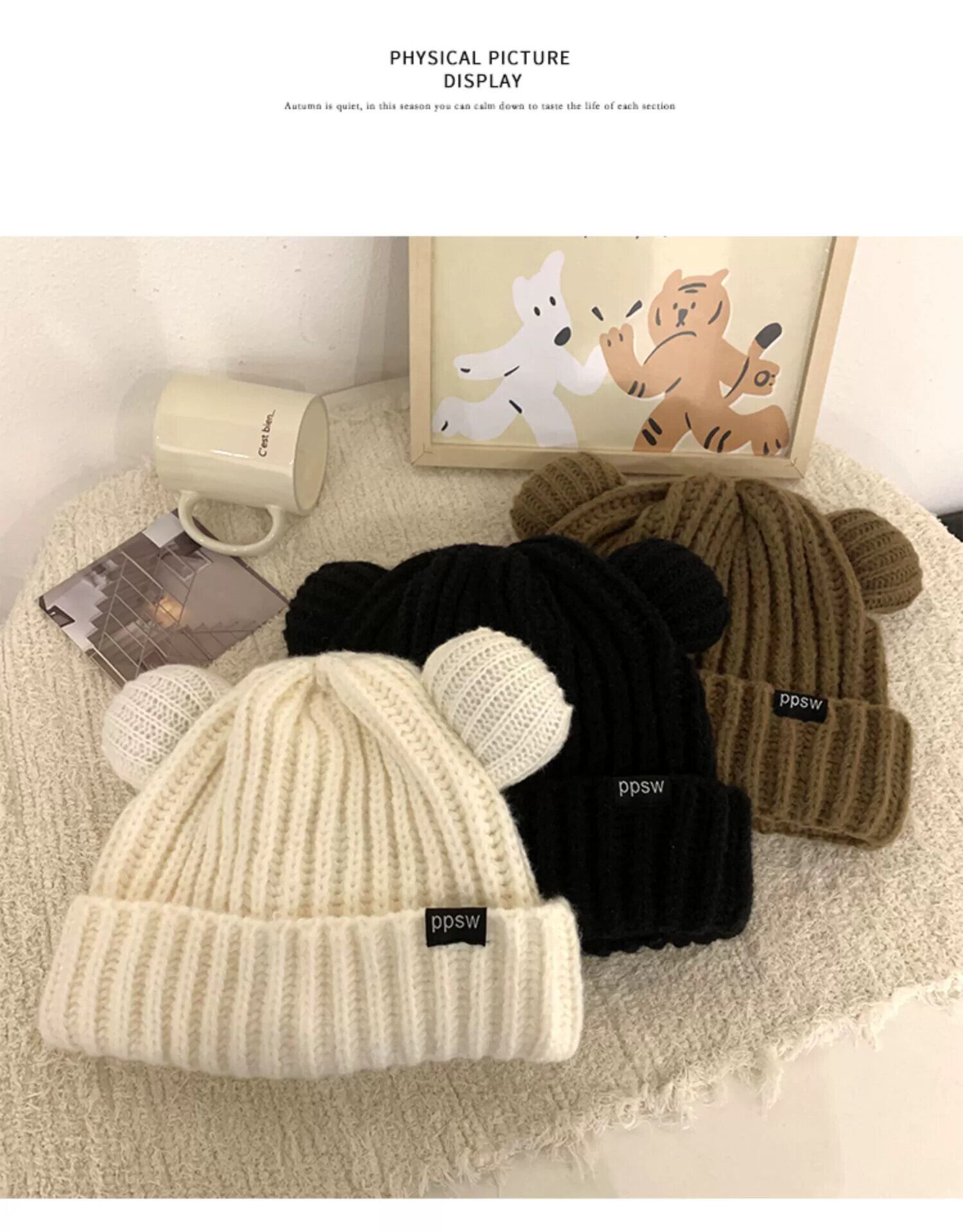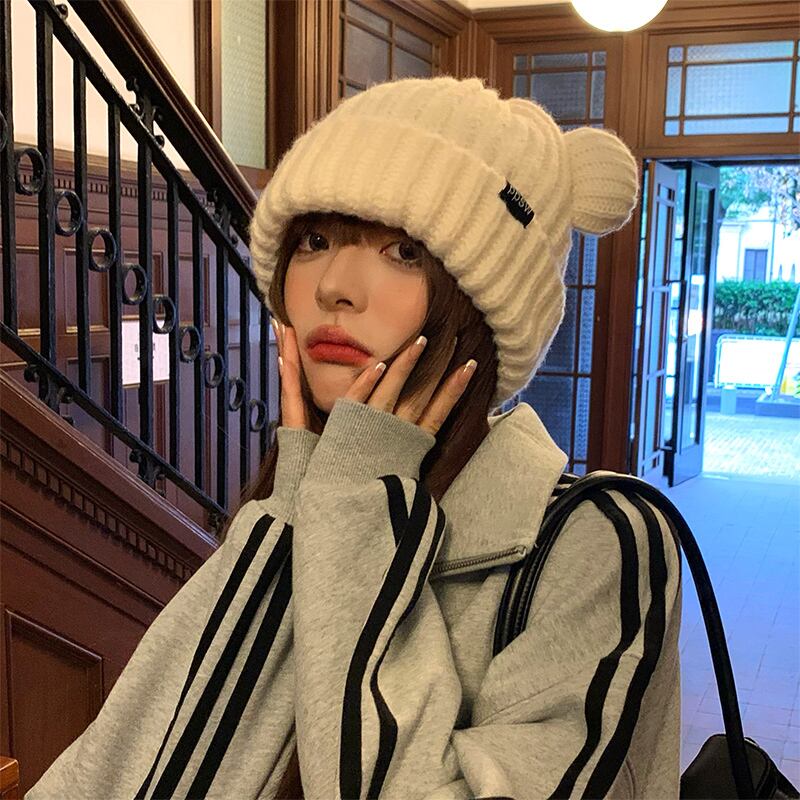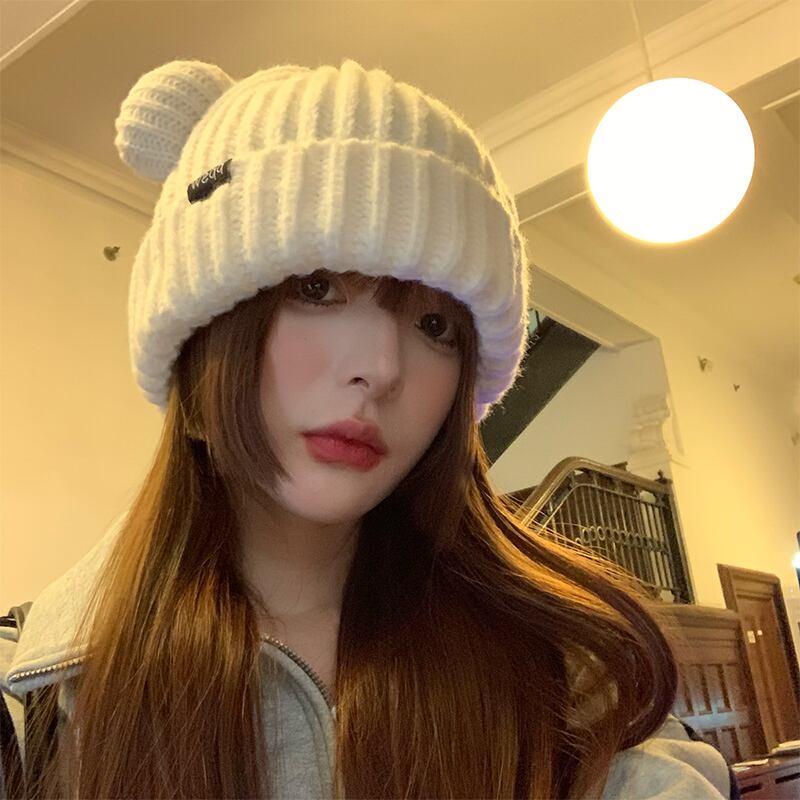 クマニット帽子女性秋と冬 2022 爆発的なスタイル暖かく厚いかわいいショーフェイス小さな耳マフウール帽子トレンディ 大人ガーリー スウィート キュート カジュアル オータム 秋物 ウィンター 冬物 15dd86928994639