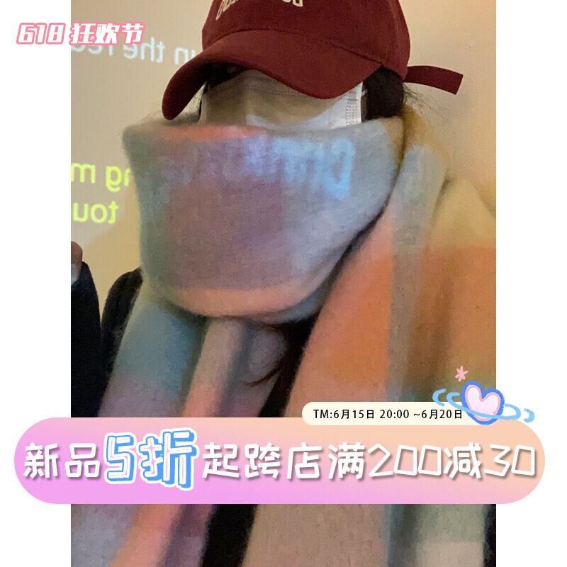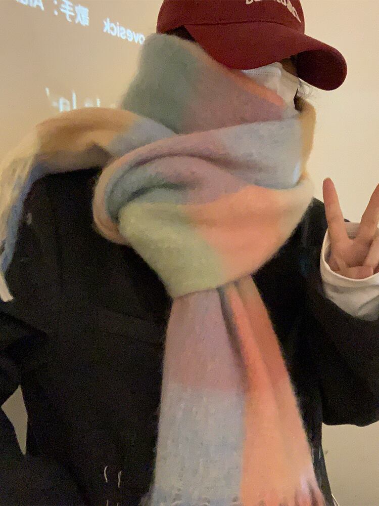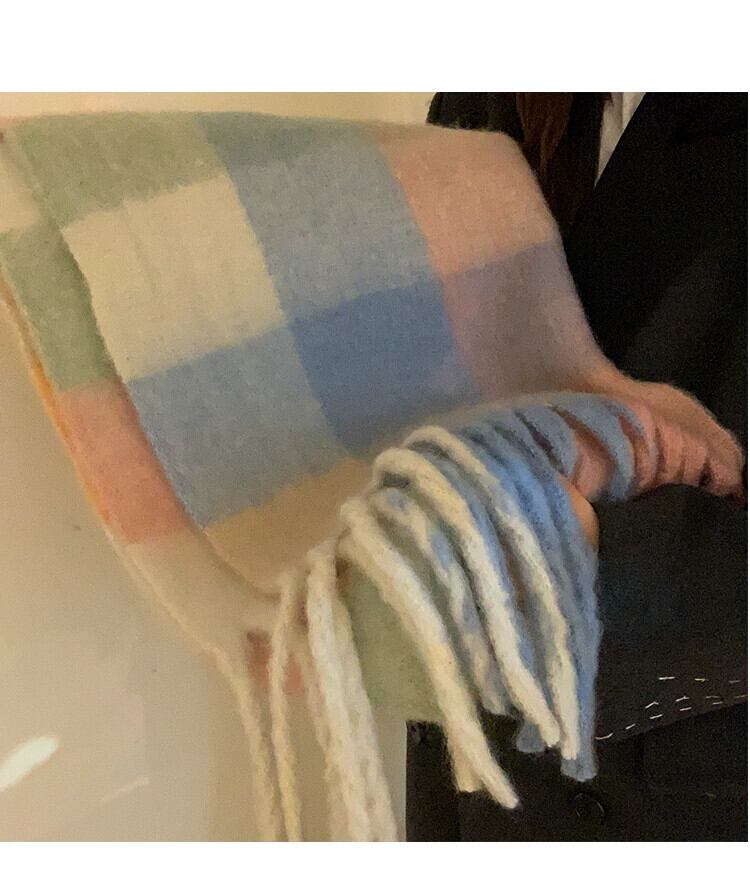 モヘアチェック柄大判スカーフ冬の女性のハイエンド厚い模造カシミヤスカーフチェック柄暖かいショール兼用 ウィンター 冬物 15dd58411347804