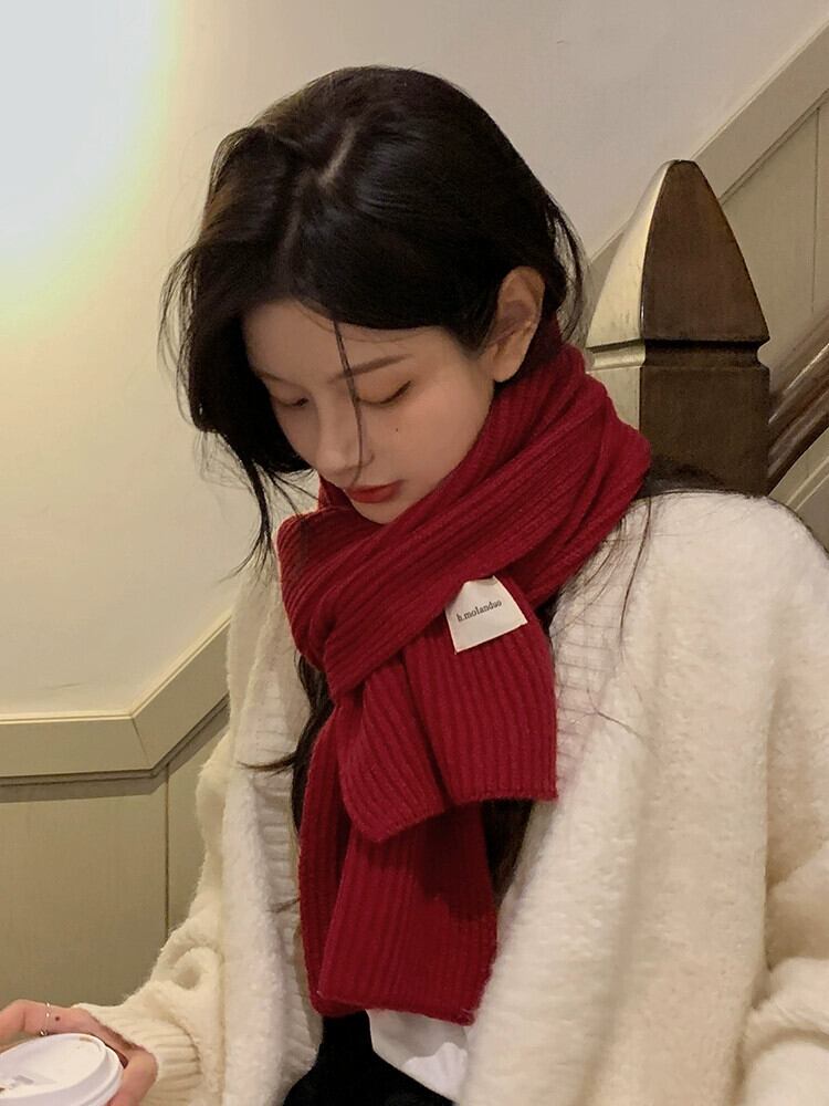 バージョンの ins オールマッチソフトウールスカーフ女性冬 2022 新入生厚く暖かいニット小さなスカーフ ウィンター 冬物 15dd30365086524