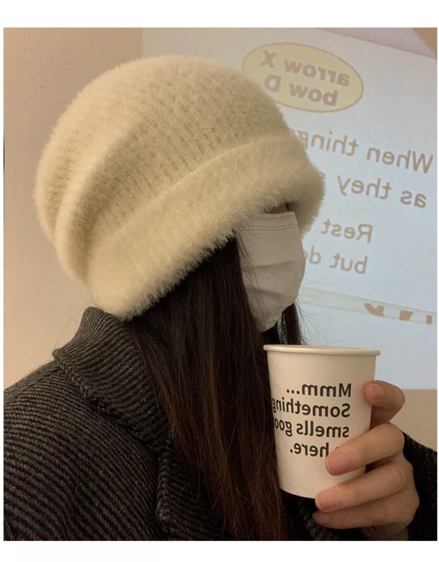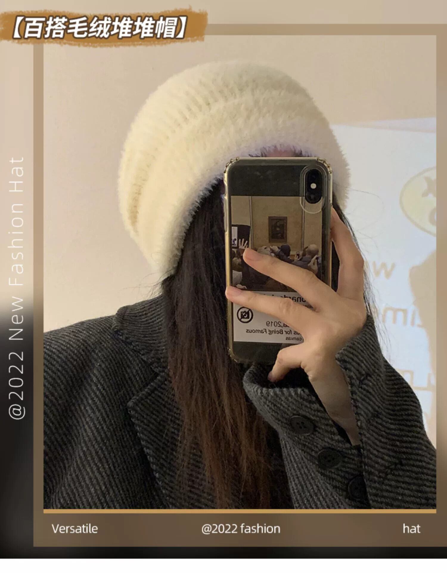 顔が見える小さな豪華なウールの帽子女性の秋と冬の白いニット帽オールマッチで、大きな頭の学生の防寒帽子を暖かく保ちます ホワイト オータム 秋物 ウィンター 冬物 15dd40781072546