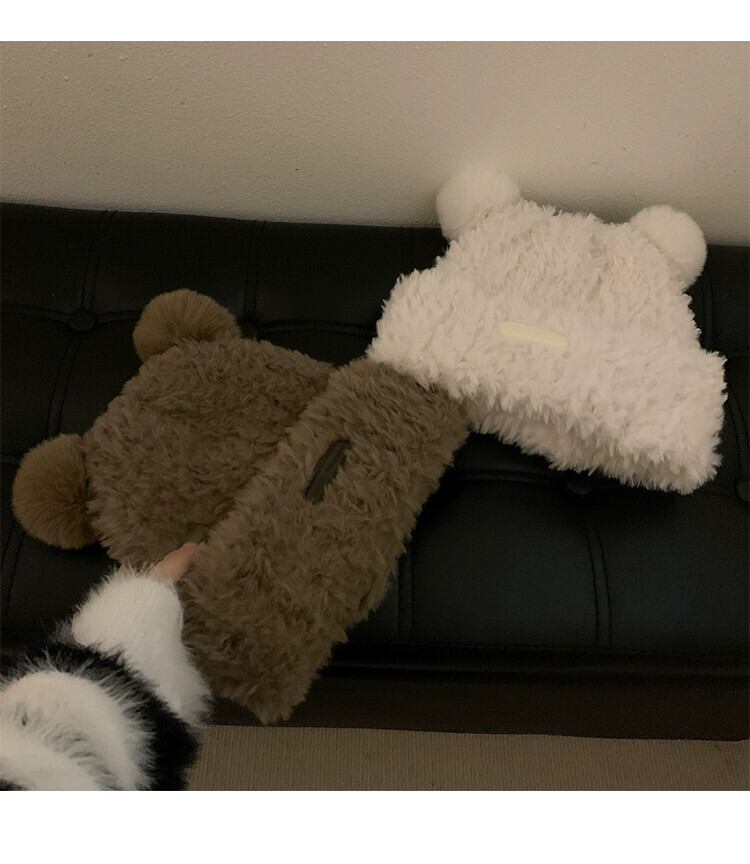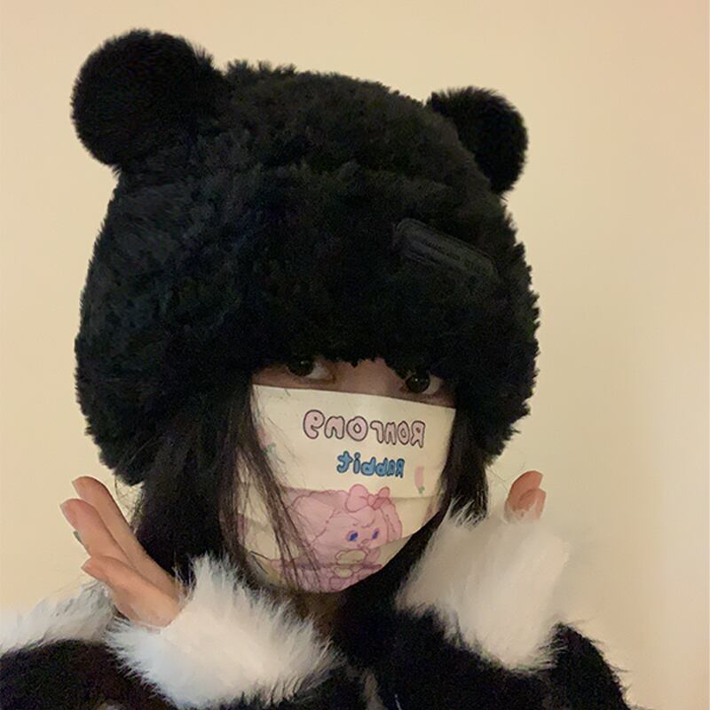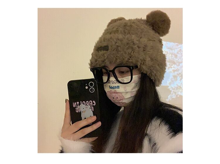 クマ耳帽子かわいい暖かい帽子女性バージョンぬいぐるみとベルベットオールマッチニットウール帽子防寒帽子大きな頭囲 大人ガーリー スウィート キュート カジュアル 15dd13922168145