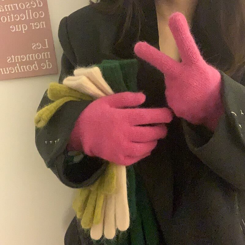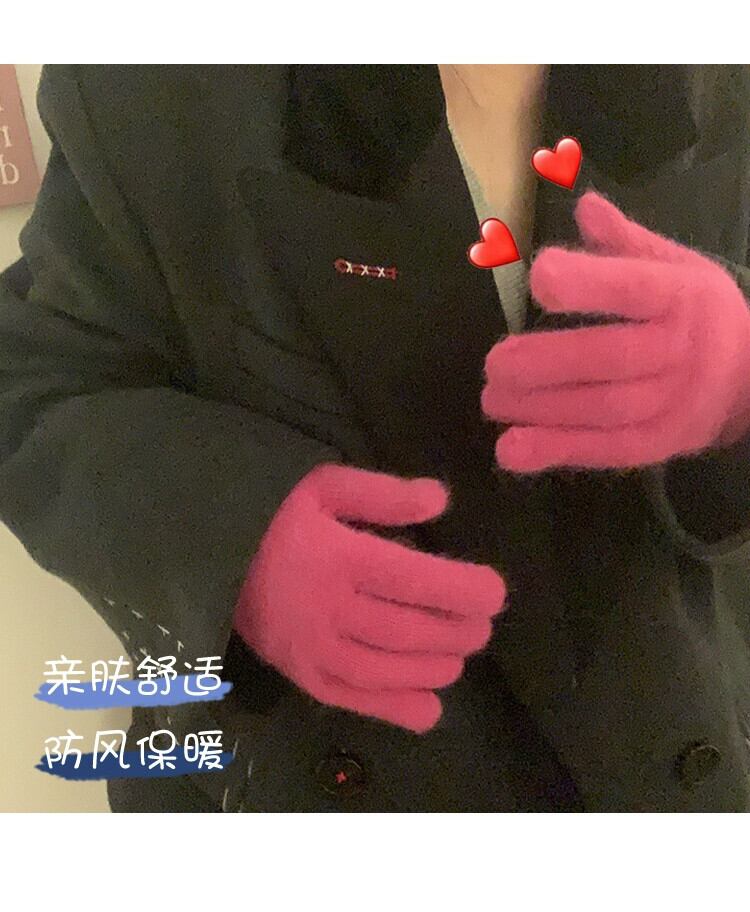 インスウサギの豪華なニット手袋のバージョン、女性の冬、かわいいソリッドカラーのロングセクション、厚みのある暖かくて耐寒性の乗馬 大人ガーリー スウィート キュート カジュアル ウィンター 冬物 15dd79141826632