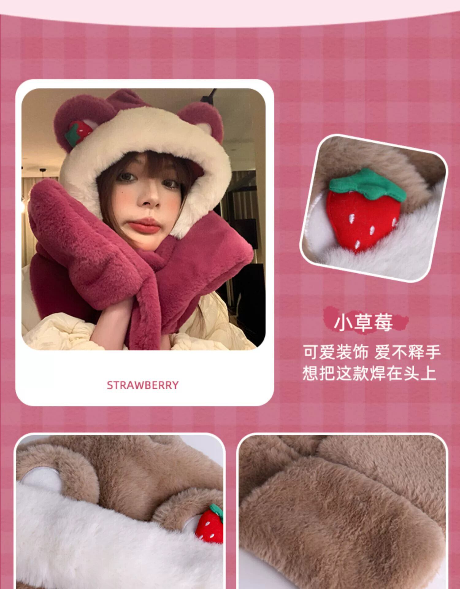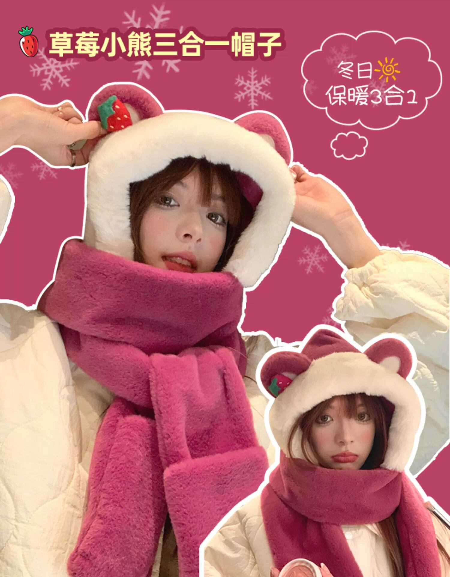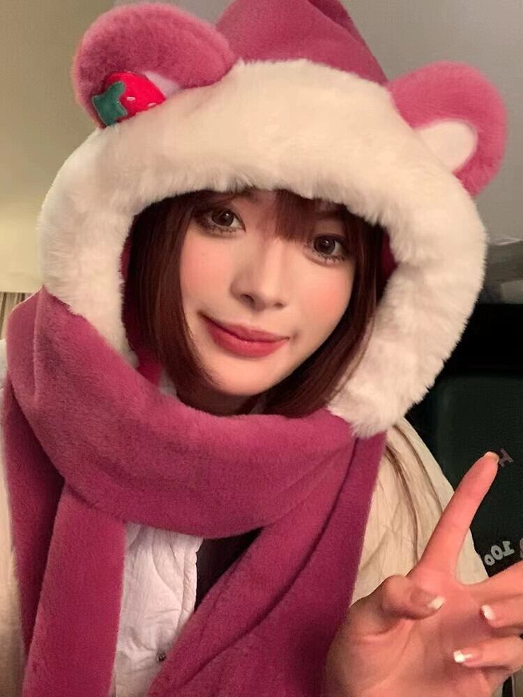 くまの帽子 スカーフ 手袋 1枚 秋冬 かわいい いちご あったか 3点セット スカーフ 厚手 冬 サイクリング 大人ガーリー スウィート キュート カジュアル オータム 秋物 ウィンター 冬物 15dd815522280