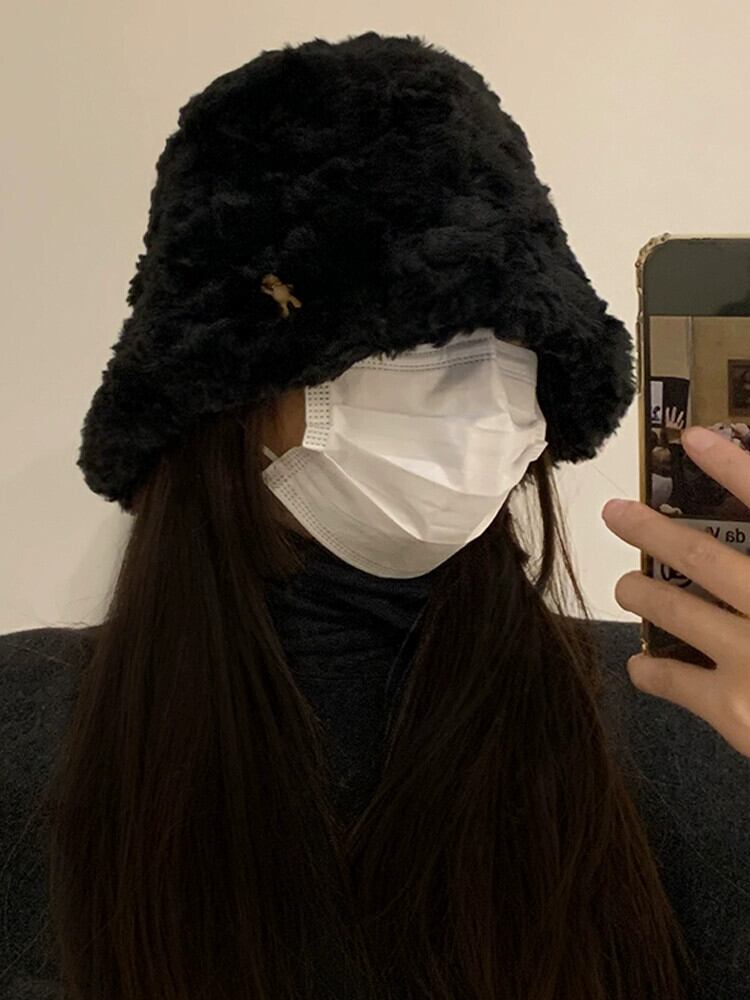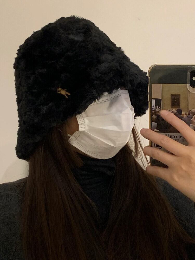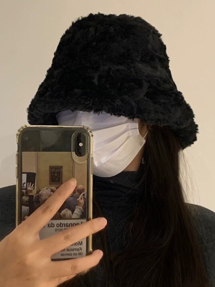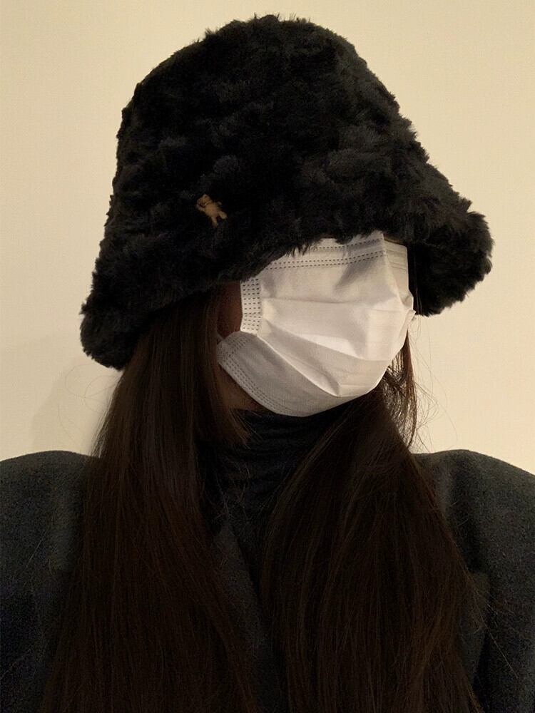 黒豪華な漁師の帽子の女性の秋と冬のオールマッチビッグヘッド盆地帽子冬肥厚暖かい顔小さなバケットハット ブラック オータム 秋物 ウィンター 冬物 15dd33802520839