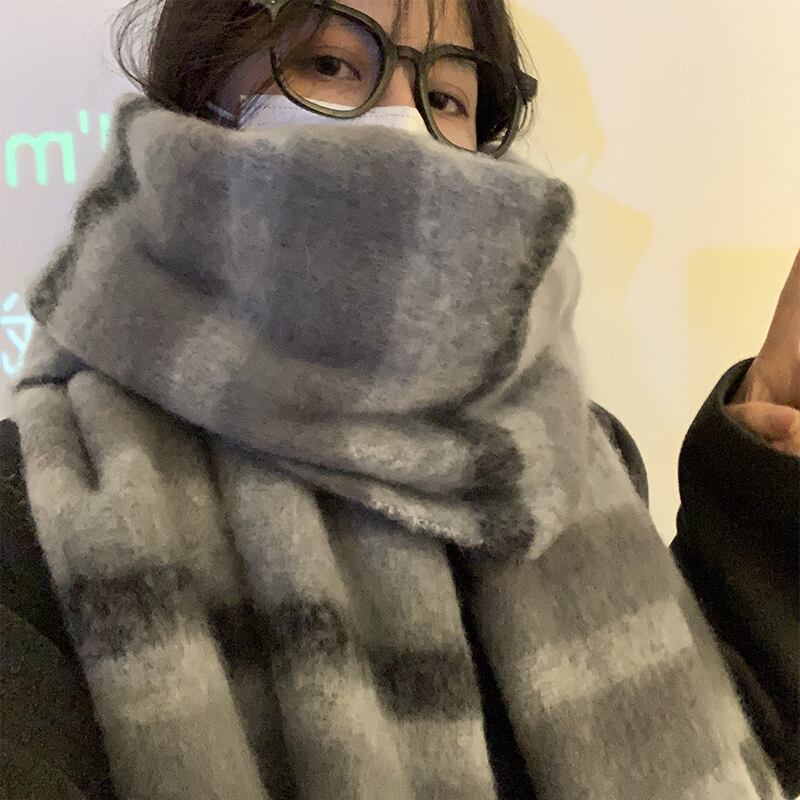 スタイルストライプスカーフ冬の女性 2022 高度なセンスレトロオールマッチショールデュアルユース学生カップル暖かいスカーフ ウィンター 冬物 15dd86742798395