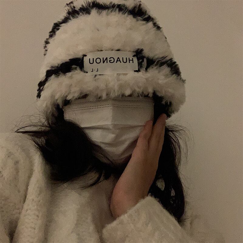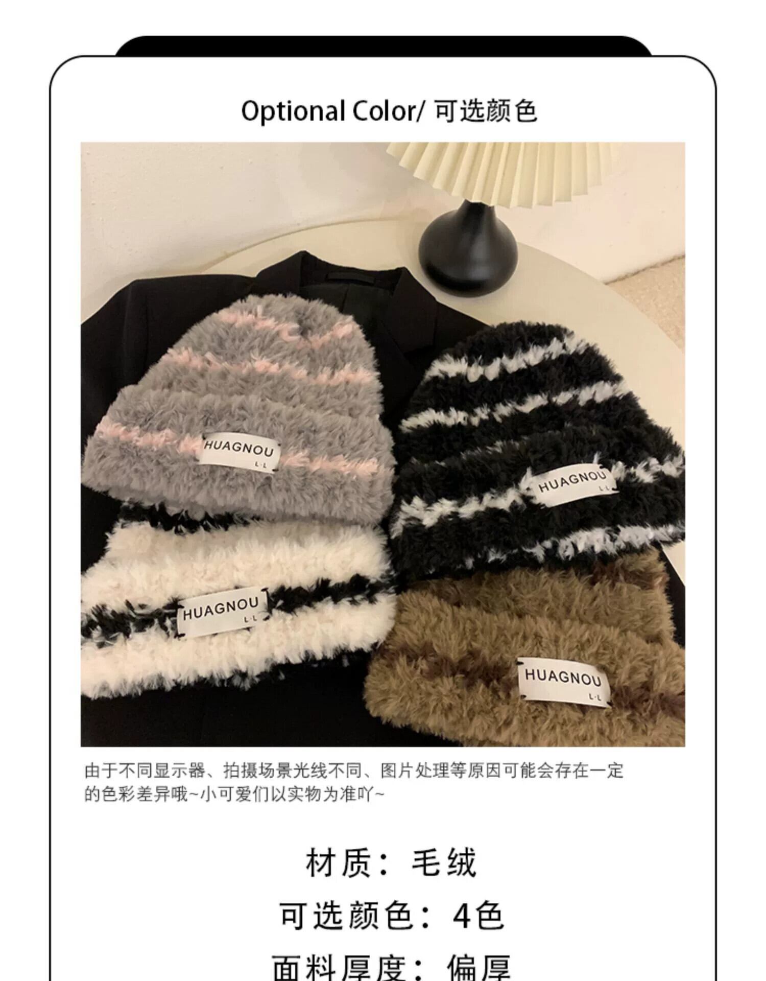 ぬいぐるみベルベットストライプウール帽子女性の秋と冬の新人小さな厚く暖かい大きな頭の周りの耳保護パイルパイル帽子 オータム 秋物 ウィンター 冬物 15dd4490975929