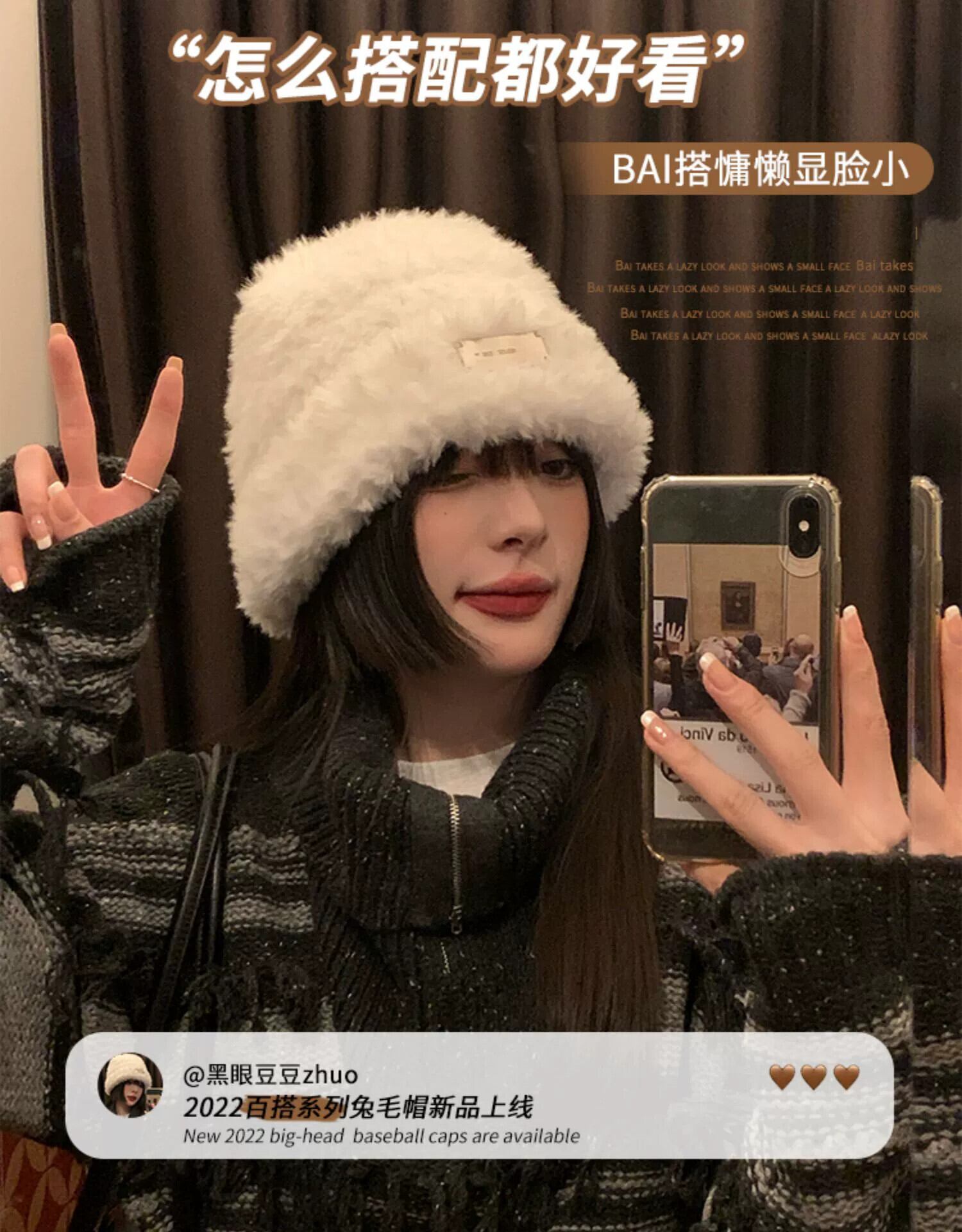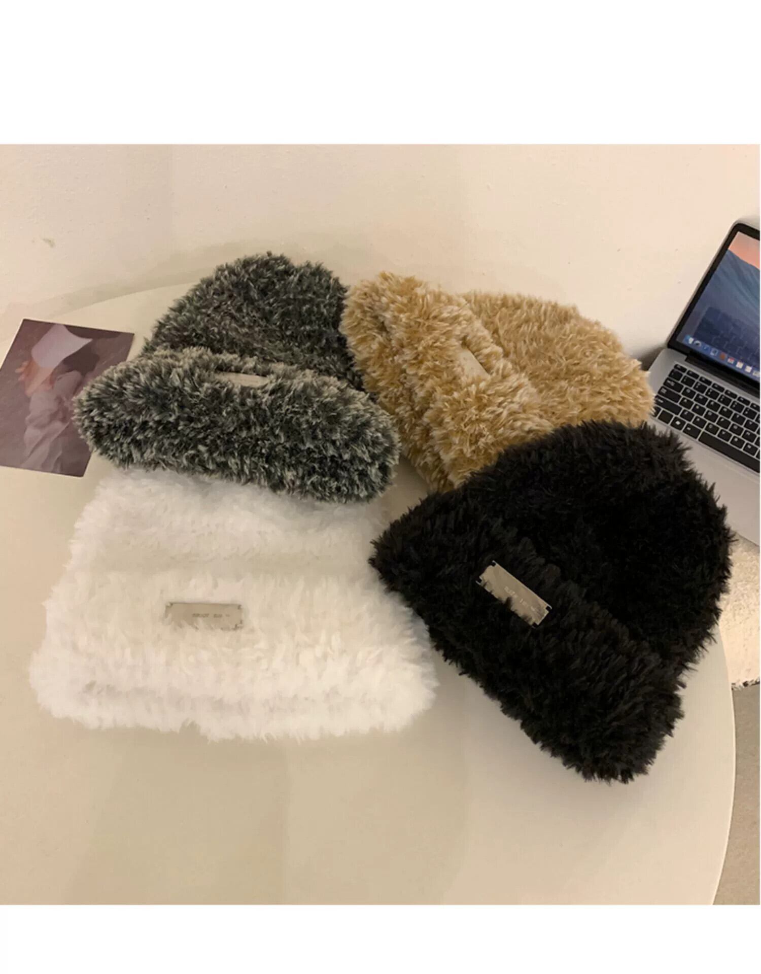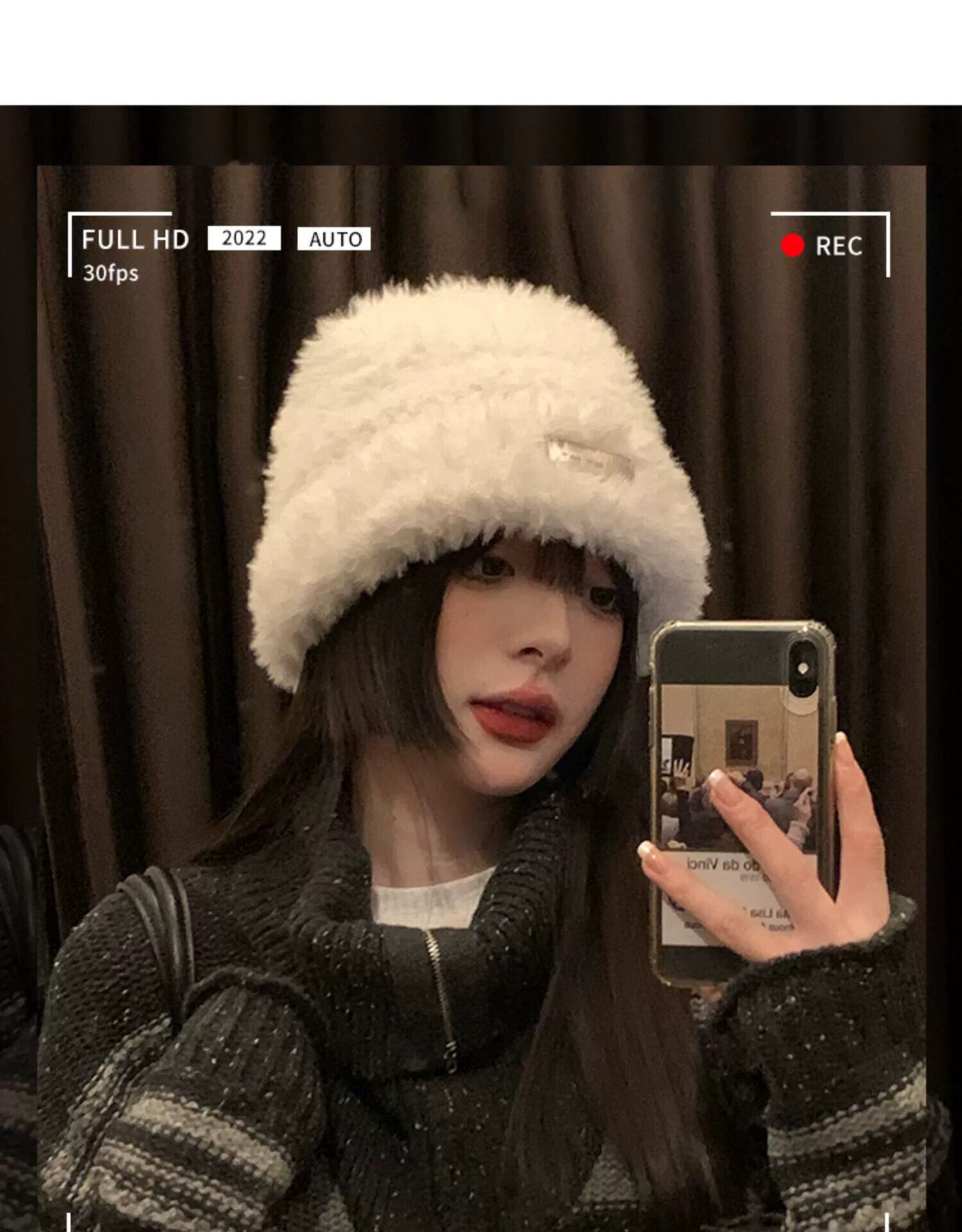 豪華な包頭帽子女性の秋と冬オールマッチ ese スタイルプルオーバー帽子毛皮で覆われた暖かい耳保護ニット帽子は小顔を示します オータム 秋物 ウィンター 冬物 15dd74687791781