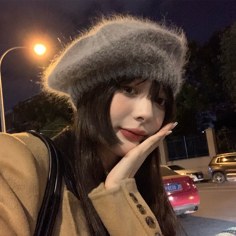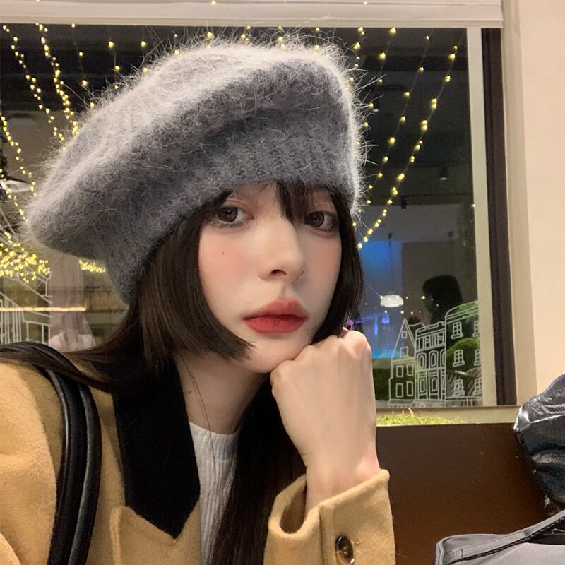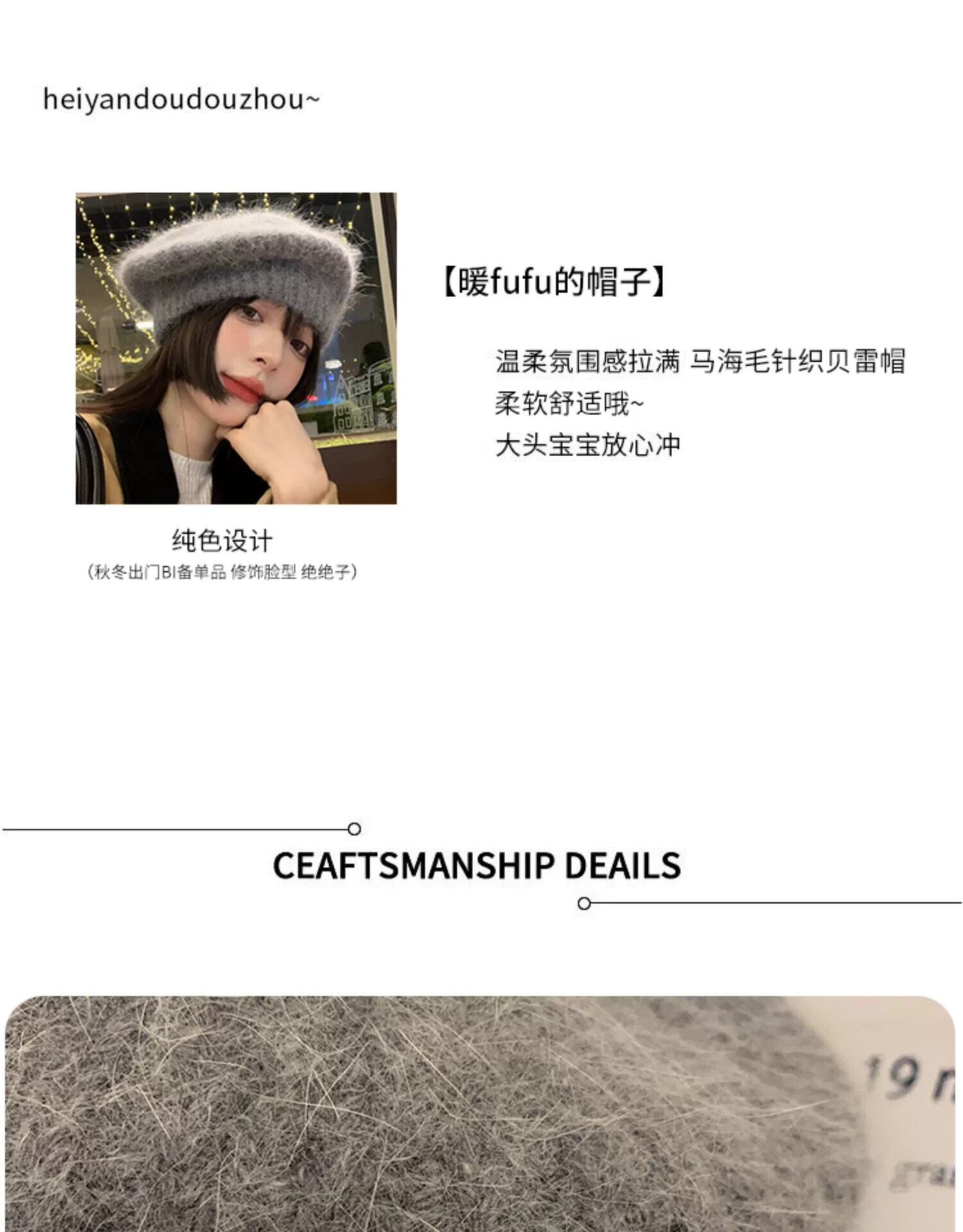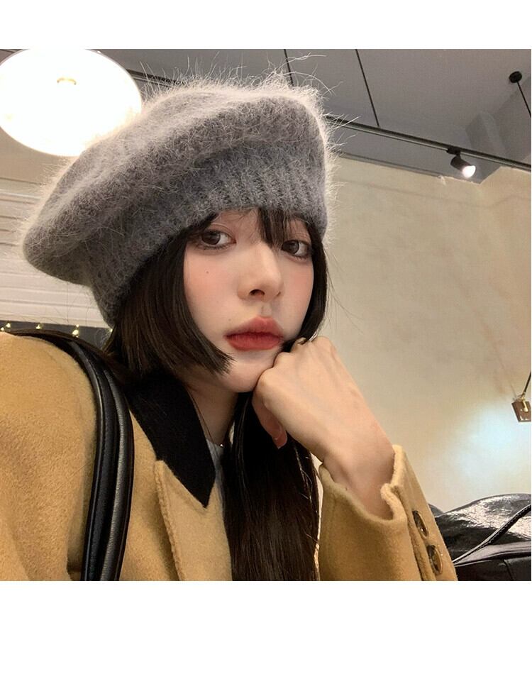 モヘアニットベレー帽女性の秋と冬の豪華なベルベットの画家の帽子オールマッチ顔の周りの大きな頭の小さな毛糸の帽子 オータム 秋物 ウィンター 冬物 ベレット ヘアアクセサリー 15dd62450810909
