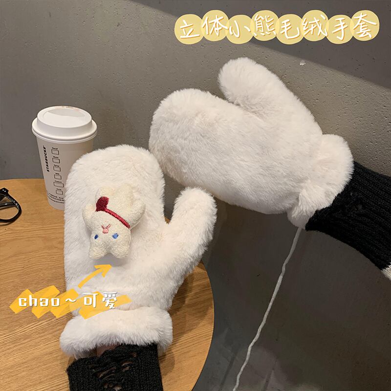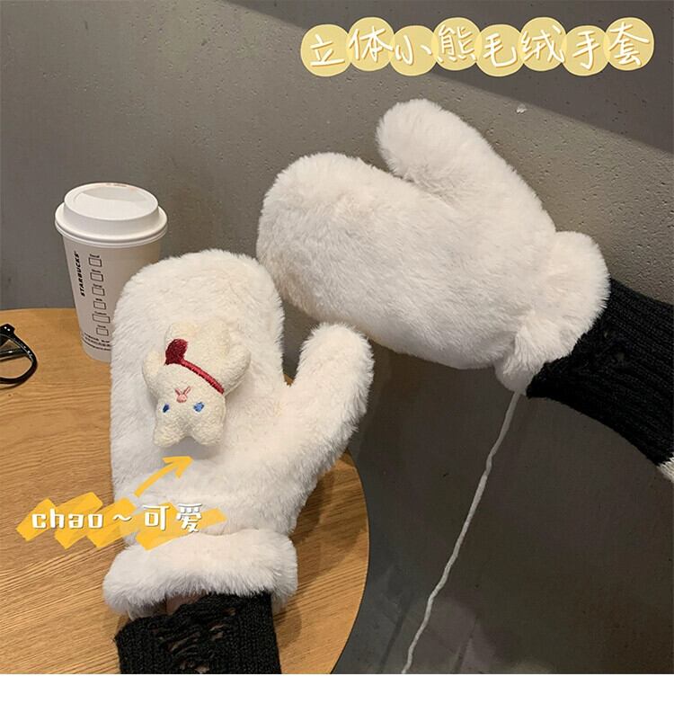 インプラスベルベットのバージョンの厚いサイクリング暖かい手袋冬かわいいクマのぬいぐるみ学生が寒さに乗っています 大人ガーリー スウィート キュート カジュアル ウィンター 冬物 15dd18562992670