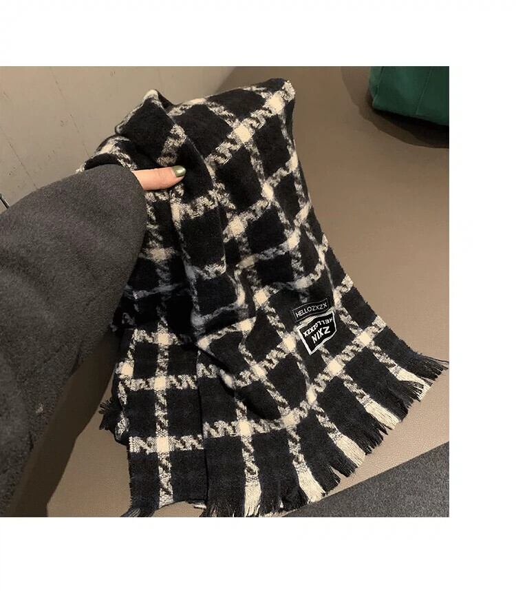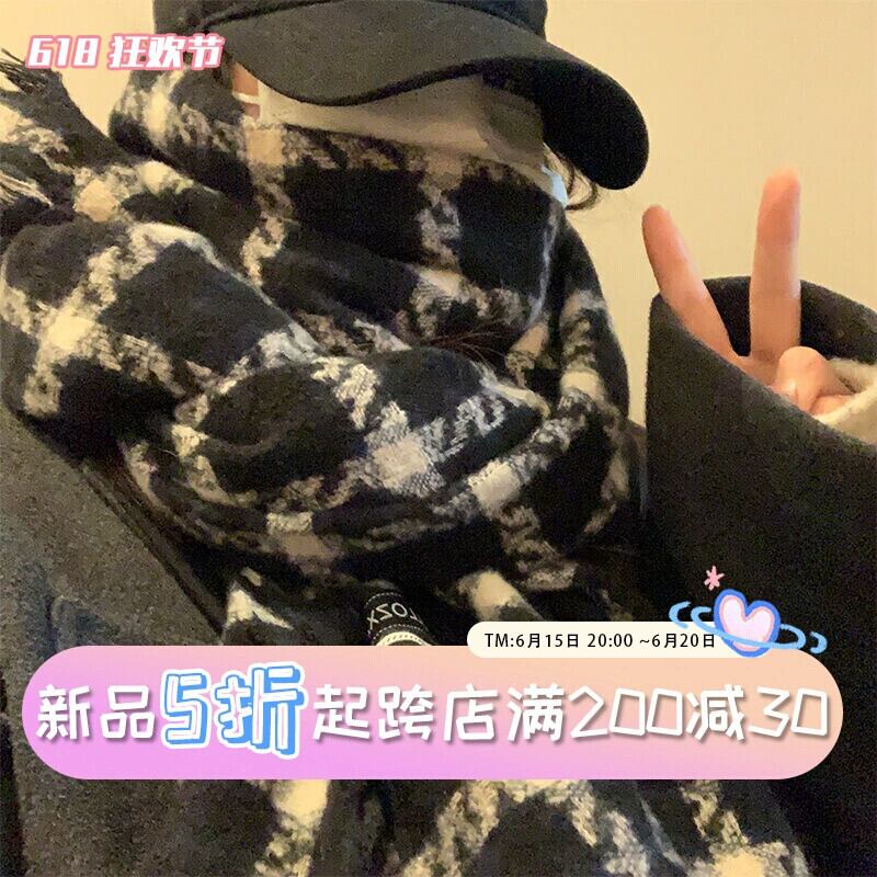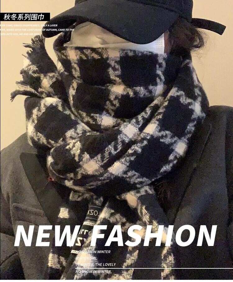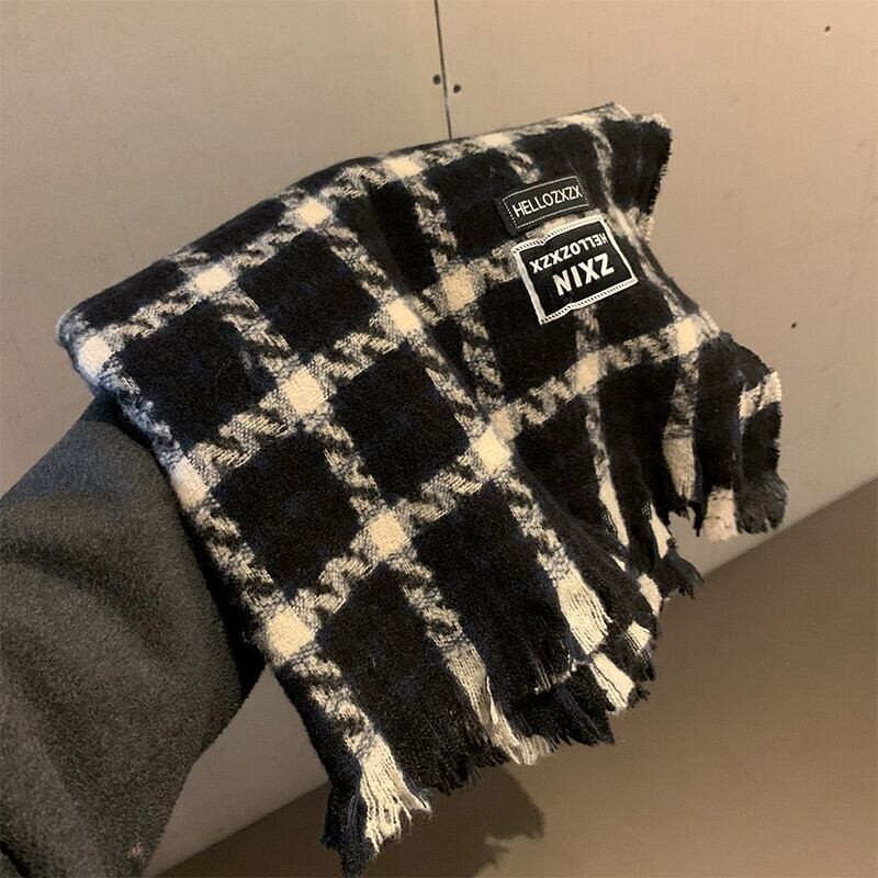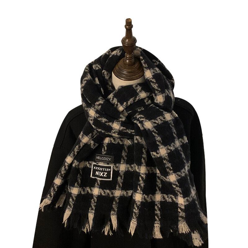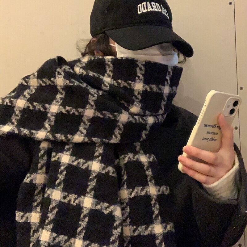 レトロチェック柄スカーフ冬インオールマッチ厚く暖かいロングショールデュアルユースオールマッチ学生スカーフ ウィンター 冬物 15dd66175256318