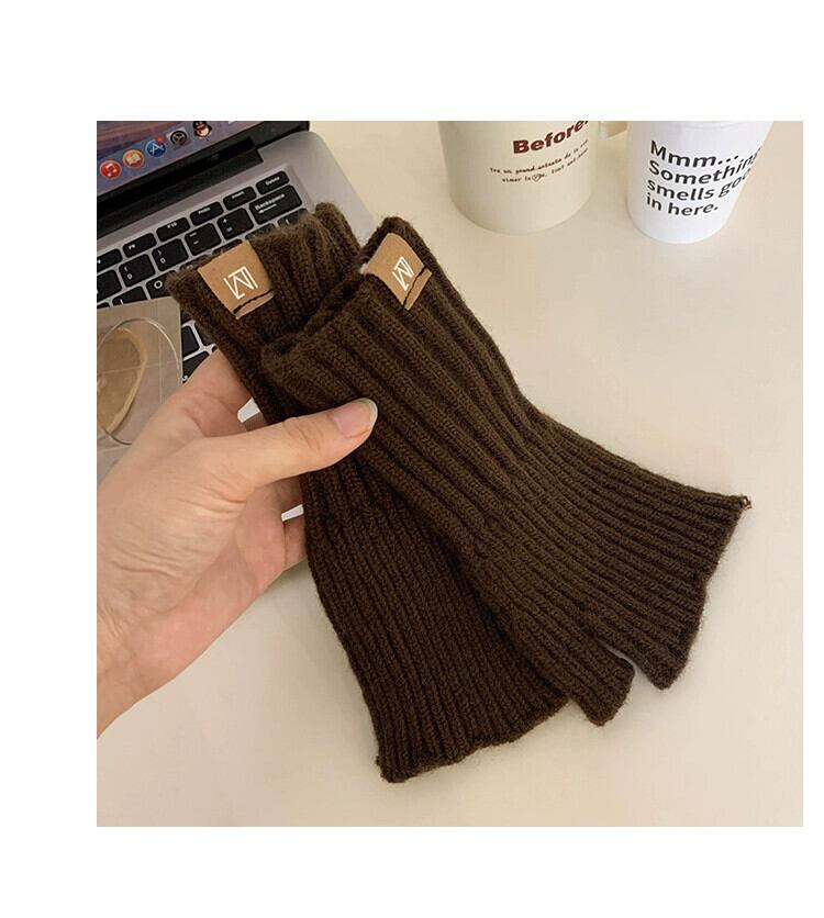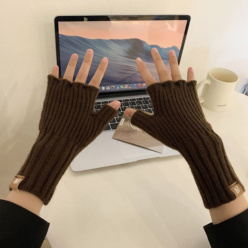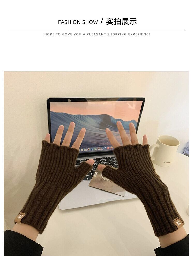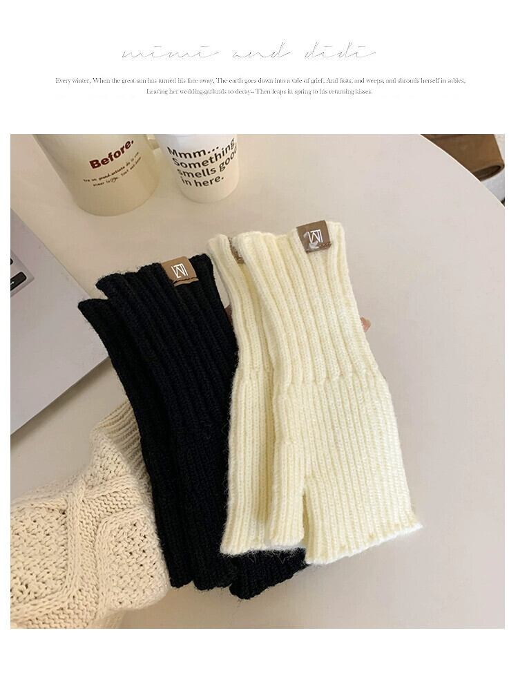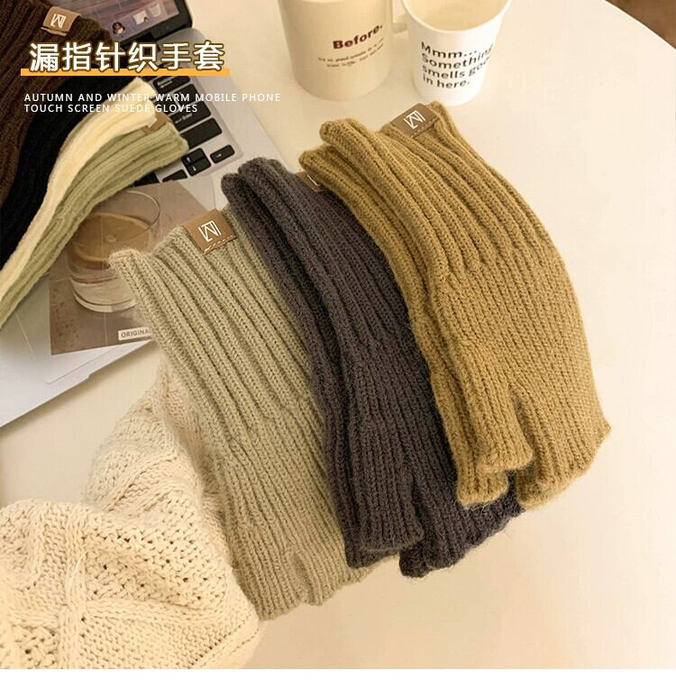 ハーフフィンガーウール手袋女性の冬厚く暖かい露指タッチスクリーンニットスリーブ学生書き込み暖かい手袋 ウィンター 冬物 15dd81406516274