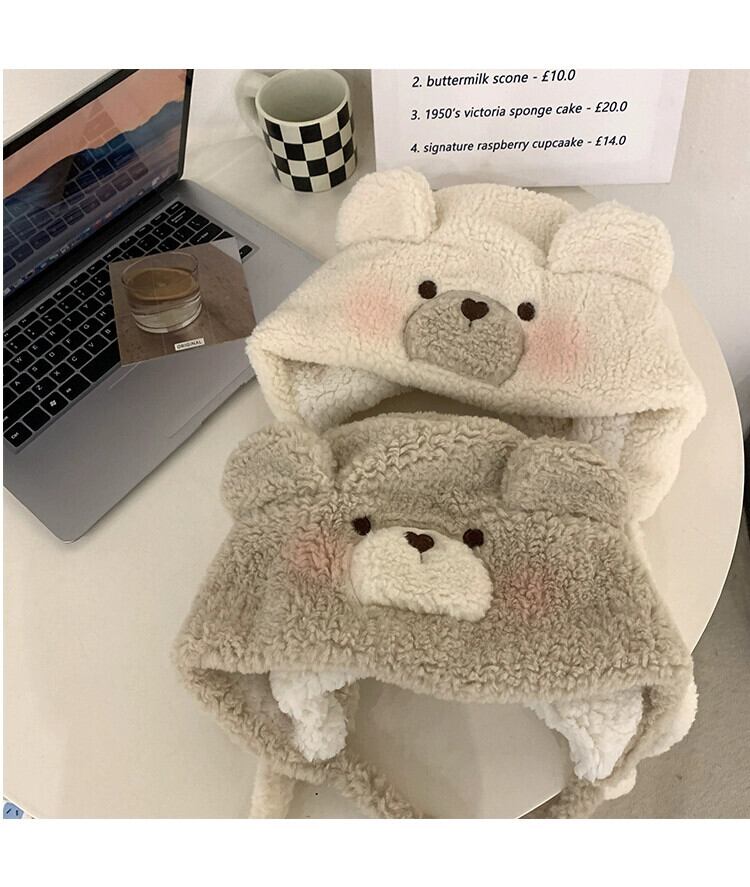 ぬいぐるみクマの帽子女性の冬の新しい毛皮のようなかわいいヘッドギア耳保護暖かい厚い包頭キャップ雷峰帽子 大人ガーリー スウィート キュート カジュアル ウィンター 冬物 15dd19091176083
